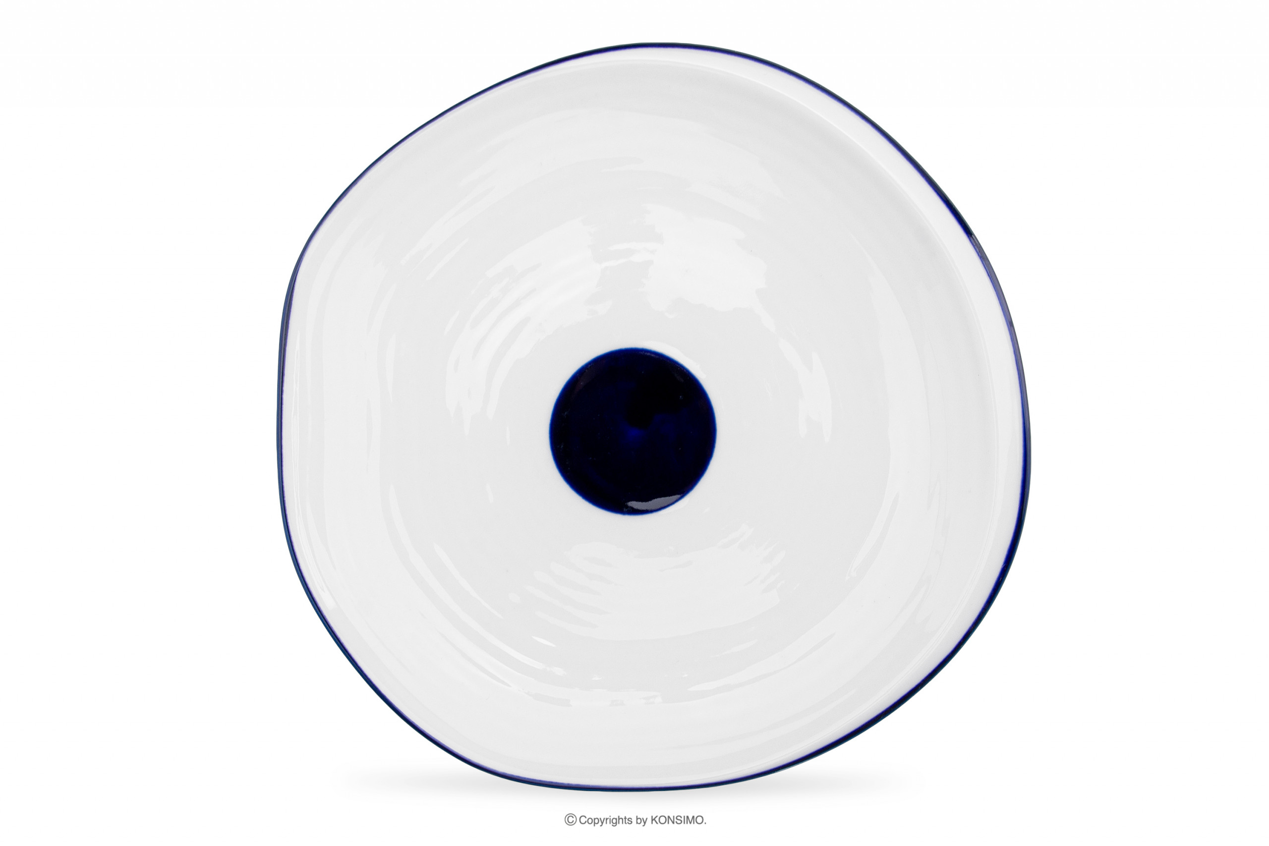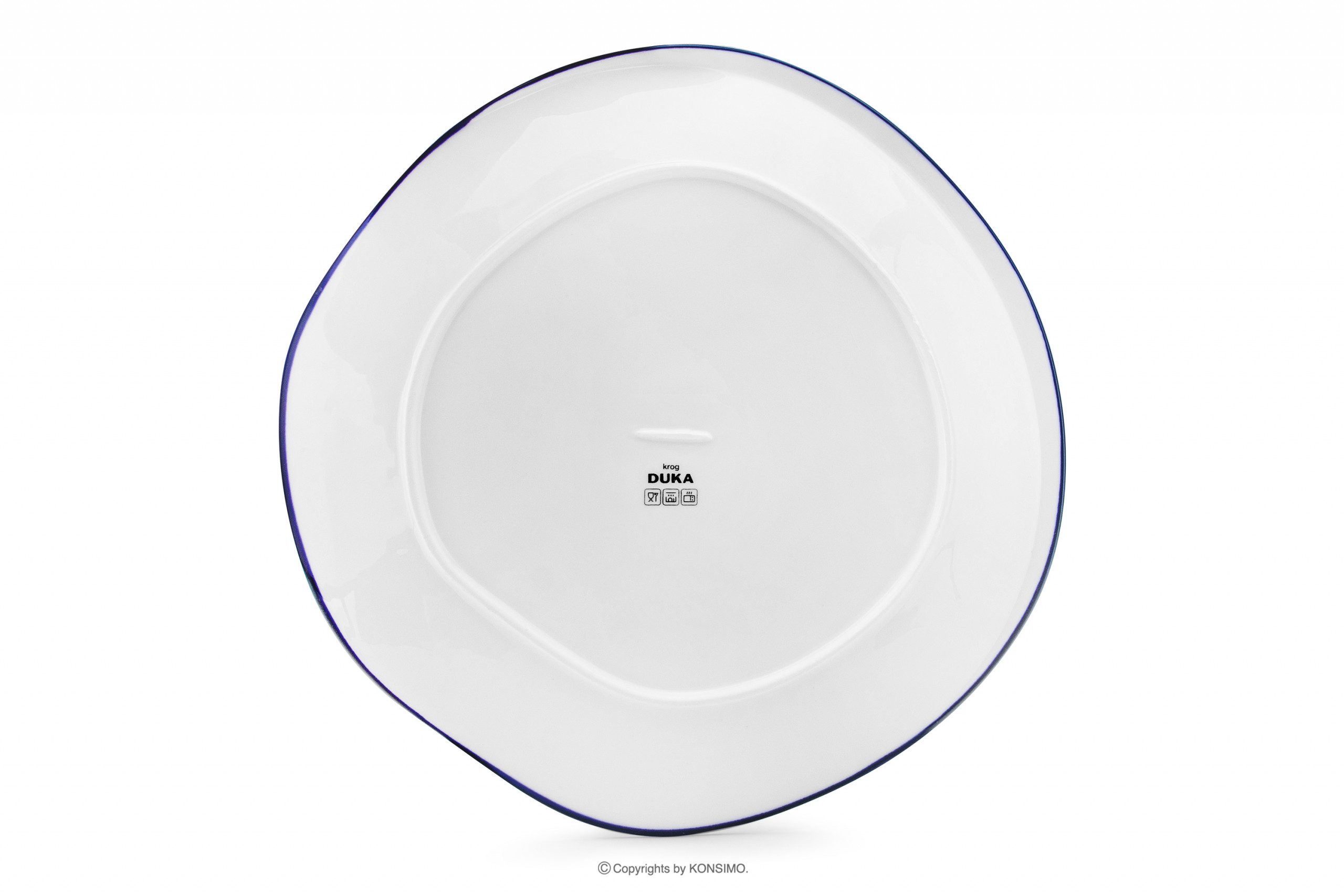 Vďaka odolnosti voči mechanickému poškodeniu a jednoduchému čisteniu je táto súprava tanierov ideálna pre rodiny s deťmi a na stretnutia s priateľmi. Možno ich ľahko umývať v umývačke riadu a používať v mikrovlnnej rúre. Kontrastná námornícka modrá bodka na bielom pozadí dodáva celému riadu charakter a úroveň. Bez ohľadu na príležitosť bude KROG vyzerať krásne a poskytne jedinečnú atmosféru pri každom jedle. Taniere sa vyznačujú nepravidelným tvarom, ktorý bol dosiahnutý ručnou výrobou. Asymetrické okraje vytvárajú jedinečný dizajn. Táto súprava bude určite doplnkom, ktorý dodá šarm a štýl každej večeri alebo recepcii.