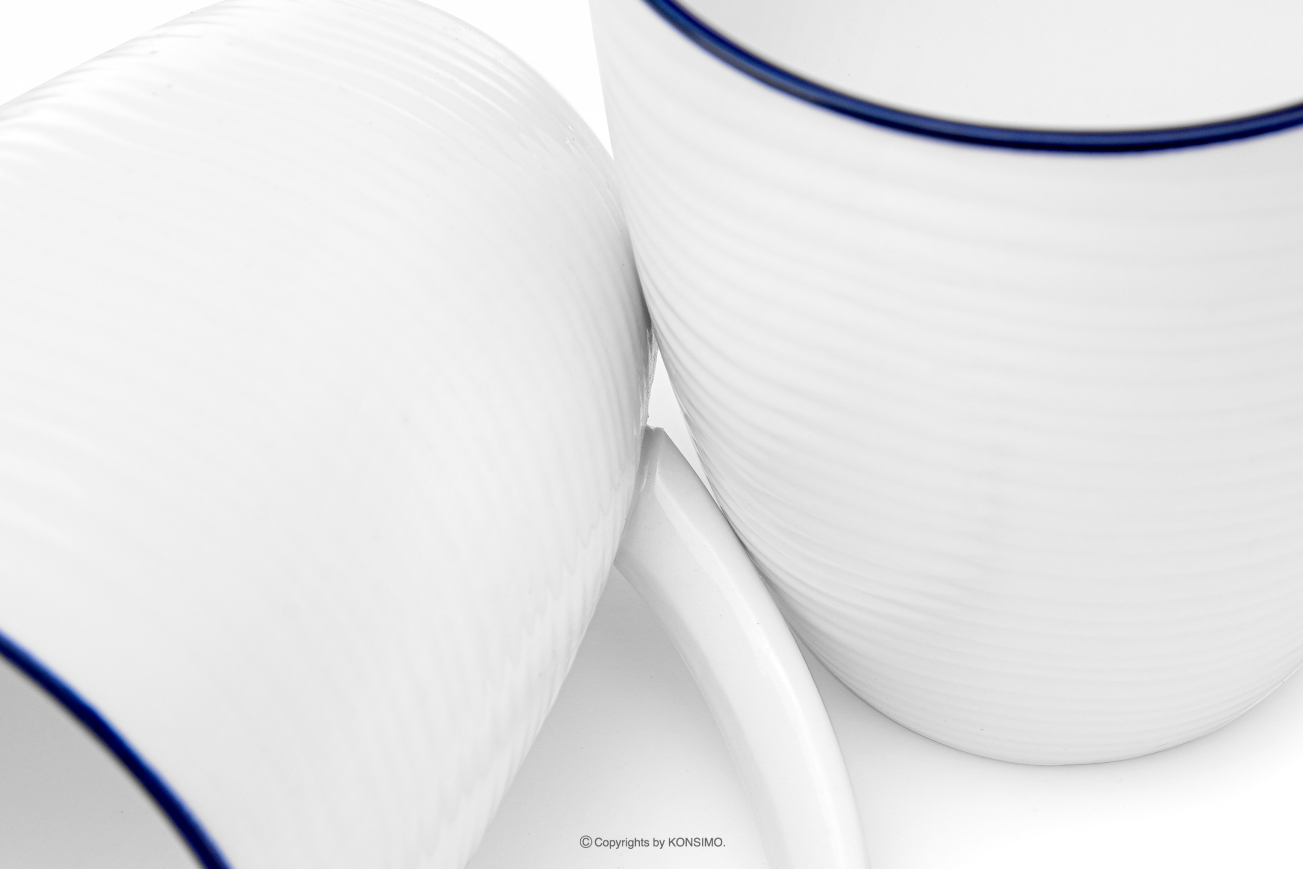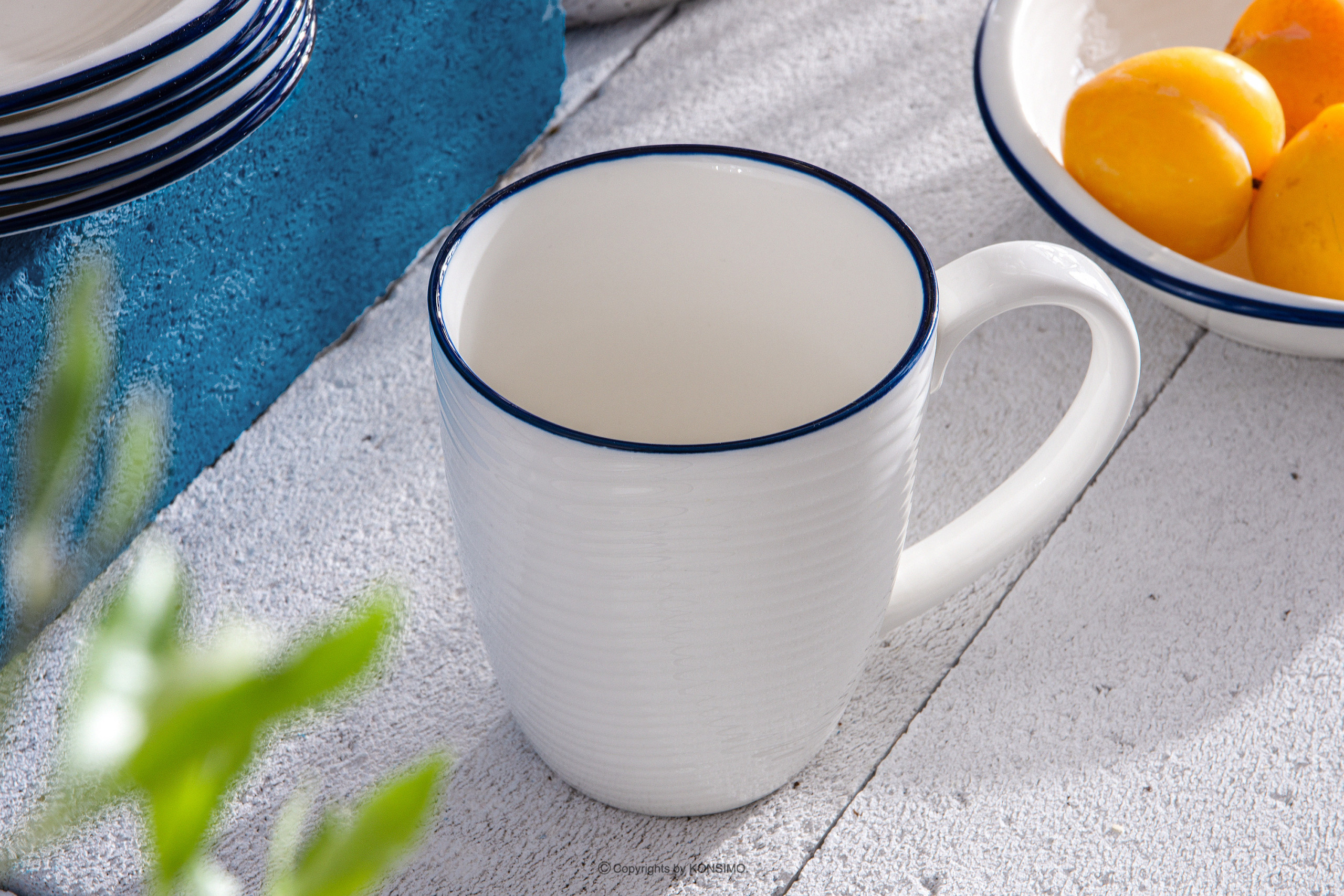 Výrobky z kolekce KROG v bílé barvě s tmavě modrým dekorem na okraji jsou ideální volbou pro milovníky moderního designu a minimalistických interiérů. Tyto hrnky z kolekce KROG jsou nejen elegantním, ale také praktickým doplňkem vašeho stolu. Jsou vyrobeny z porcelánu a poskytují odolnost a stylový vzhled, který se bude hodit ke každému dekoru stolu.