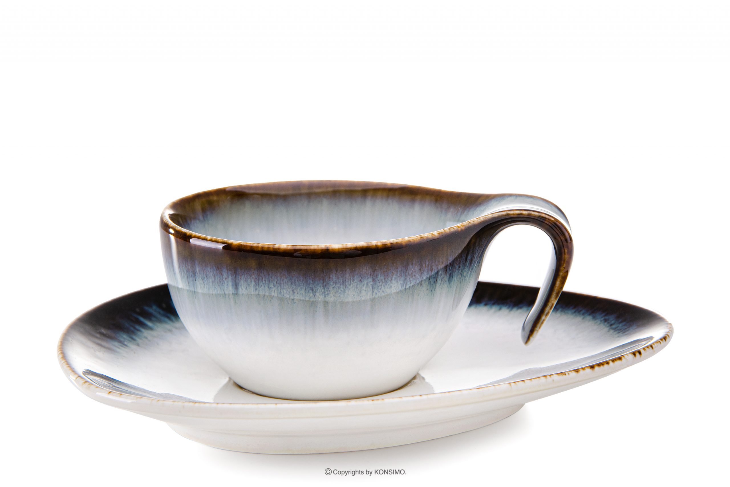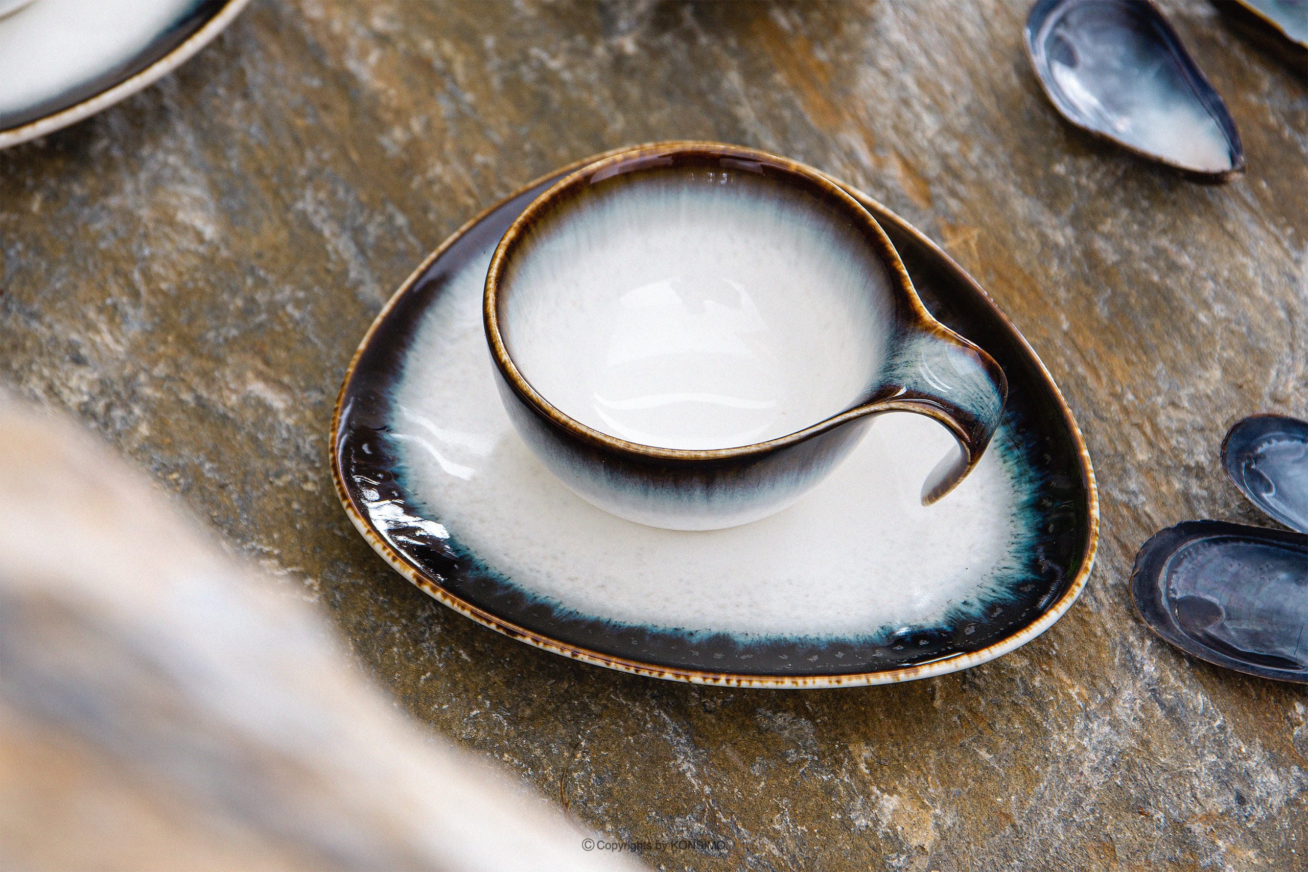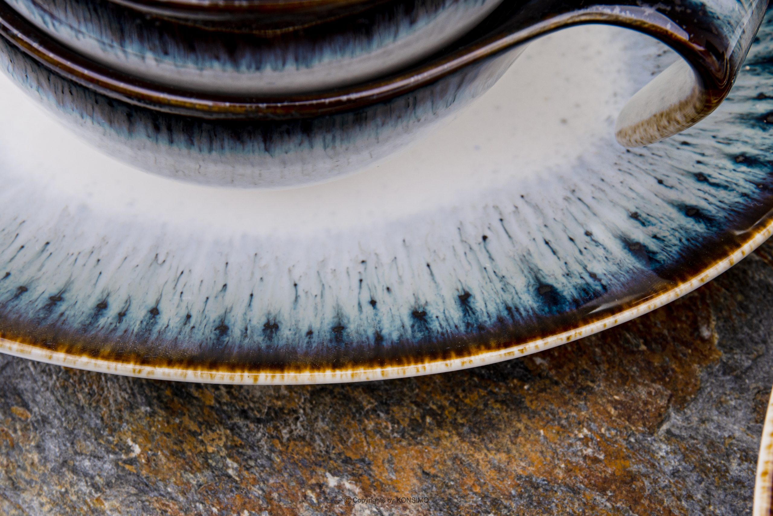 Šálka a podšálka na espresso so 6 kusmi v jedinečnom dizajne bola vytvorená na to, aby dodala vášmu stolovaniu farbu. Je vyrobená z vysokokvalitného porcelánu a dokonale sa hodí k námorníckej, námorníckej a škandinávskej tematike. Charakteristickým znakom je technika nanášania vzoru pomocou reaktívnej glazúry. Vďaka tomu je každý kus jedinečný a jednotlivé kusy sa od seba líšia.