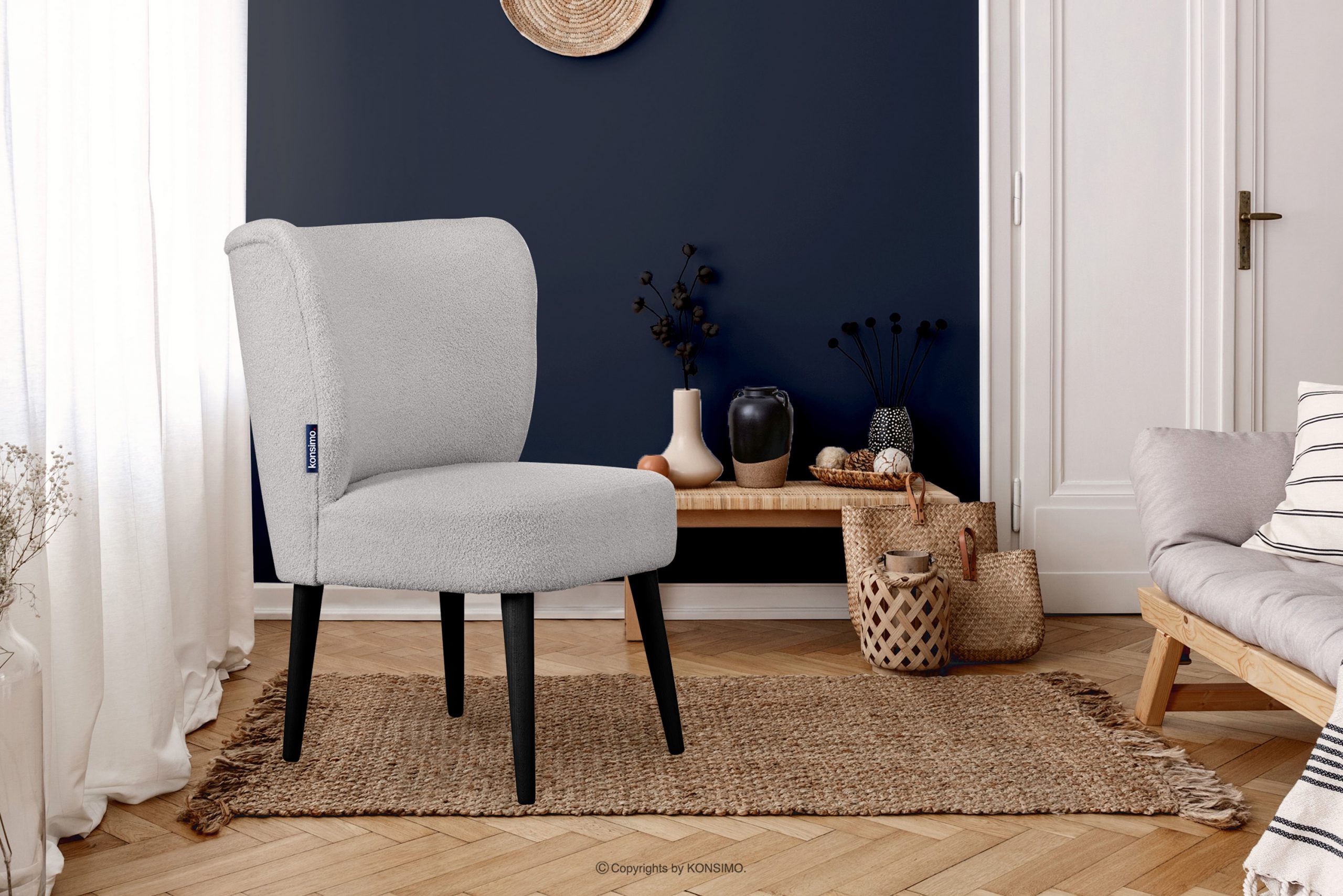 APPA Objav celú kolekciu Kreslo na vysokých nohách do obývačky boucle svetlo sivá- farba svetlosivá/čierna