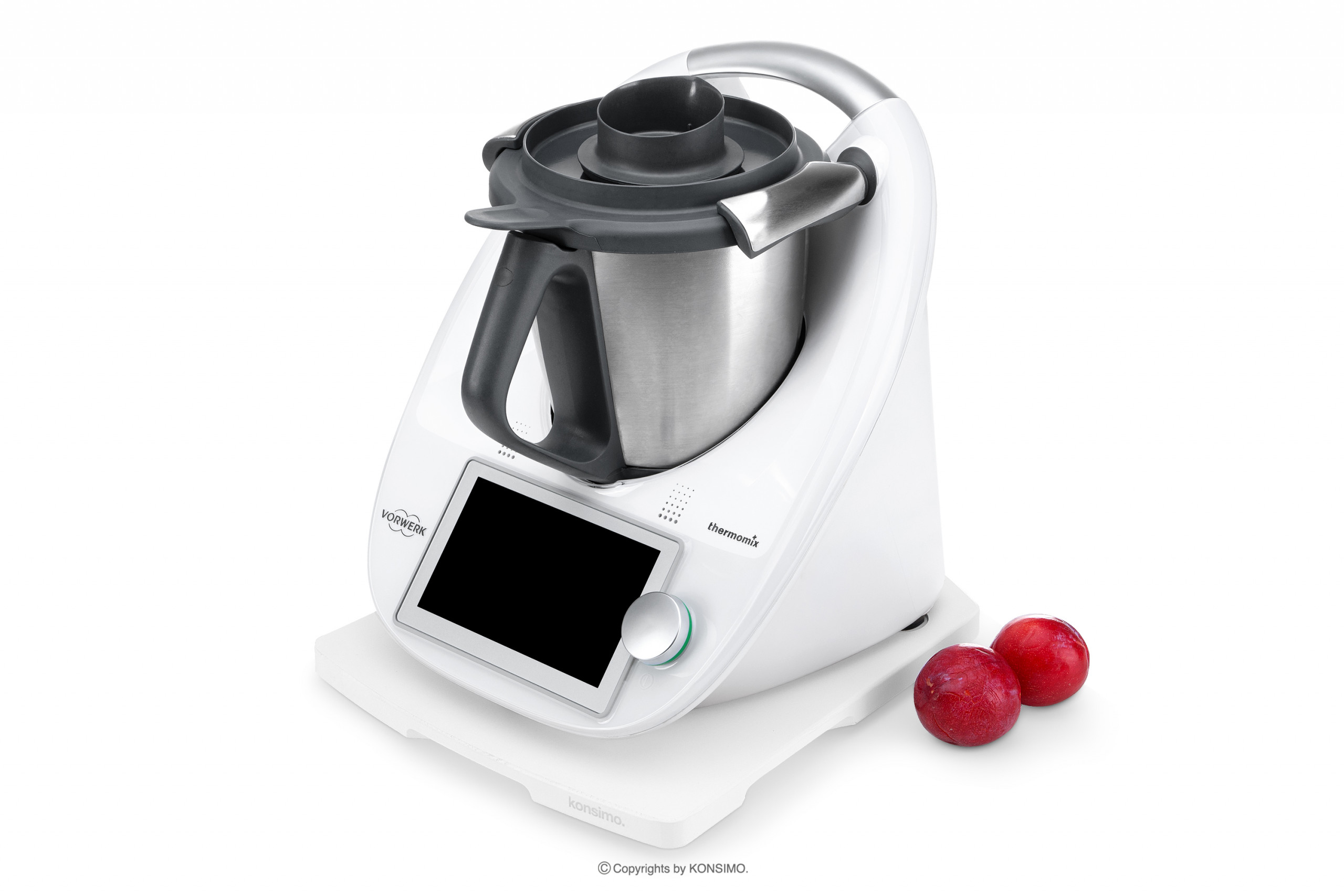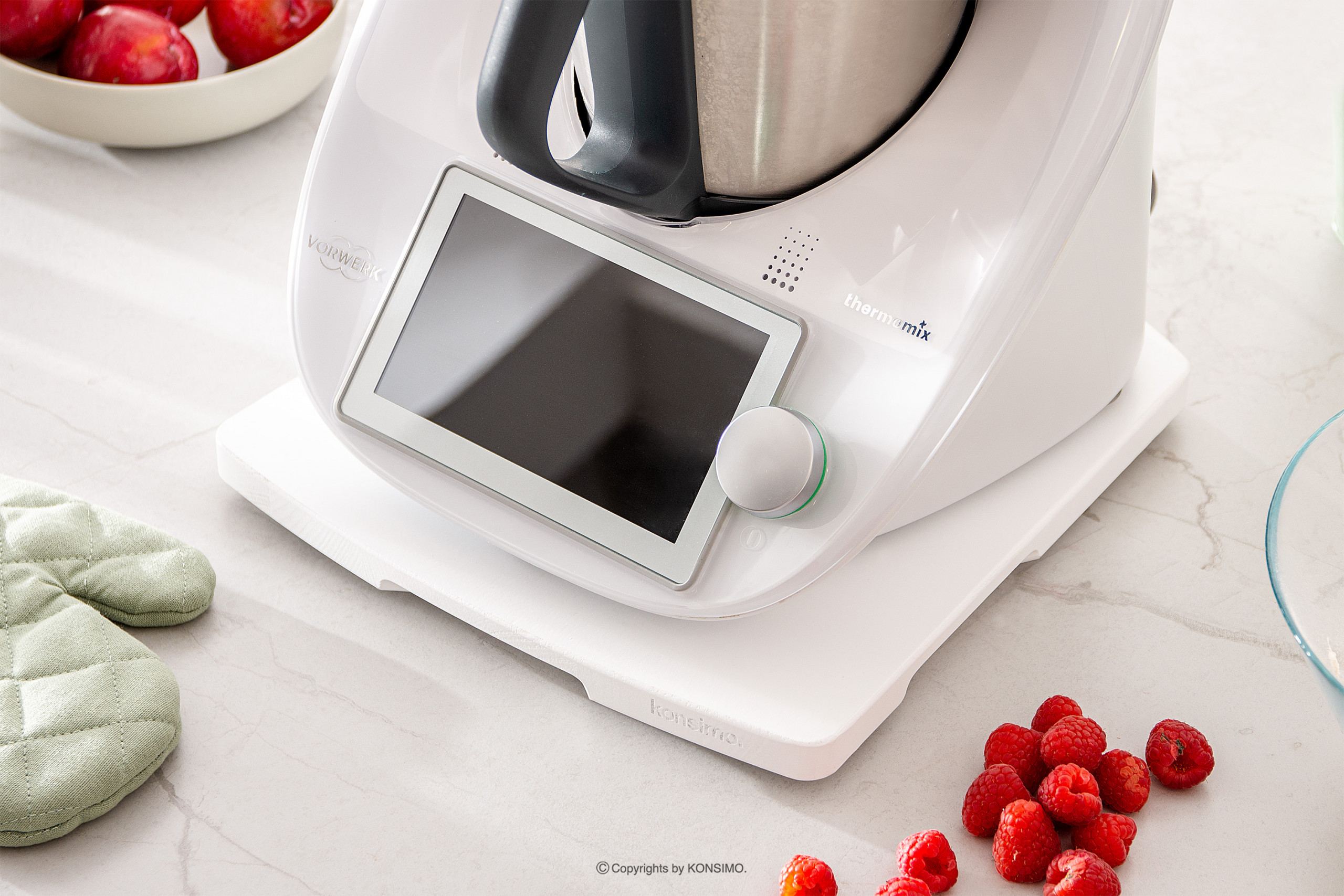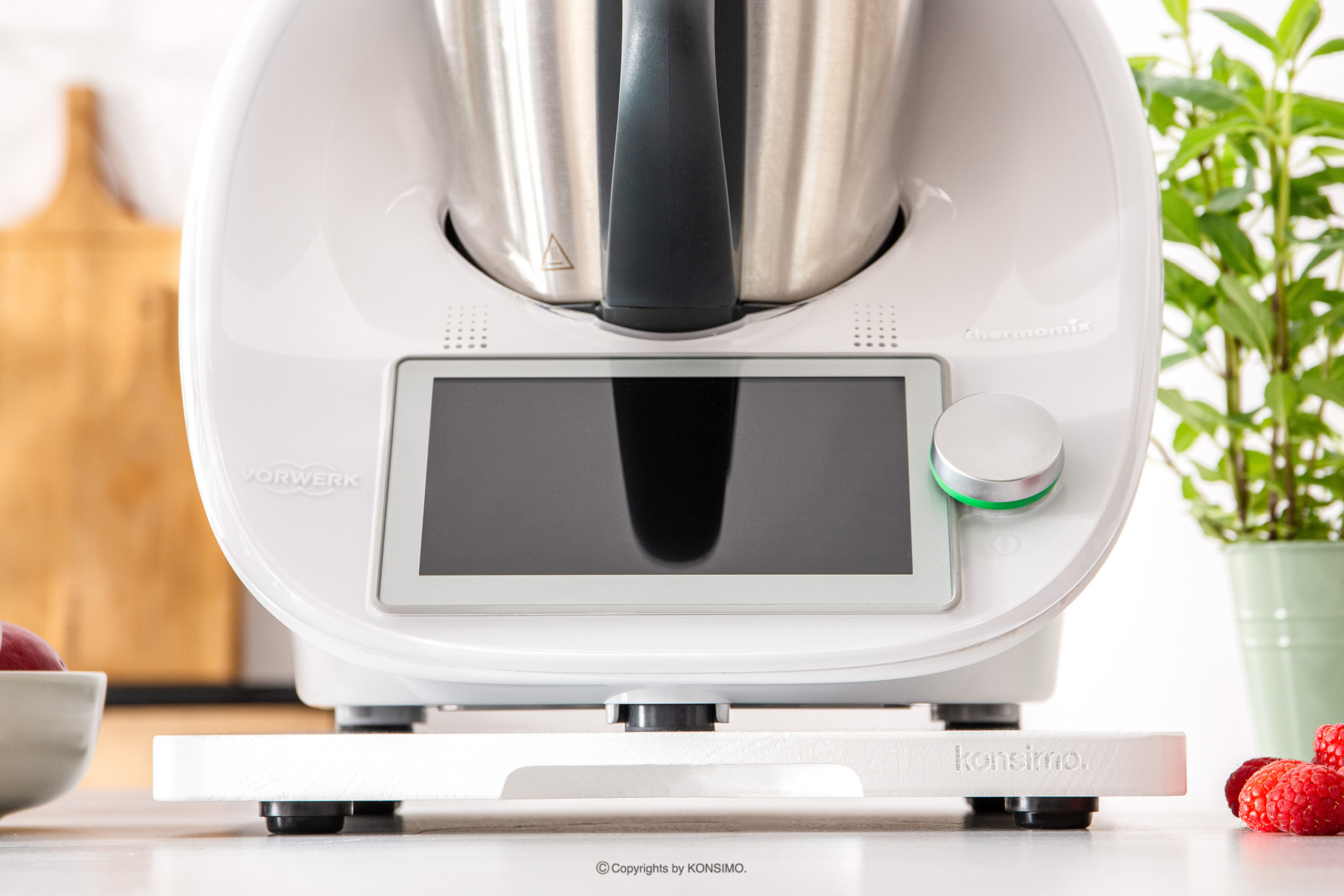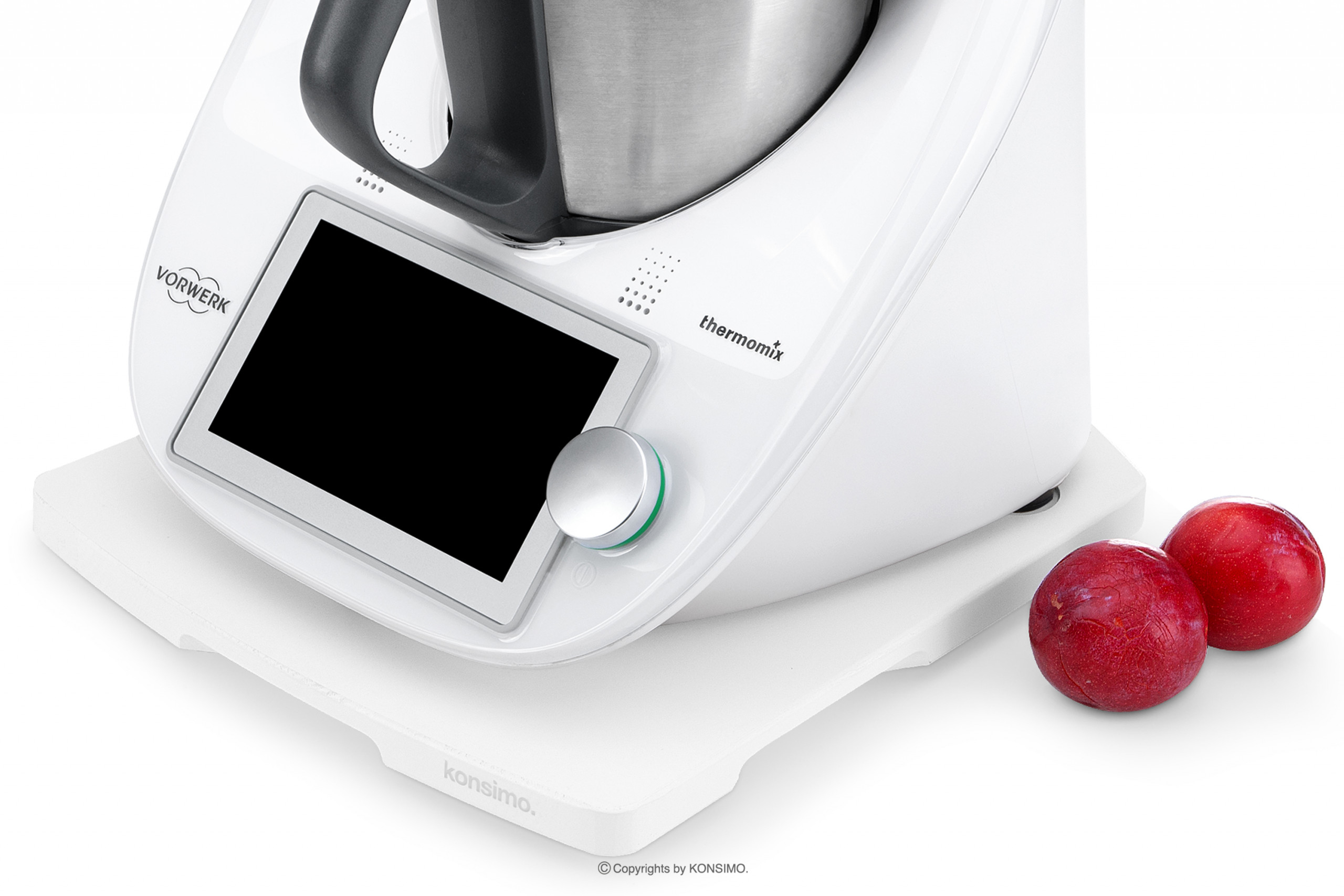 Biela doska Thermomix bola navrhnutá na stabilné umiestnenie spotrebiča. Vďaka špeciálne tvarovaným priehlbinám a gumovým nožičkám doska účinne zabraňuje poškodeniu snímača hmotnosti, ktorý je umiestnený v nožičkách spotrebiča. To zaručuje bezpečné a neprerušované používanie Thermomixu. Model COQUERE má ergonomický tvar a vyfrézované rukoväte po stranách a vpredu na jednoduchú manipuláciu a pohyb.