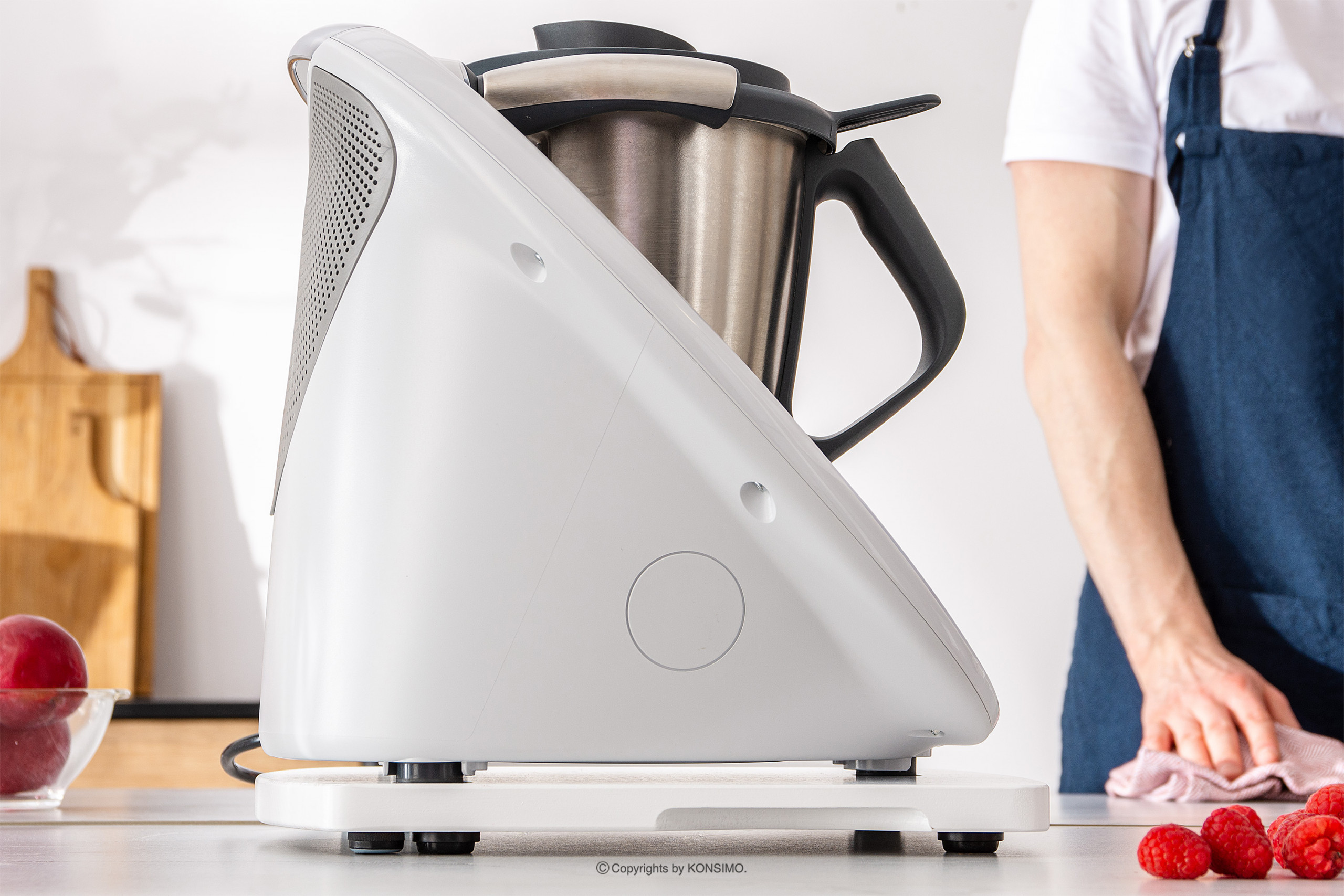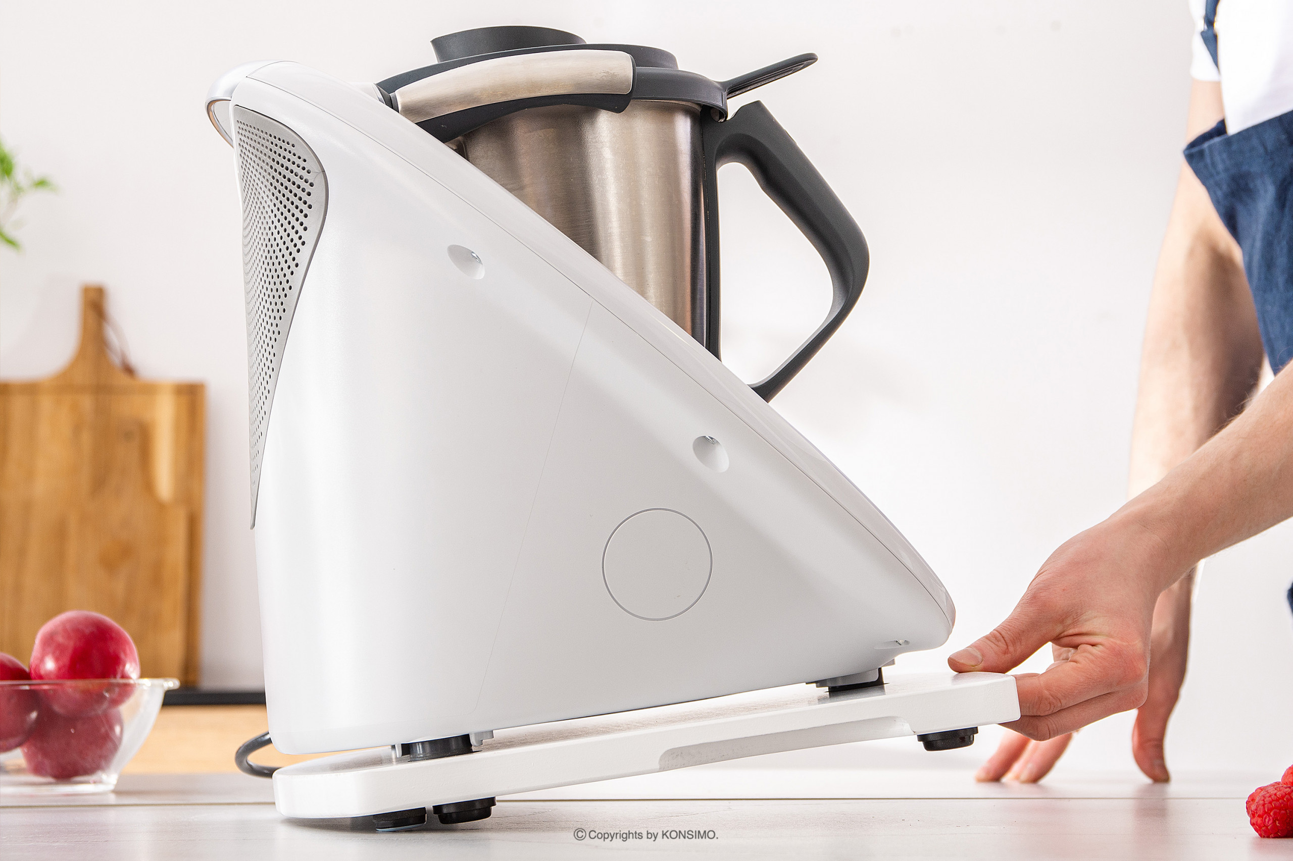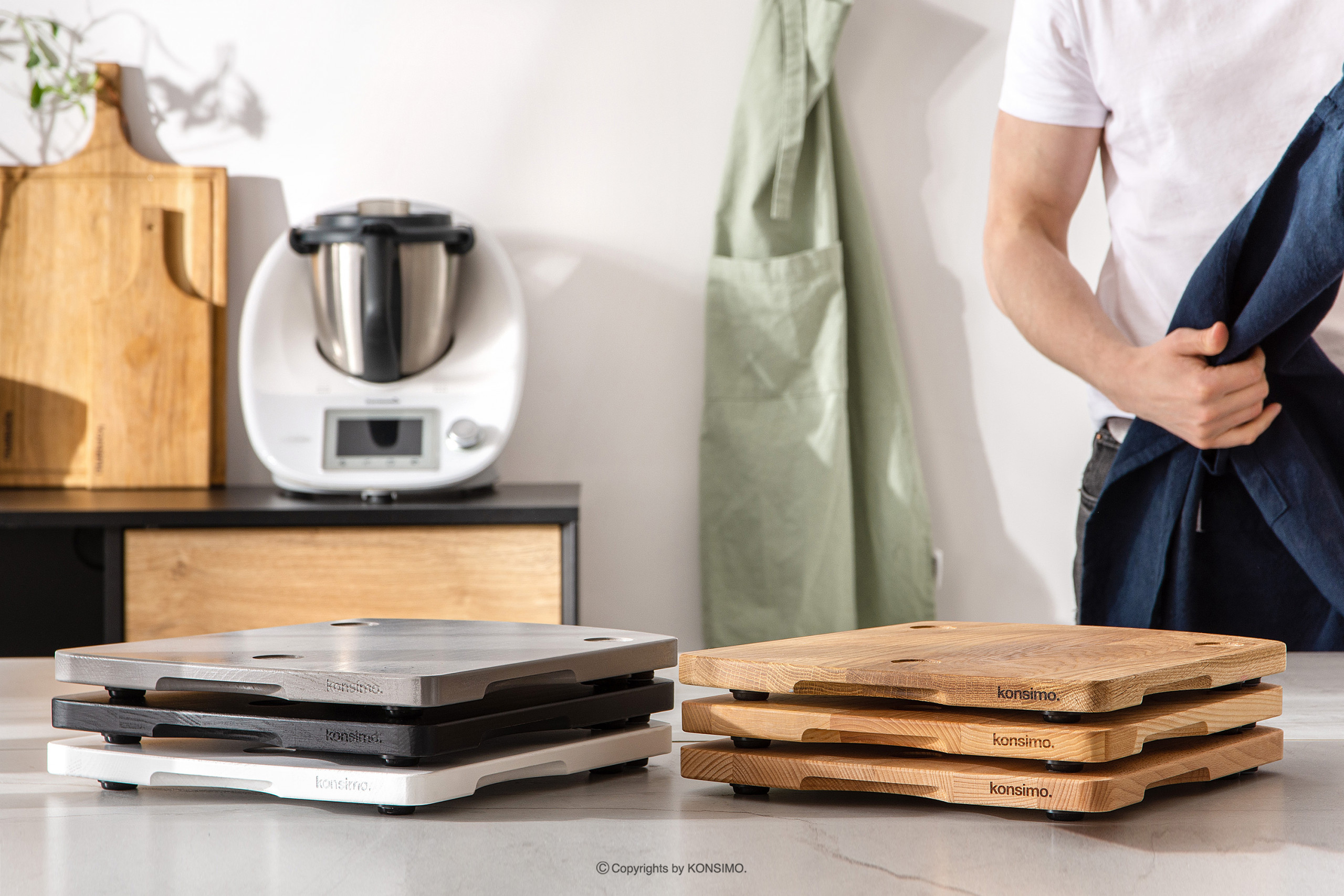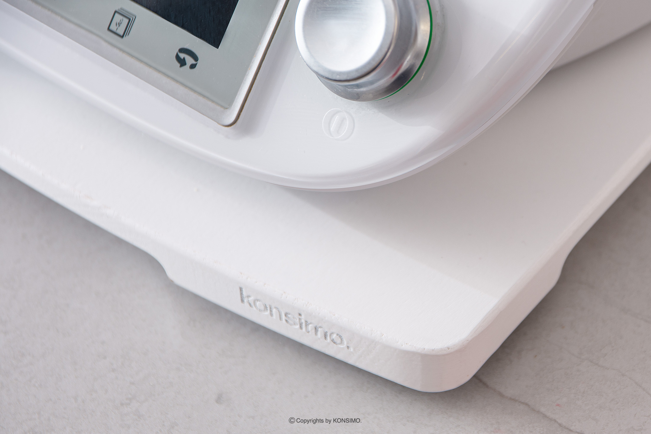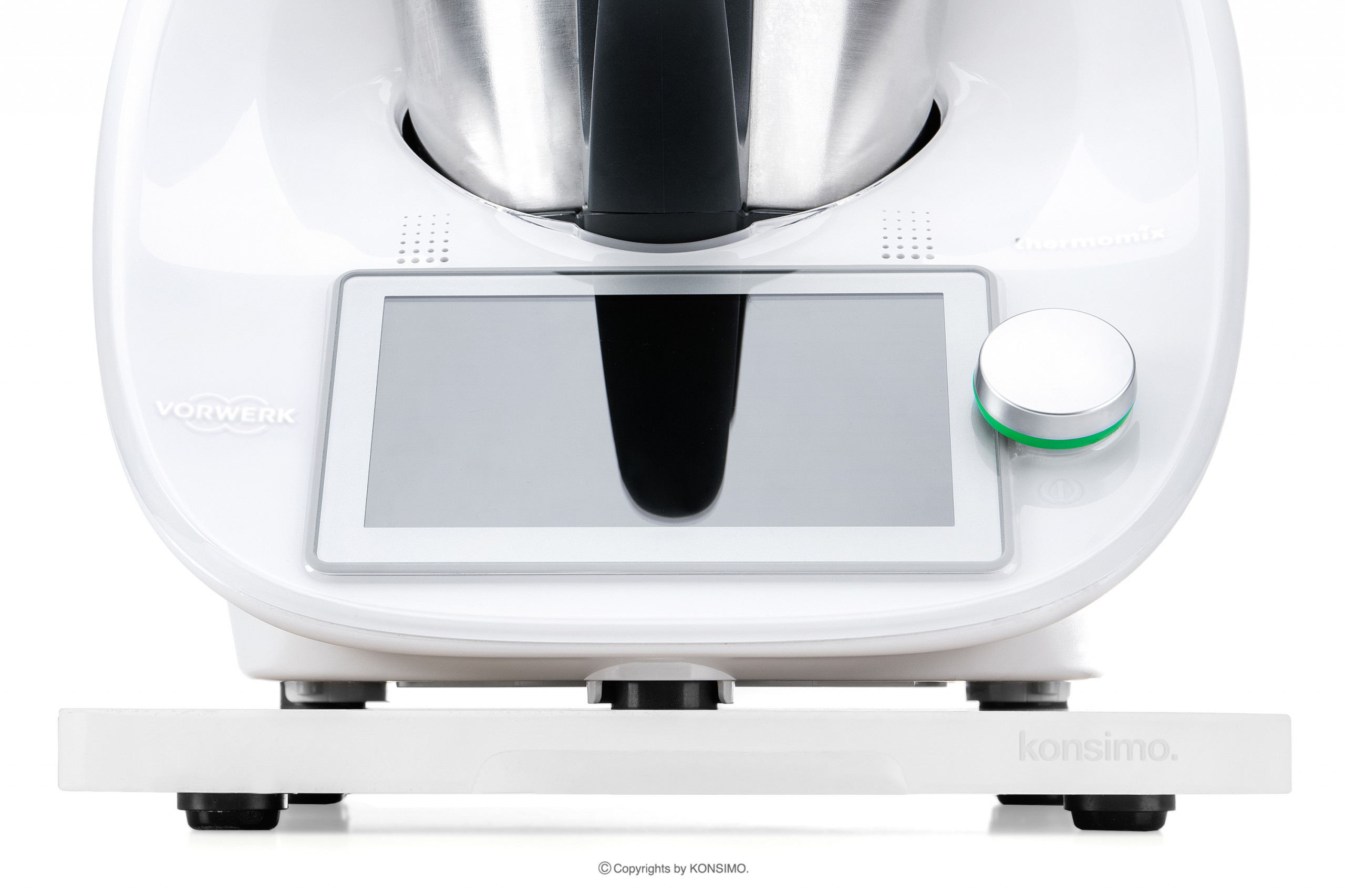 Biela doska Thermomix bola navrhnutá na stabilné umiestnenie spotrebiča. Vďaka špeciálne tvarovaným priehlbinám a gumovým nožičkám doska účinne zabraňuje poškodeniu snímača hmotnosti, ktorý je umiestnený v nožičkách spotrebiča. To zaručuje bezpečné a neprerušované používanie Thermomixu. Model COQUERE má ergonomický tvar a vyfrézované rukoväte po stranách a vpredu na jednoduchú manipuláciu a pohyb.