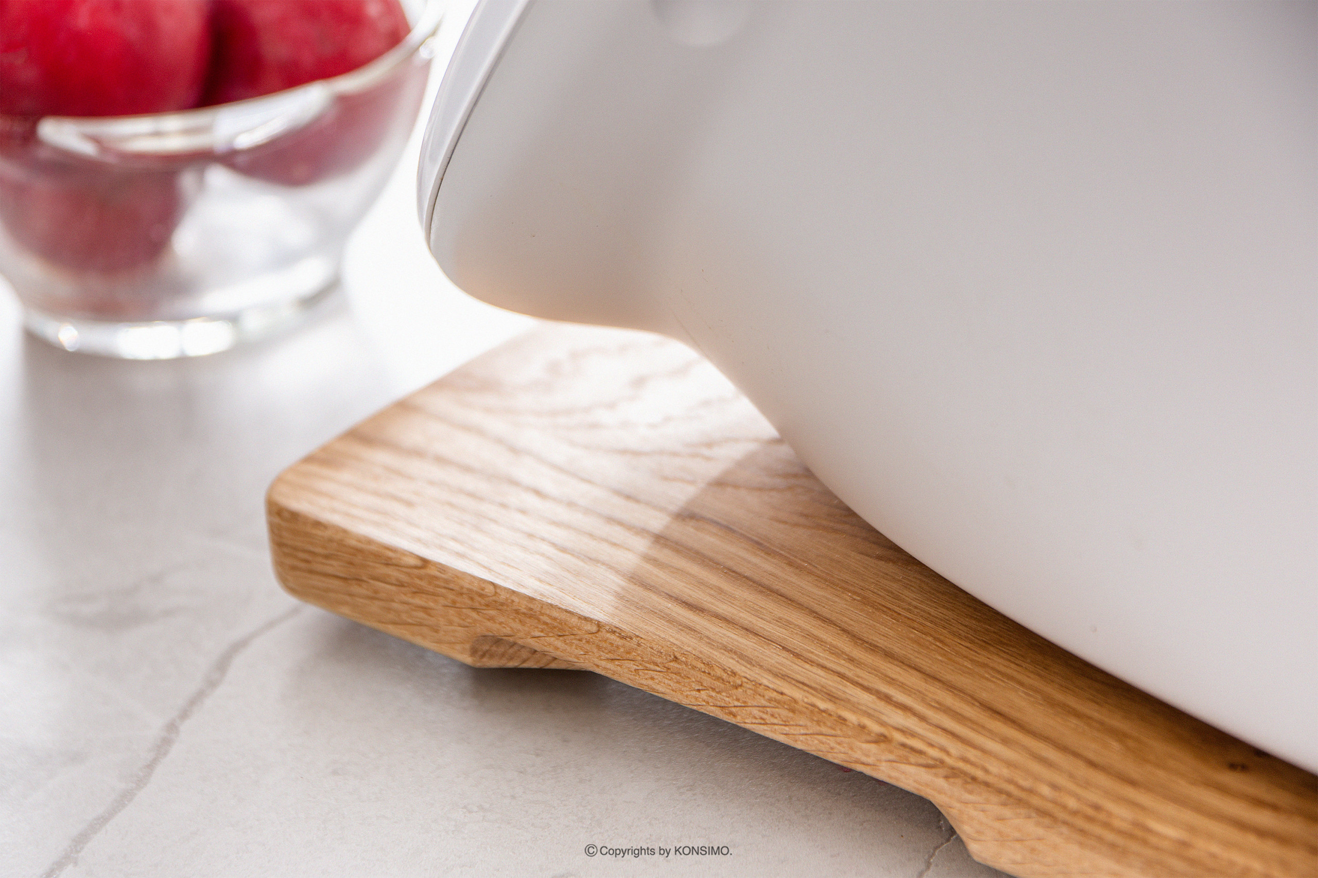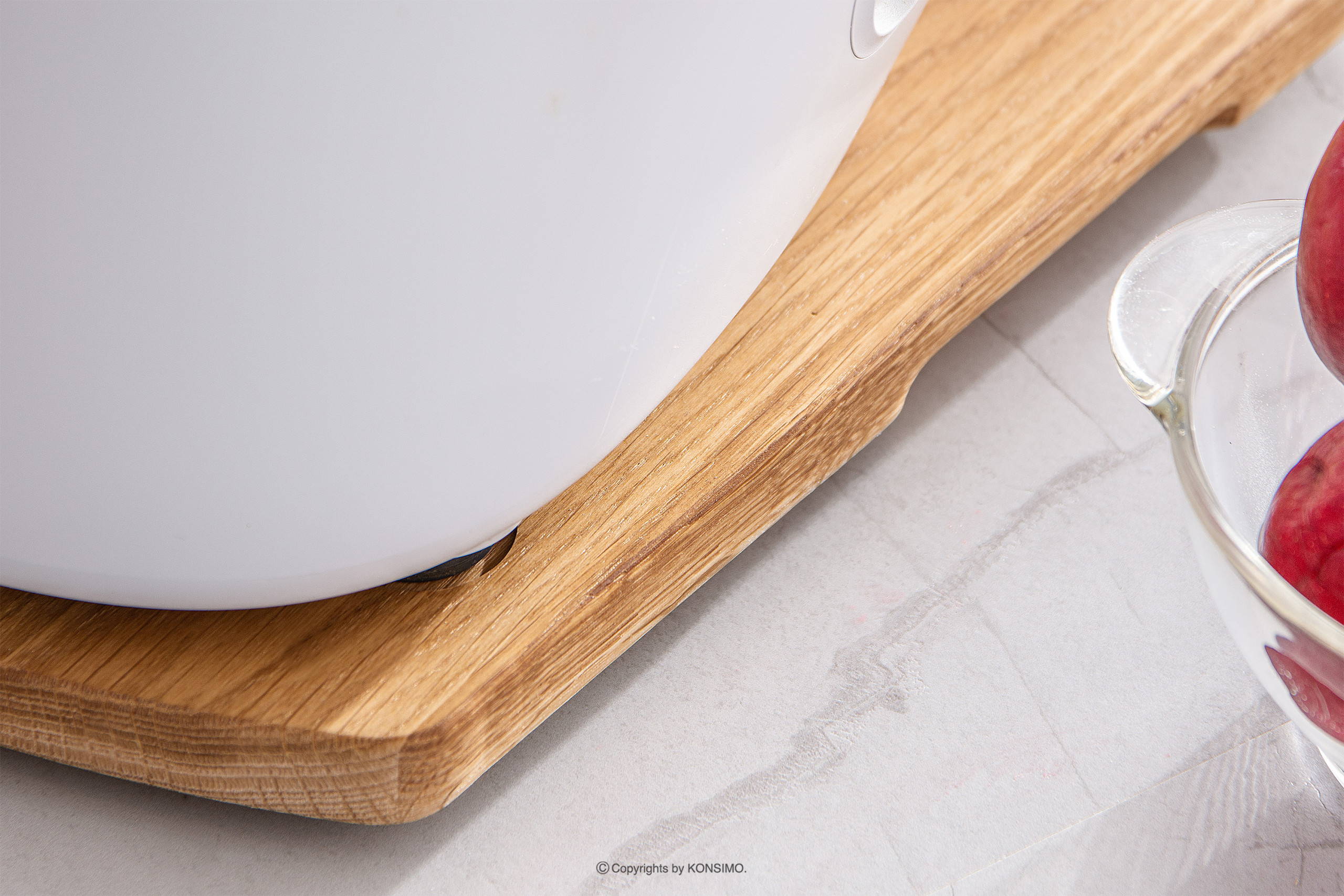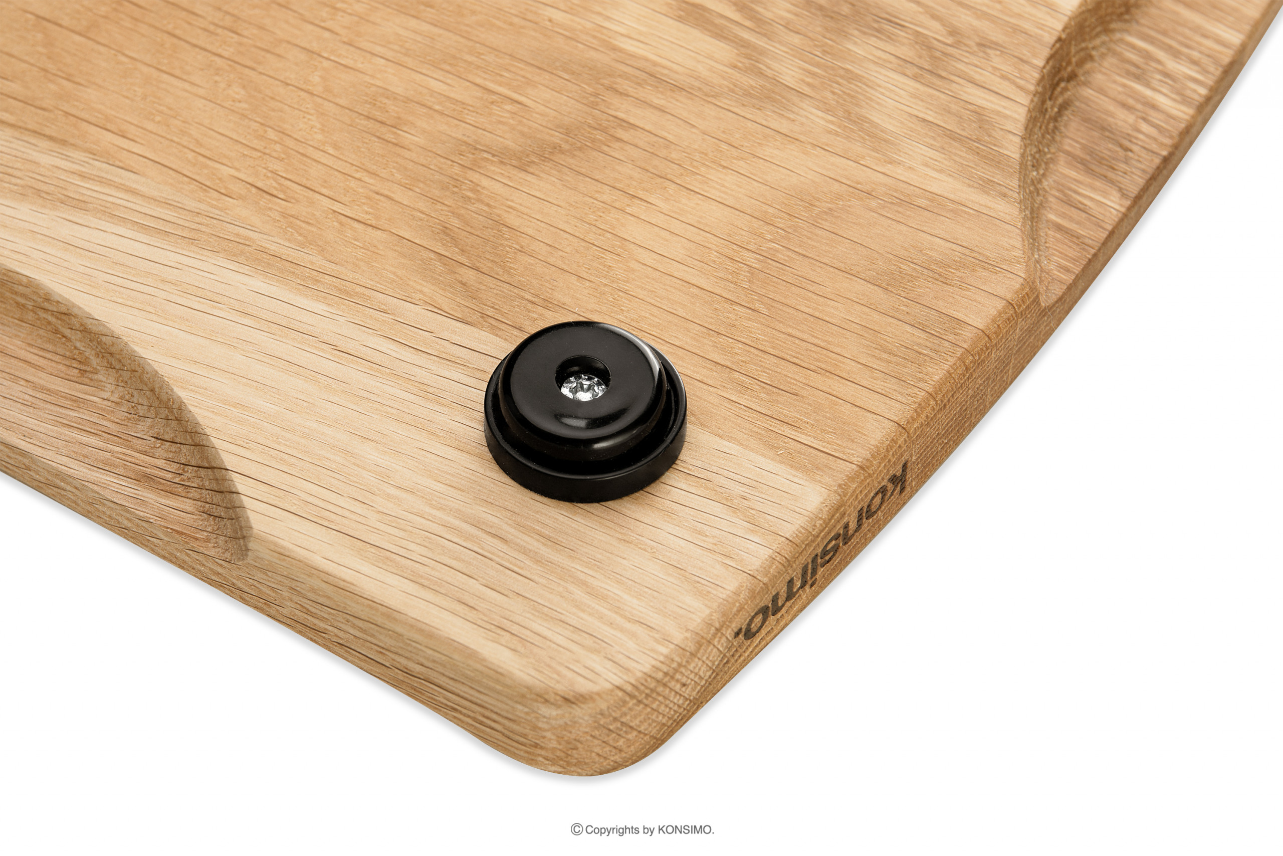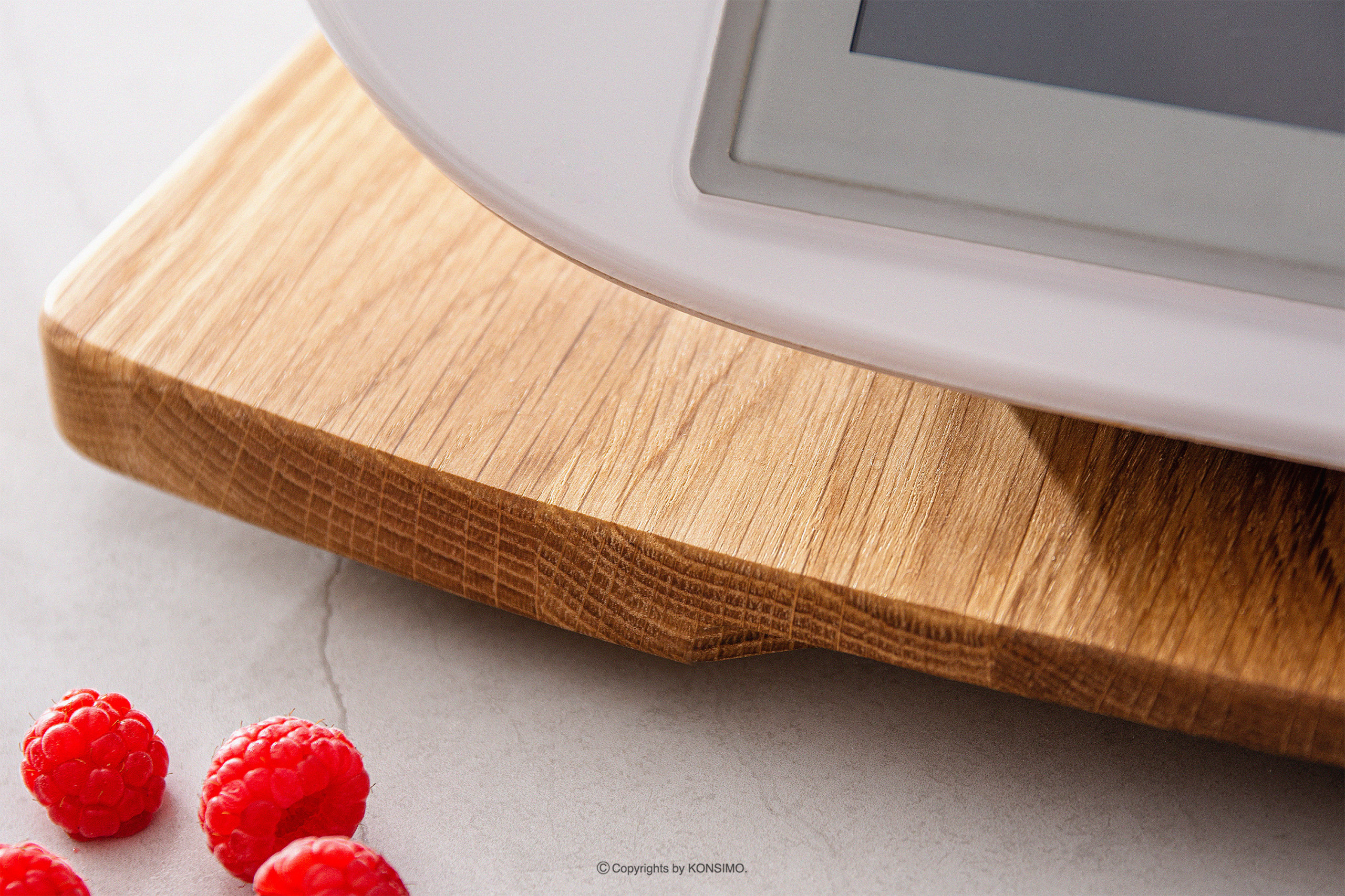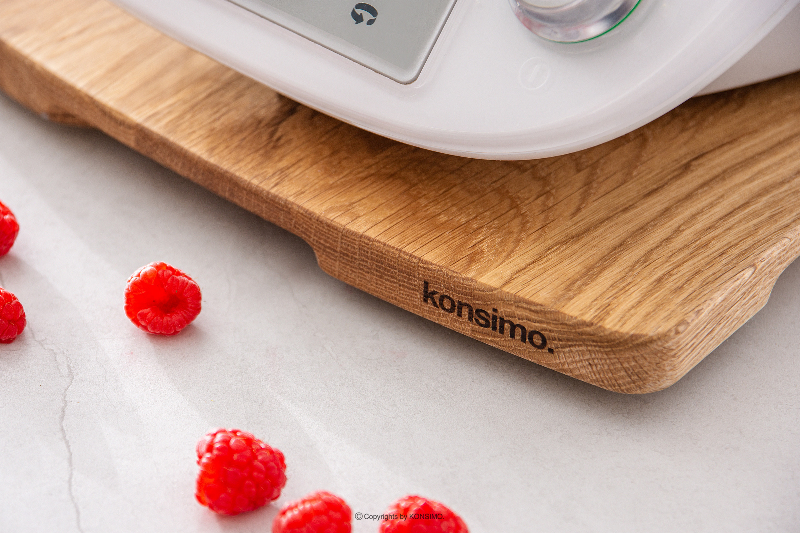 Doska pre Thermomix olejovaný dub bola navrhnutá na stabilné umiestnenie spotrebiča. Vďaka špeciálne tvarovaným priehlbinám a gumovým nožičkám doska účinne zabraňuje poškodeniu snímača rovnováhy, ktorý je umiestnený v nožičkách spotrebiča. To zaručuje bezpečné a neprerušované používanie Thermomixu. Doska COQUERE má ergonomický tvar a vyfrézované rukoväte po stranách a vpredu na jednoduchú manipuláciu a pohyb.
