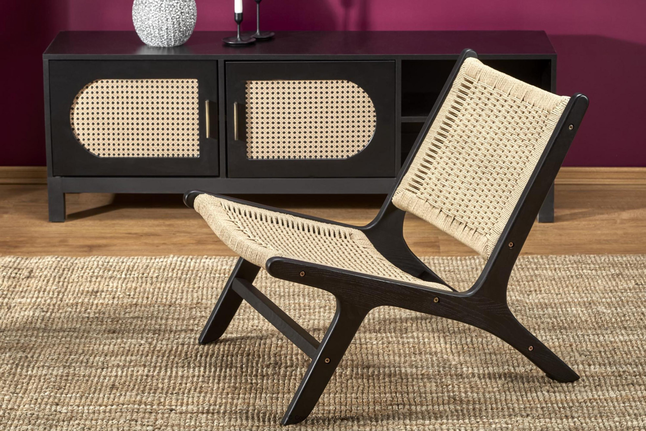 CALLIPTE Objav celú kolekciu Drevené záhradné kreslo v boho štýle čierne- farba béžová/čierna