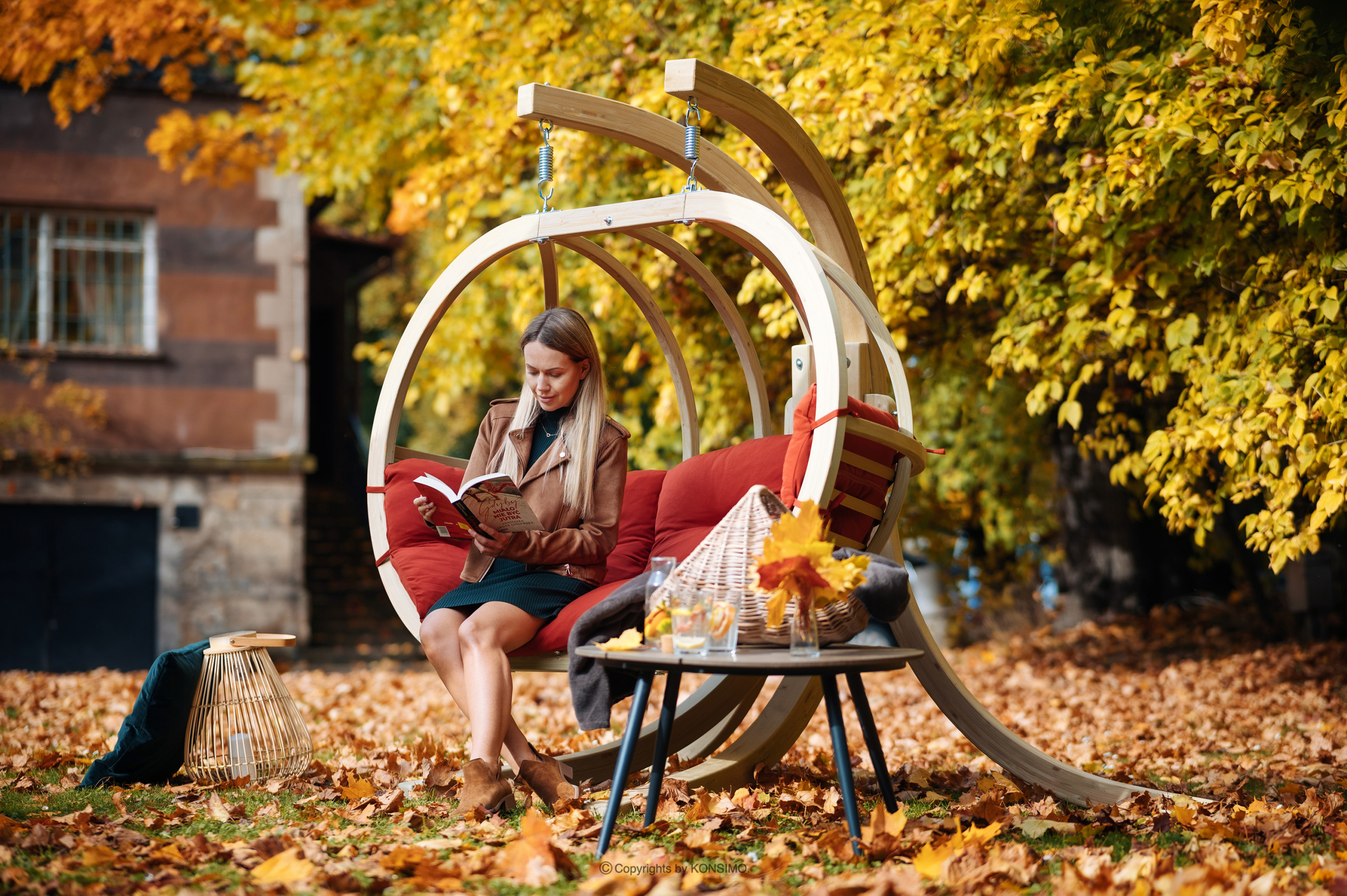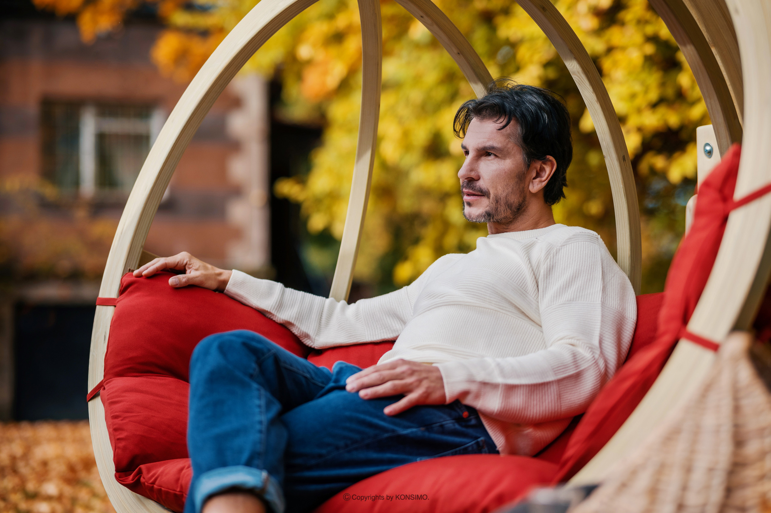CALLISTO Objav celú kolekciu Závesné kokónové záhradné kreslo drevené dvojmiestne červené- farba červená