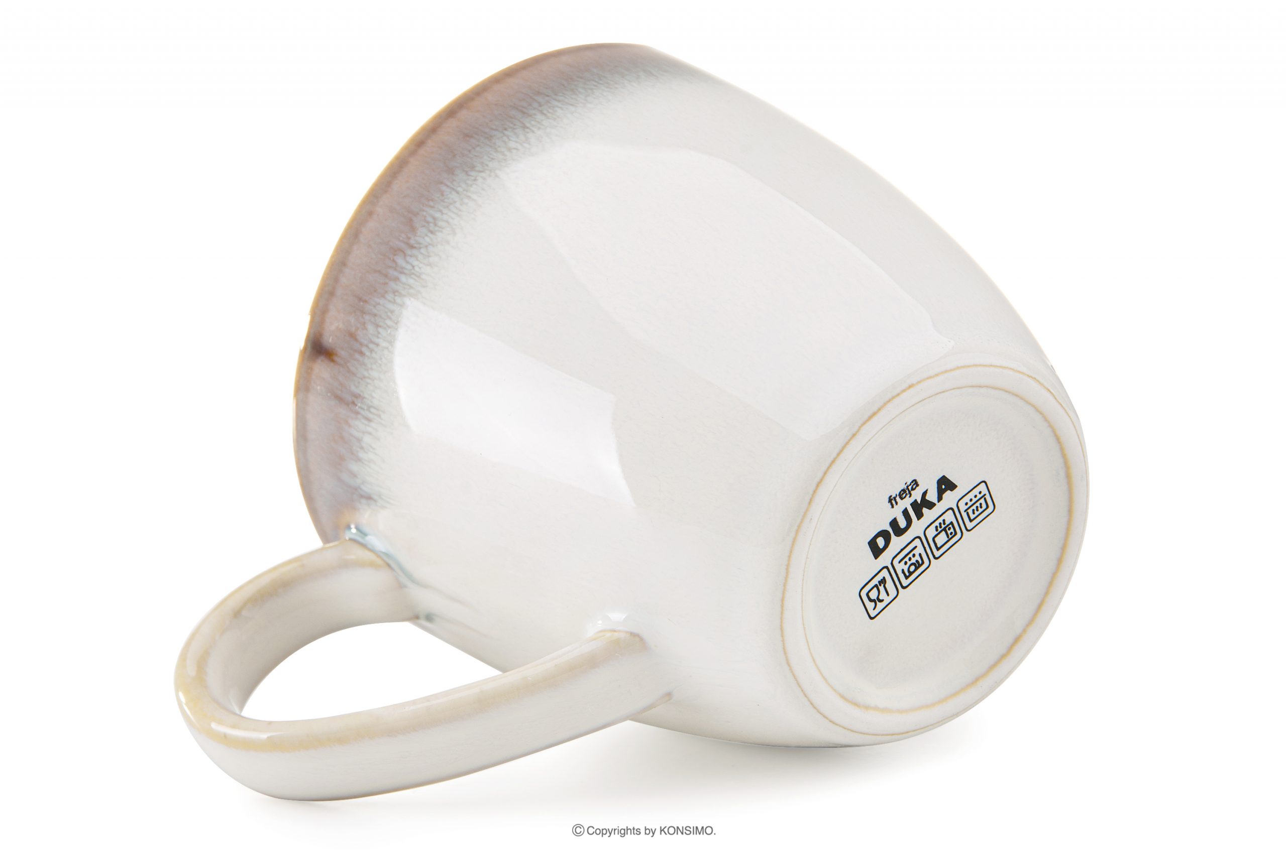 Šálka zo 6 ks z kolekcie FREJA je skutočným vyjadrením škandinávskeho štýlu. Riad je vyrobený z jemného porcelánu a zaujme nielen svojím nezvyčajným vzorom, ale aj jedinečným dizajnom, ktorý sa dokonale hodí do moderného interiéru. Vďaka technike reaktívneho glazovania je každý kus jedinečný. Vďaka tomu sa jednotlivé kusy v kolekcii od seba líšia a vytvárajú na stole fascinujúcu rozmanitosť.