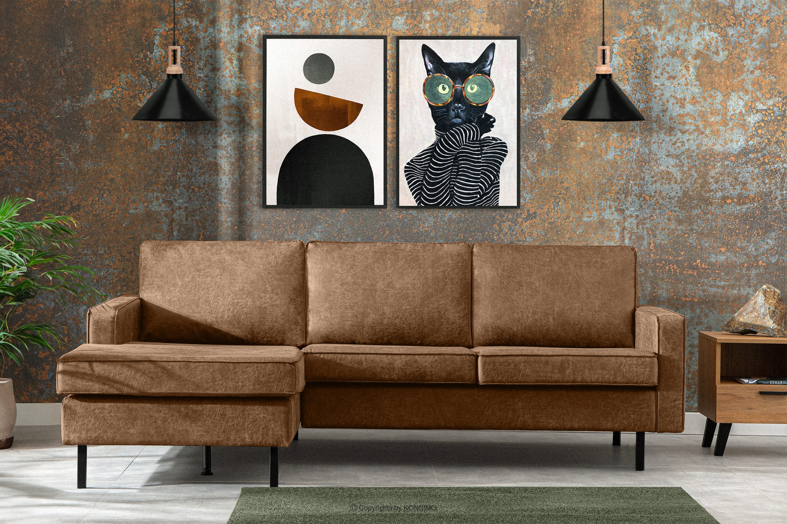 Ľavá rohová pohovka v loftovom štýle s otomanom hnedej farby je dokonalým riešením pre veľké aj malé miestnosti. Jej jedinečný dizajn a kvalitné spracovanie z nej robia kus nábytku, ktorý nielen esteticky poteší, ale aj poskytne pohodlie a komfort. Rohová pohovka má aj kovové nožičky v čiernej farbe, ktoré dokonale ladia s loftovým a vintage štýlom.