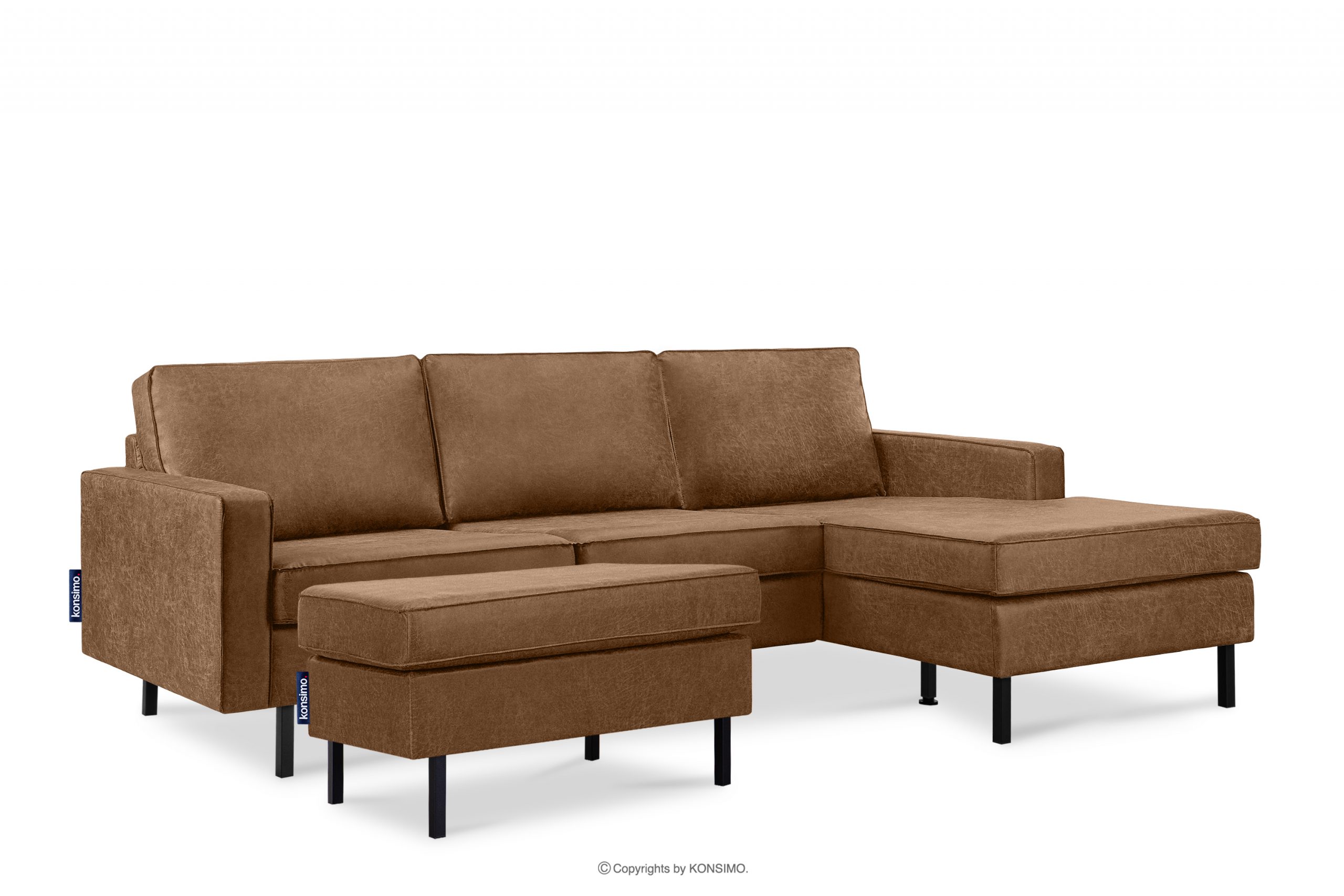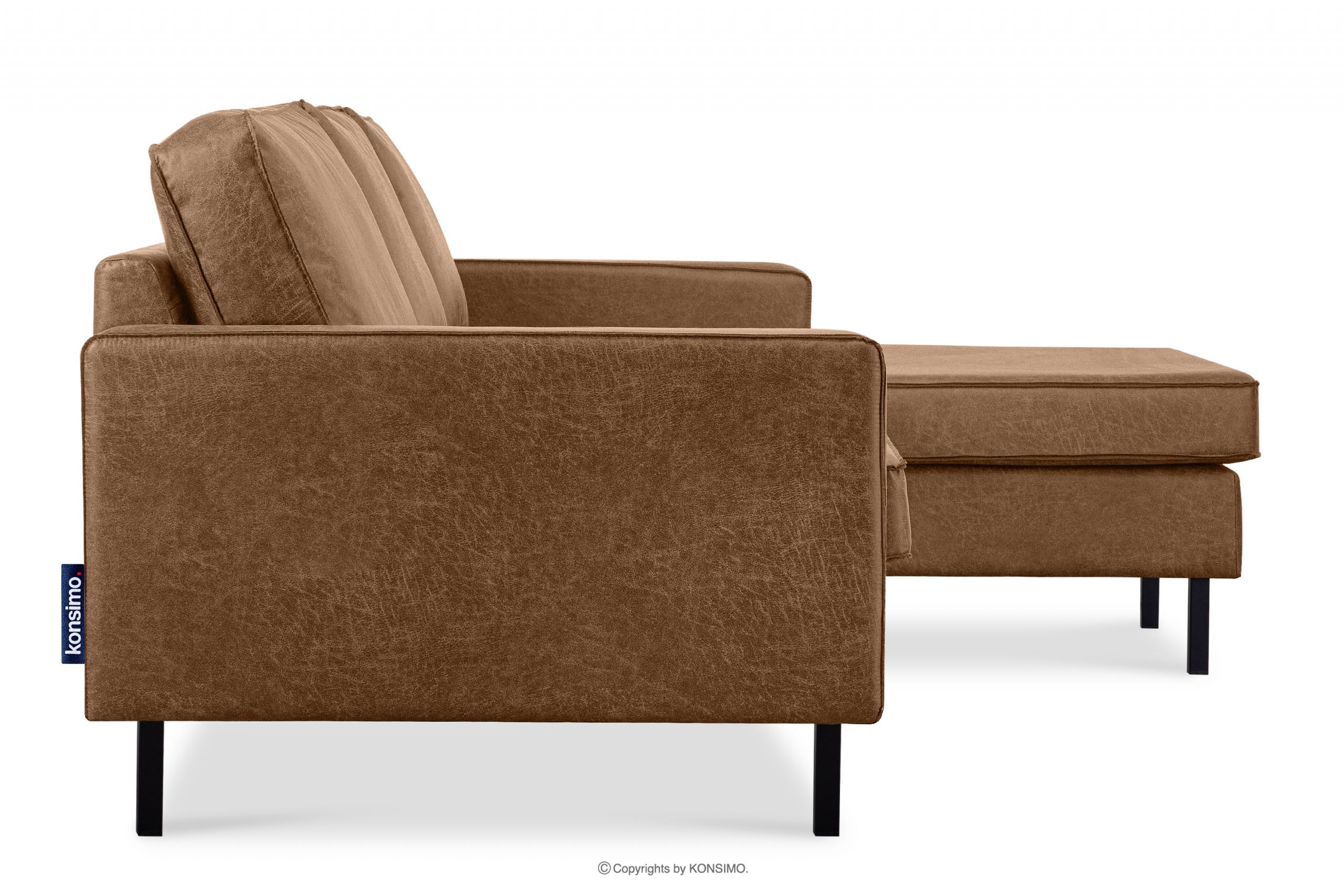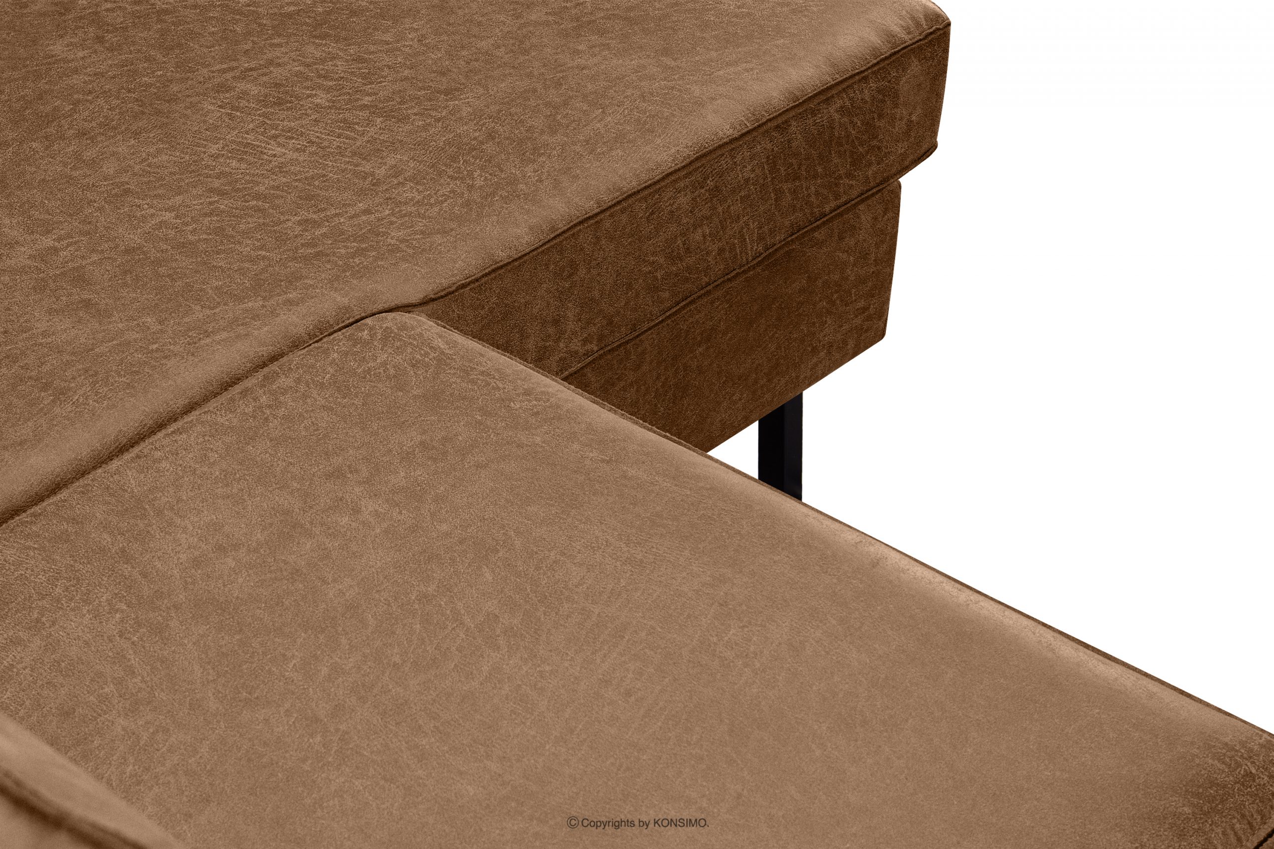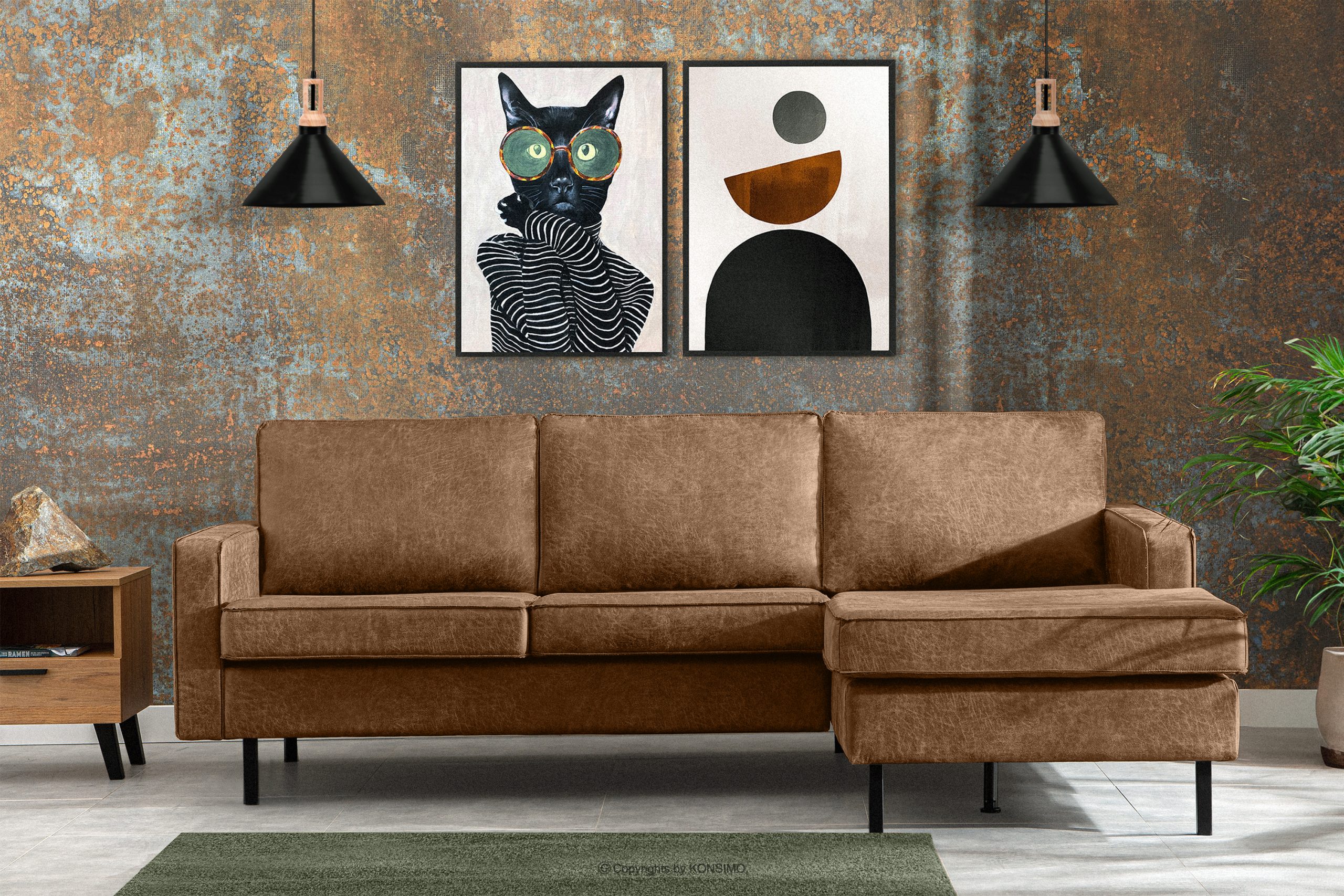 Originálna rohová pohovka v loftovom štýle s otomanom v hnedej farbe je dokonalým riešením pre veľké aj malé miestnosti. Jej jedinečný dizajn a kvalitné spracovanie z nej robia kus nábytku, ktorý je nielen esteticky úžasný, ale poskytuje aj pohodlie a komfort. Rohová pohovka má aj kovové nožičky v čiernej farbe, ktoré dokonale ladia s loftovým a vintage štýlom.