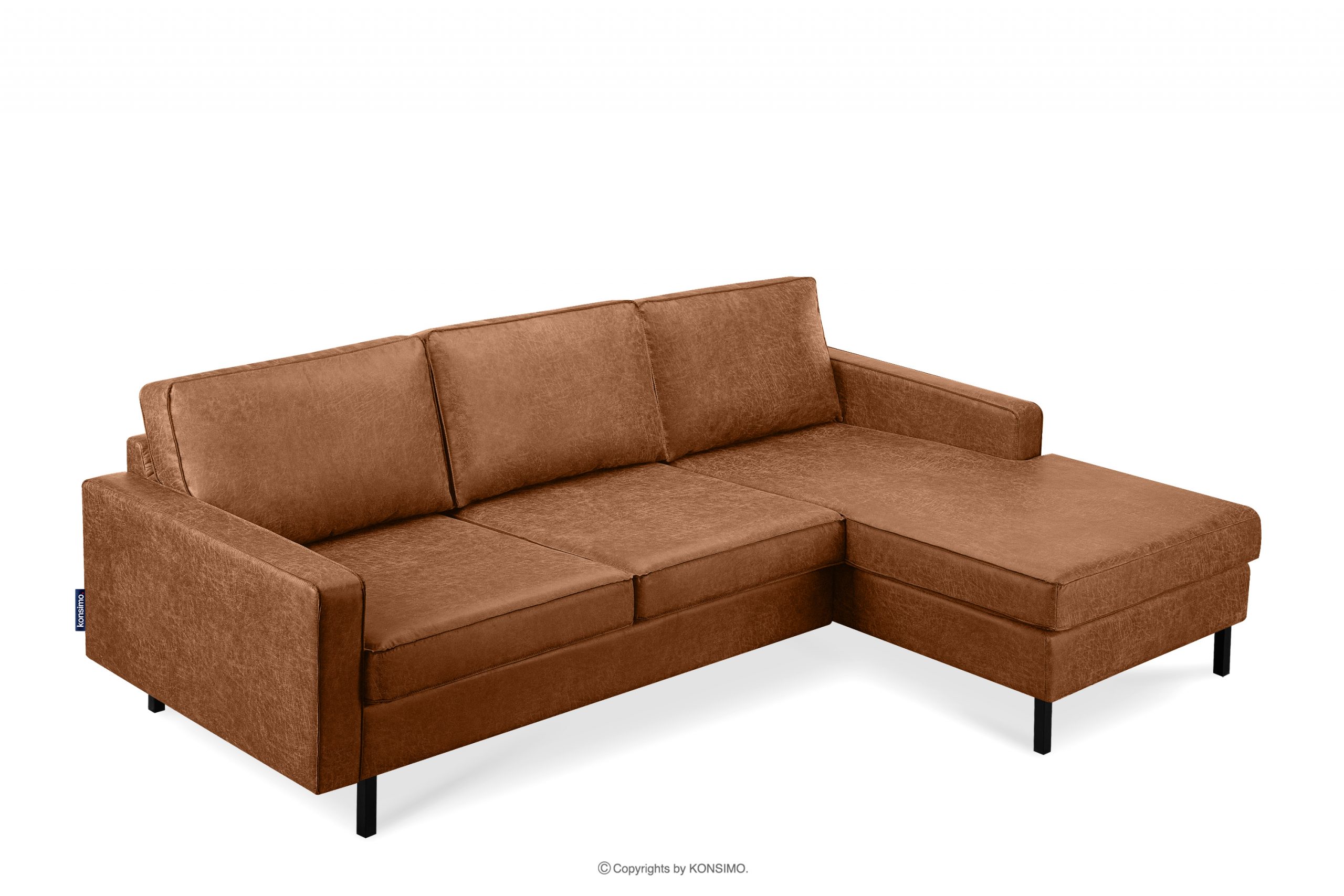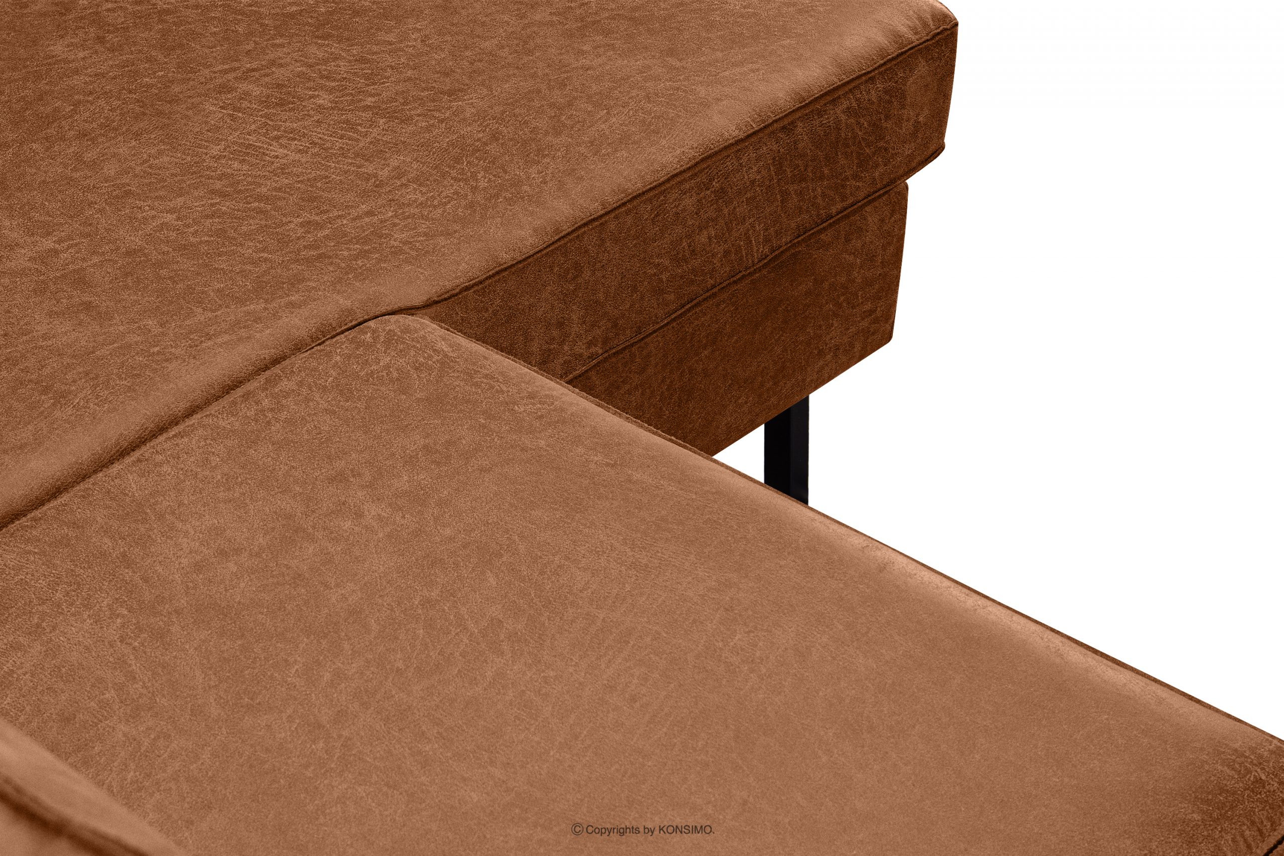 Originálna rohová pohovka v loftovom štýle s otomanom vo farbe hrdze je dokonalým riešením pre veľké aj malé miestnosti. Jej jedinečný dizajn a kvalitné spracovanie z nej robia kus nábytku, ktorý je nielen esteticky úžasný, ale poskytuje aj pohodlie a komfort. Rohová pohovka má aj kovové nožičky v čiernej farbe, ktoré dokonale ladia s loftovým a vintage štýlom.