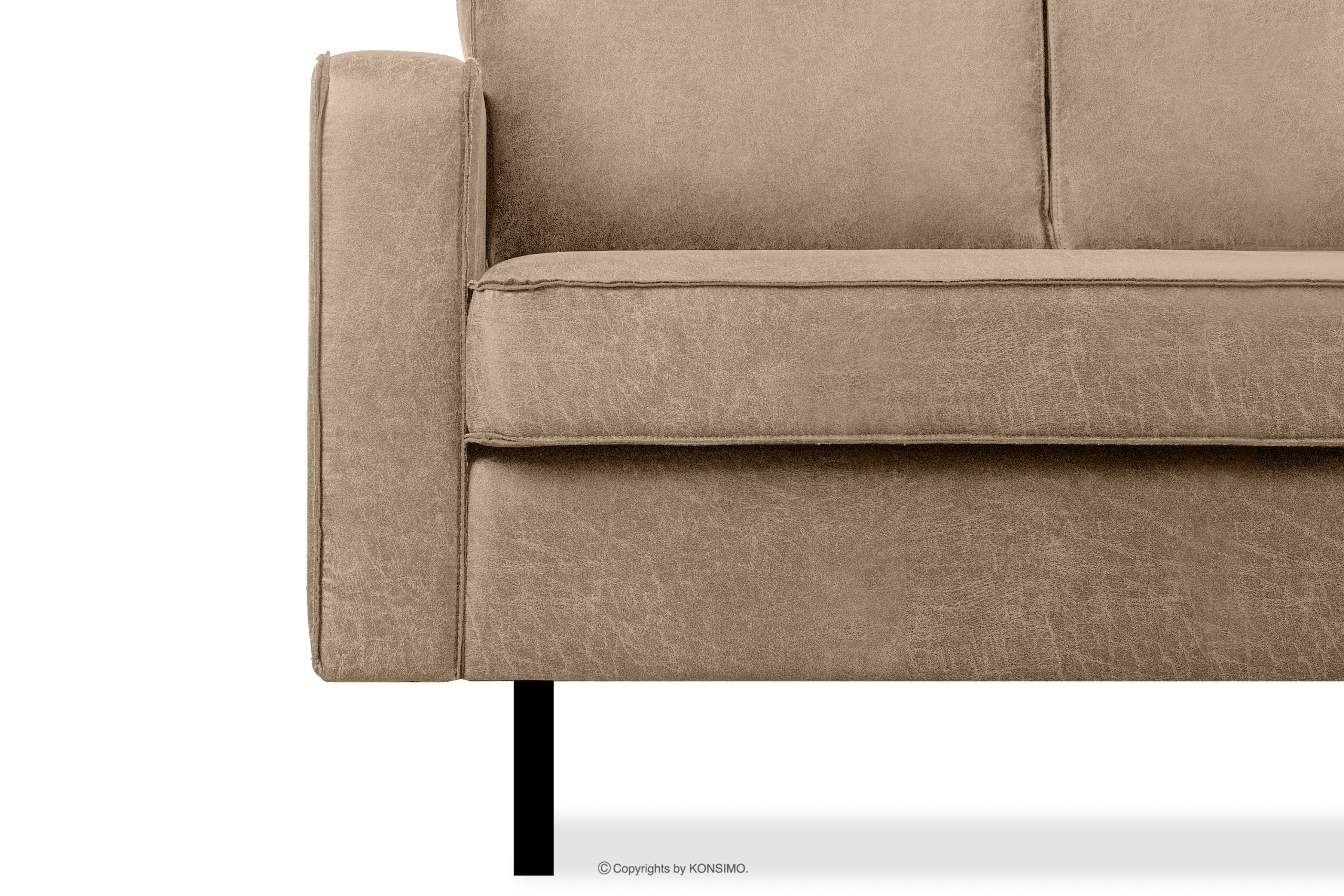 Dvojmiestna pohovka v štýle loft v béžovej farbe je ideálna do veľkých aj malých miestností. Jej jedinečný dizajn a kvalitné spracovanie z nej robia kus nábytku, ktorý je nielen esteticky úžasný, ale poskytuje aj pohodlie a komfort. Pohovka má aj kovové nohy v čiernej farbe, ktoré dokonale ladia s loftovým a vintage štýlom.