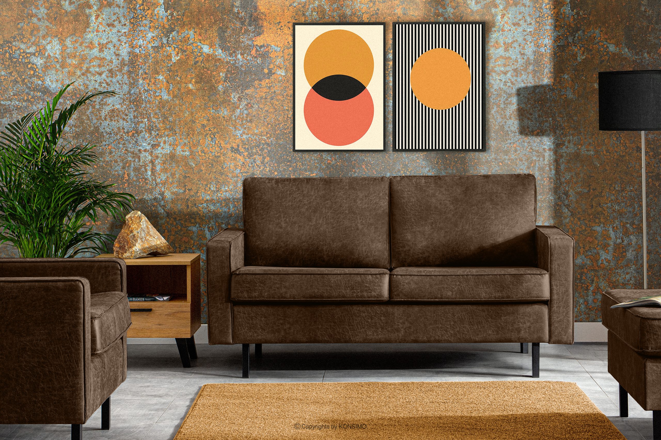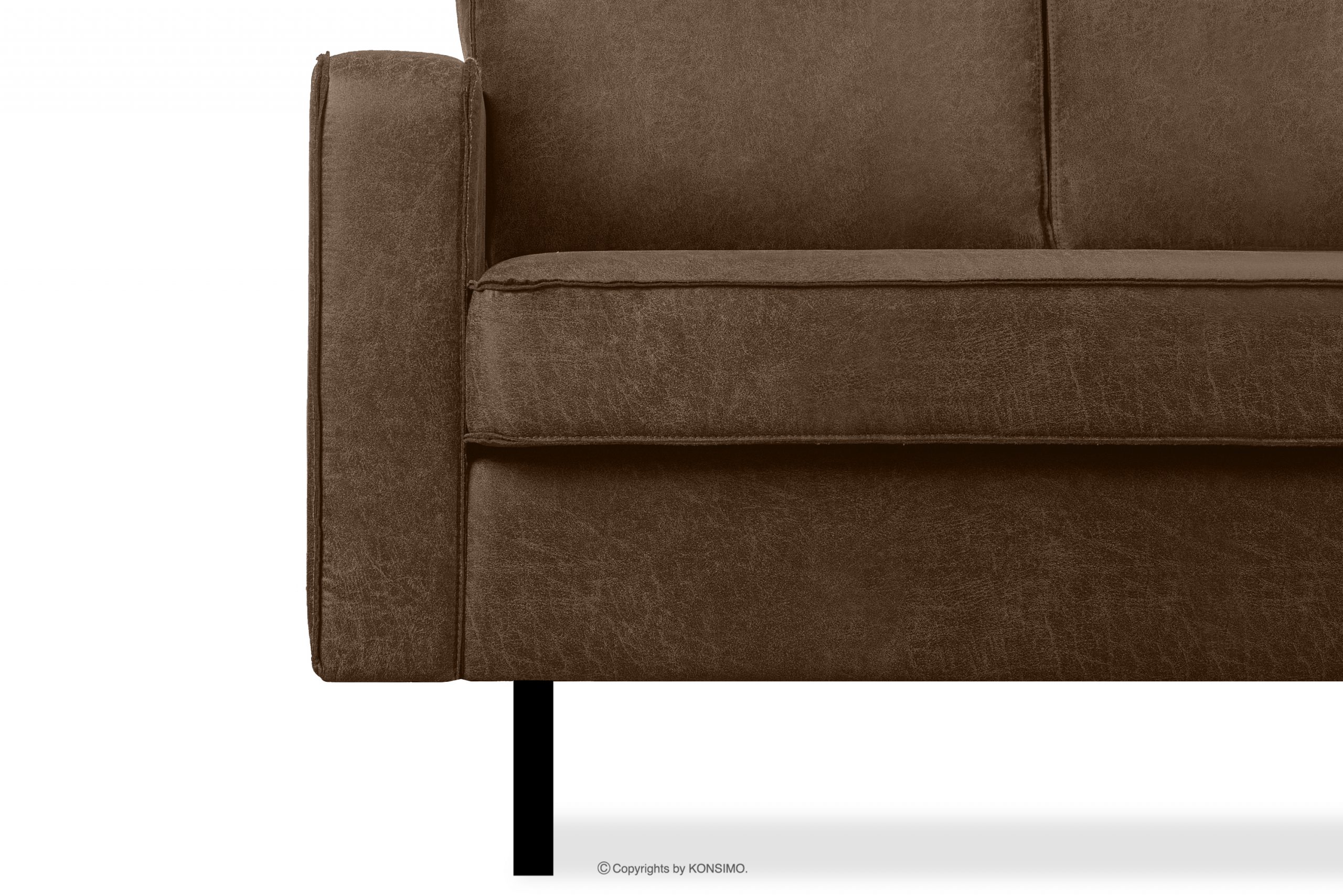 Dvojmiestna tmavohnedá pohovka v loftovom štýle je ideálna do veľkých aj malých miestností. Jej jedinečný dizajn a kvalitné spracovanie z nej robia kus nábytku, ktorý je nielen esteticky úžasný, ale poskytuje aj pohodlie a komfort. Pohovka má aj kovové nohy v čiernej farbe, ktoré dokonale ladia s loftovým a vintage štýlom.
