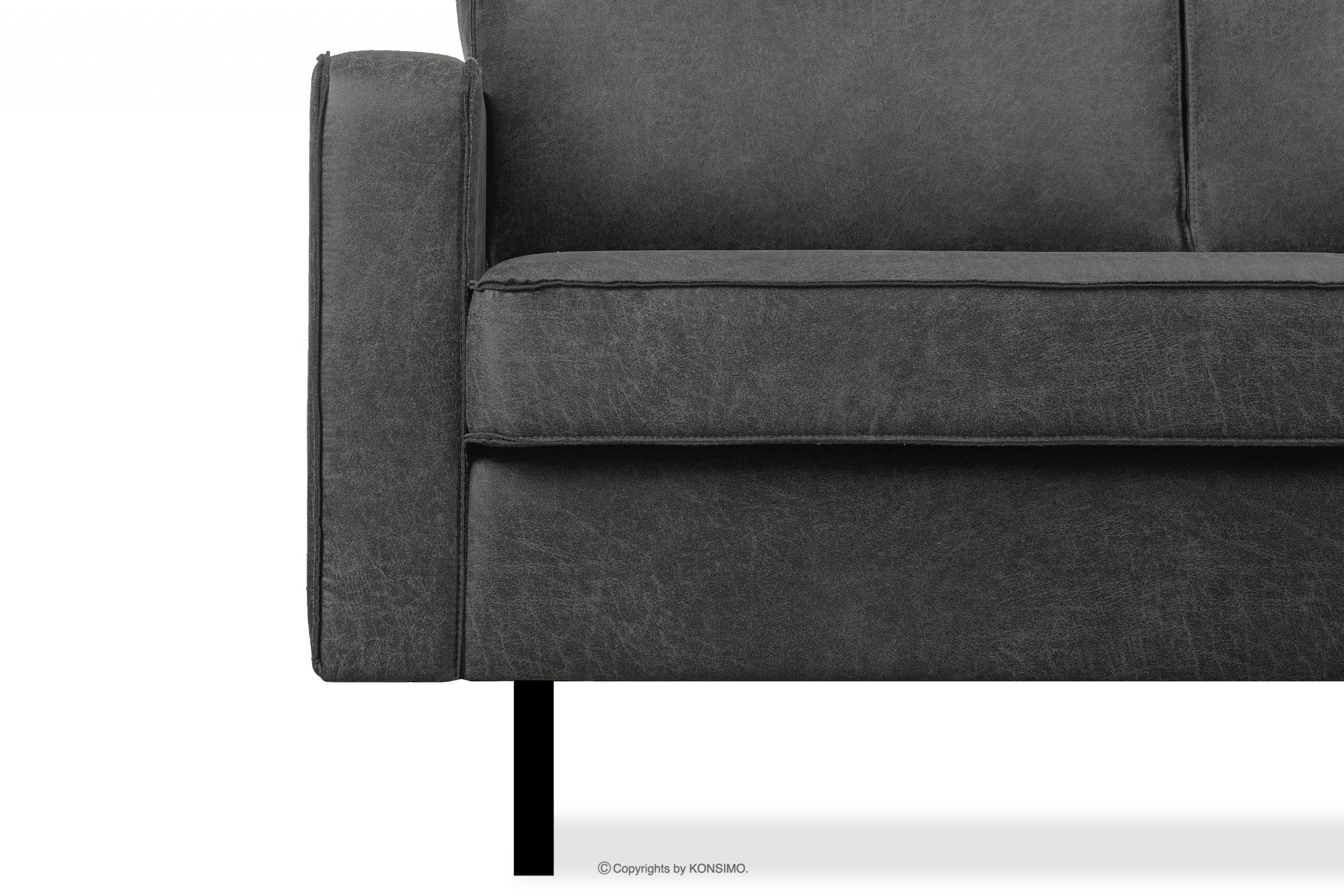 Trojmiestna pohovka v štýle loftu v tmavosivej farbe je ideálna do veľkých alebo malých miestností. Jej jedinečný dizajn a kvalitné spracovanie z nej robia kus nábytku, ktorý je nielen esteticky úžasný, ale poskytuje aj pohodlie a komfort. Pohovka má aj kovové nožičky v čiernej farbe, ktoré dokonale ladia s loftovým a vintage štýlom.