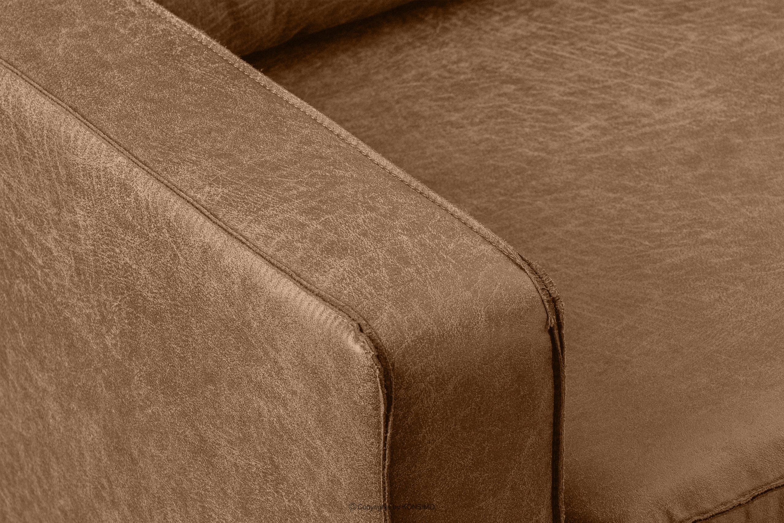 Kreslo v loftovom štýle je skvelou voľbou do obývačky. Je vyrobené z látky, ktorá pozostáva zo 70 % z regenerovanej kože a 30 % z polyesteru. Kombinácia týchto materiálov vytvára pevnú štruktúru, ako aj príjemný povrch na dotyk. Regenerovaná koža dodáva kreslu elegantný a štýlový vzhľad a umocňuje jeho loftovú estetiku. Prídavok polyesteru zvyšuje odolnosť látky a zabezpečuje dlhodobé používanie kresla. Vo vnútri sedáku je použitá vlnitá pružina, ktorá poskytuje vynikajúcu oporu tela počas sedenia. Táto inovatívna konštrukcia rovnomerne rozkladá hmotnosť, minimalizuje deformáciu sedadla a zabezpečuje pohodlie počas dlhodobého používania. Okrem toho sa v sedáku používa 5 cm hrubá pena HR 3032 a 9 cm hrubá pena T 2842. Tieto dve vrstvy peny zaručujú dokonalé prispôsobenie sa tvaru tela a dlhodobú odolnosť.