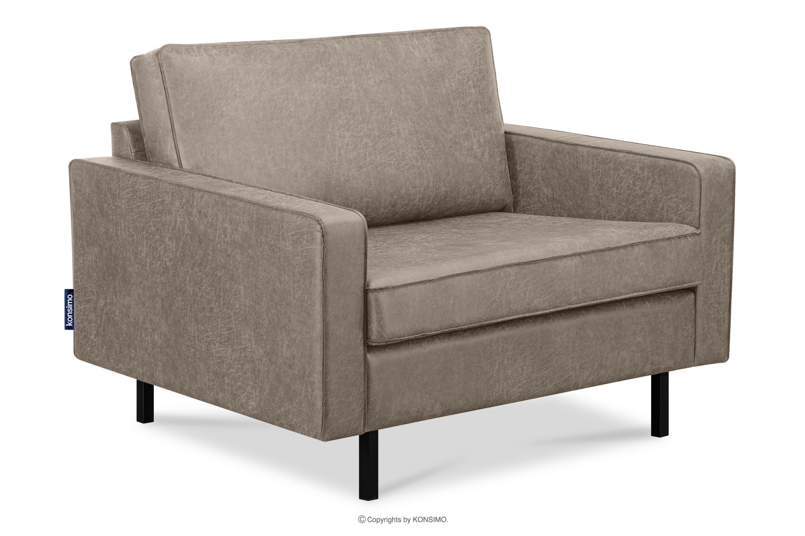 Široké kreslo v loftovom štýle vo svetlosivej farbe je ideálne do priestranných obývacích izieb aj menších miestností. je širšie ako štandardné kreslo, takže sa na ňom dá pohodlne sedieť. Vďaka svojmu jedinečnému dizajnu a starostlivému spracovaniu je tento kus nábytku nielen ohromujúcim vzhľadom, ale aj zárukou pohodlia a komfortu. Kovové nohy v čiernej farbe dokonale ladia s loftovou a vintage estetikou a dodávajú kreslu charakter.