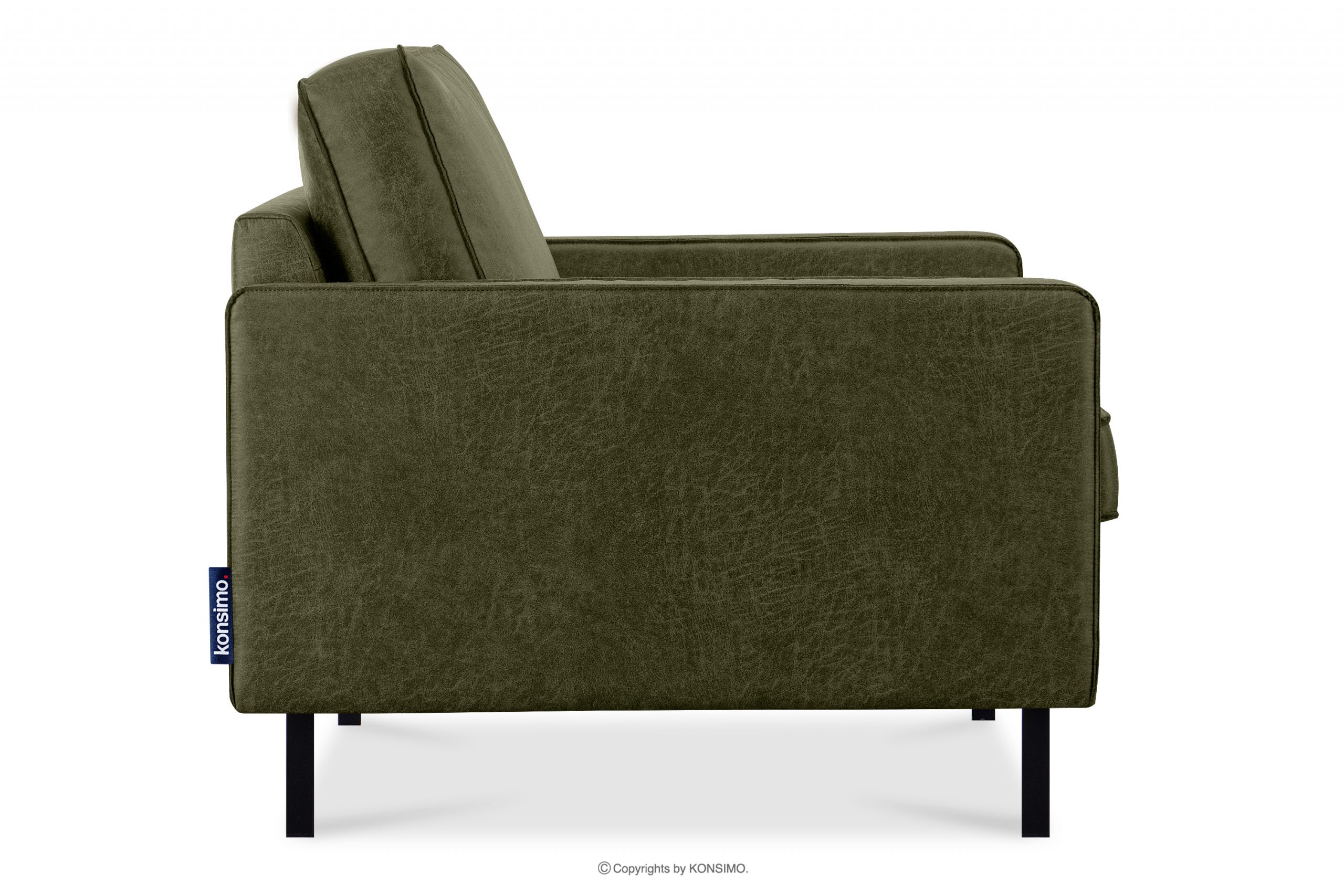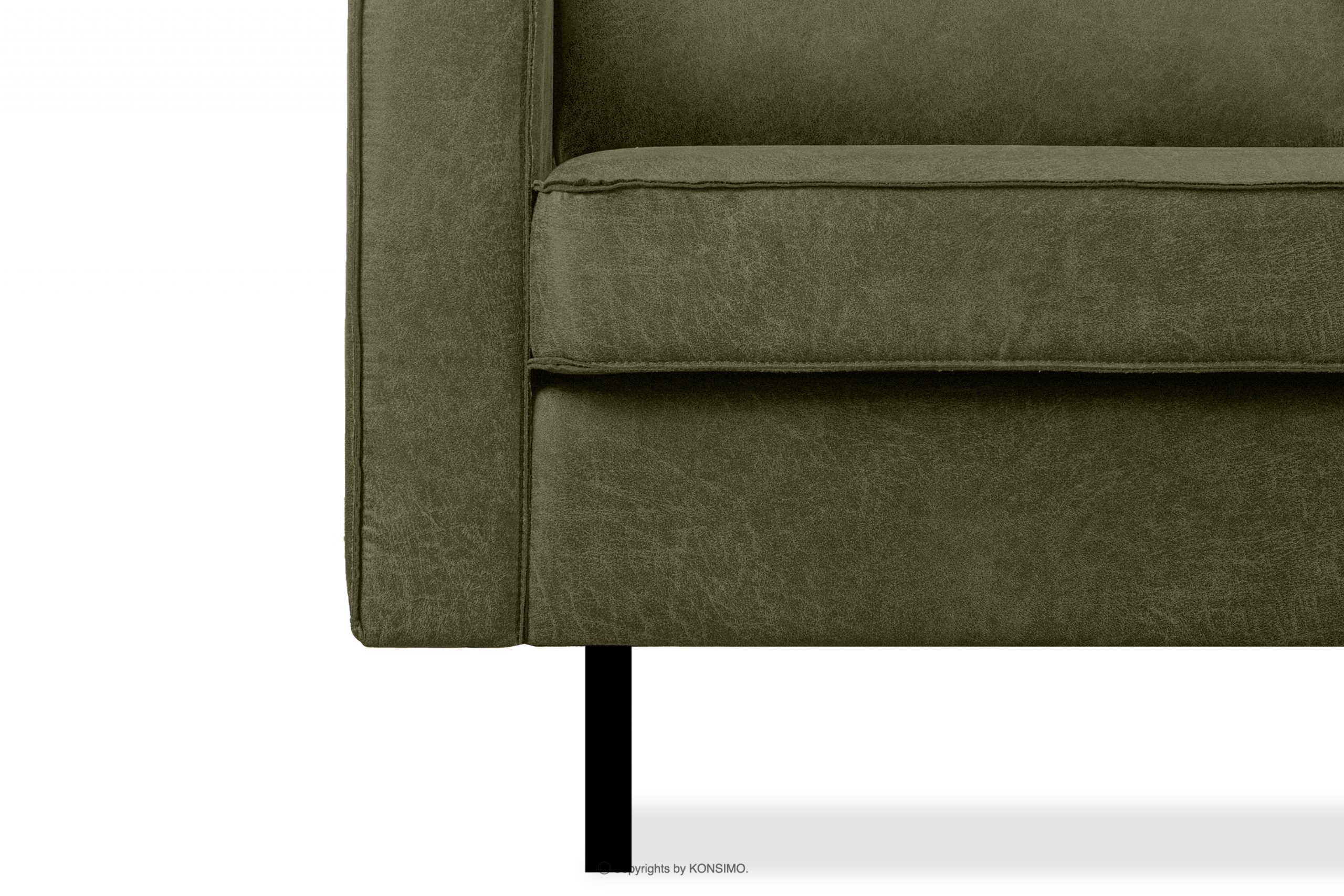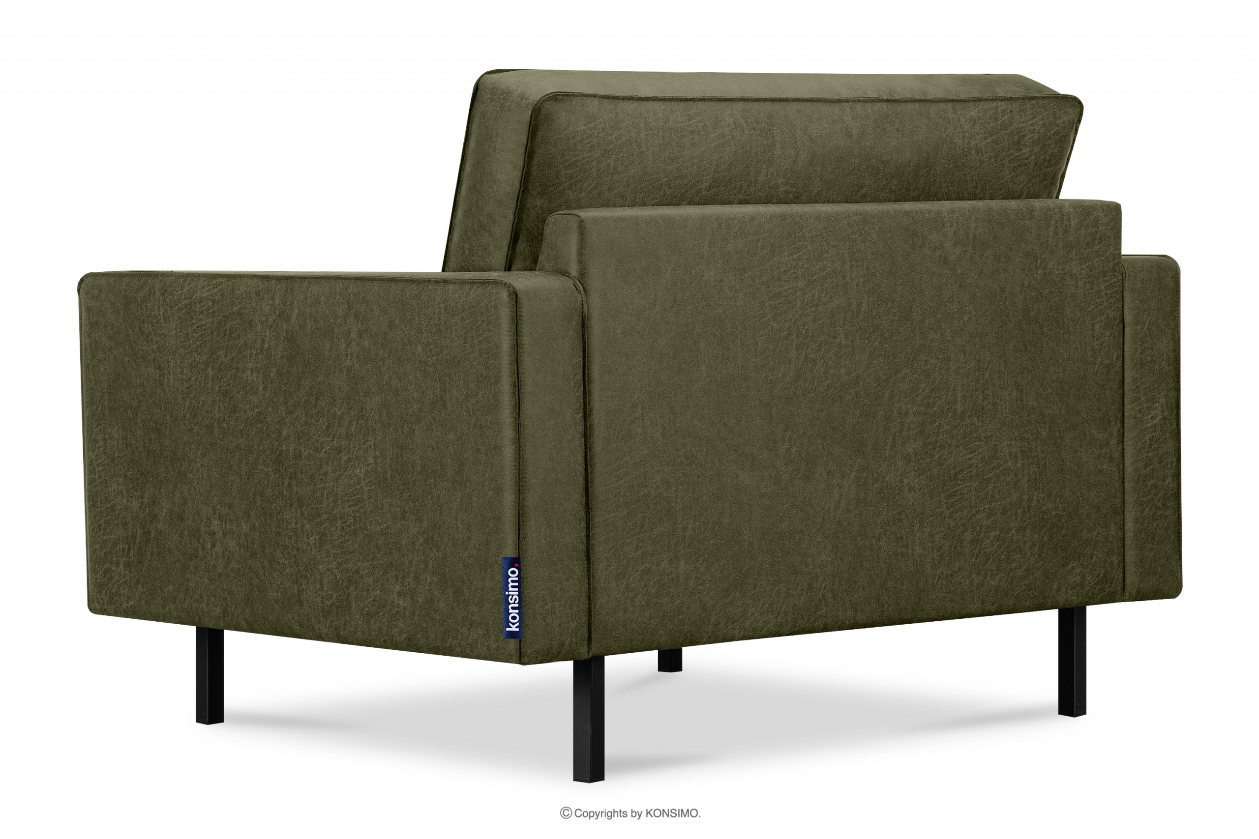 Široké zelené kreslo v loftovom štýle je ideálne do priestranných obývacích izieb aj menších priestorov. je širšie ako štandardné kreslo, takže sa v ňom pohodlne sedí. Vďaka svojmu jedinečnému dizajnu a starostlivému spracovaniu je tento kus nábytku nielen ohromujúcim vzhľadom, ale aj zárukou pohodlia a komfortu. Kovové nohy v čiernej farbe dokonale ladia s loftovou a vintage estetikou a dodávajú kreslu charakter.