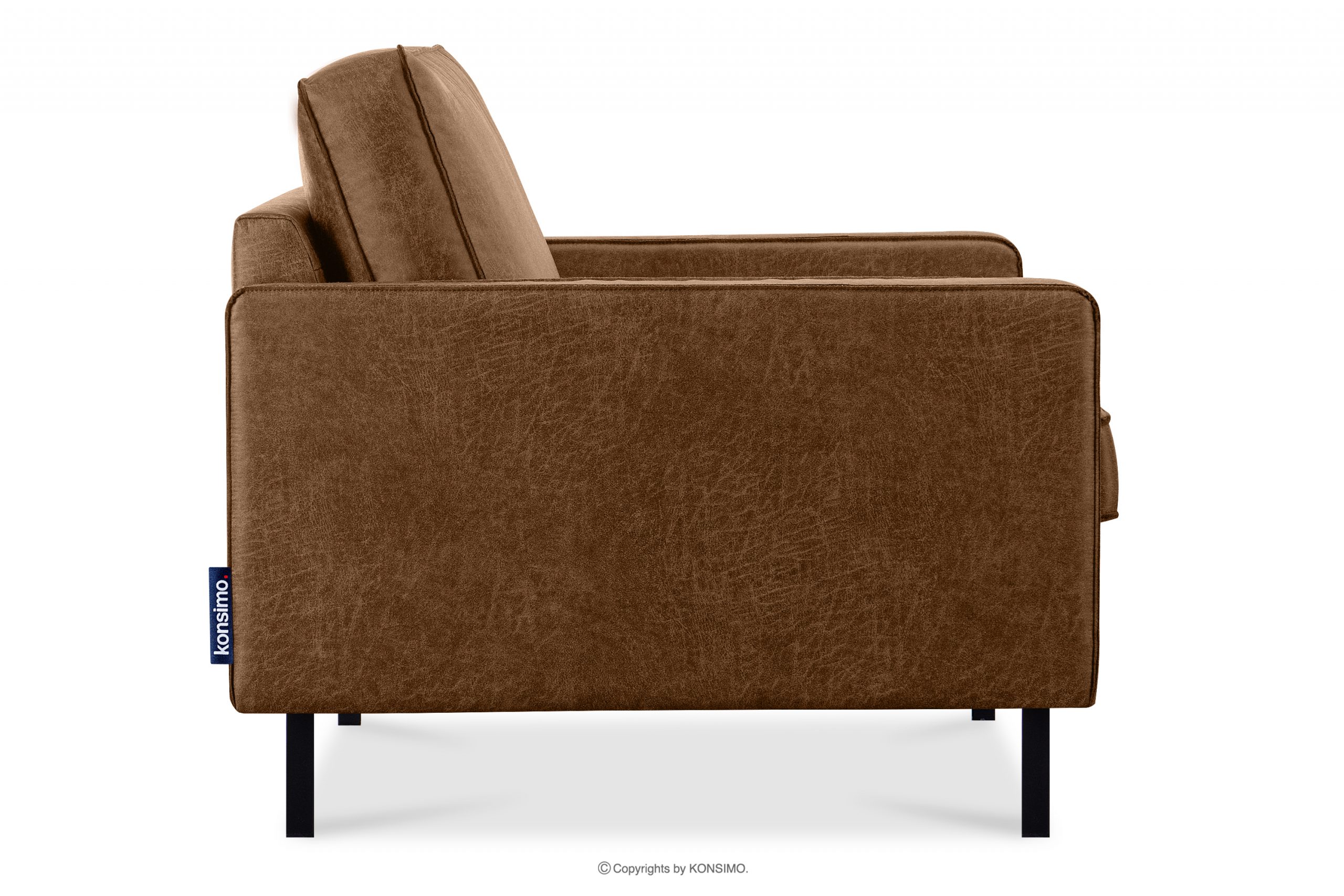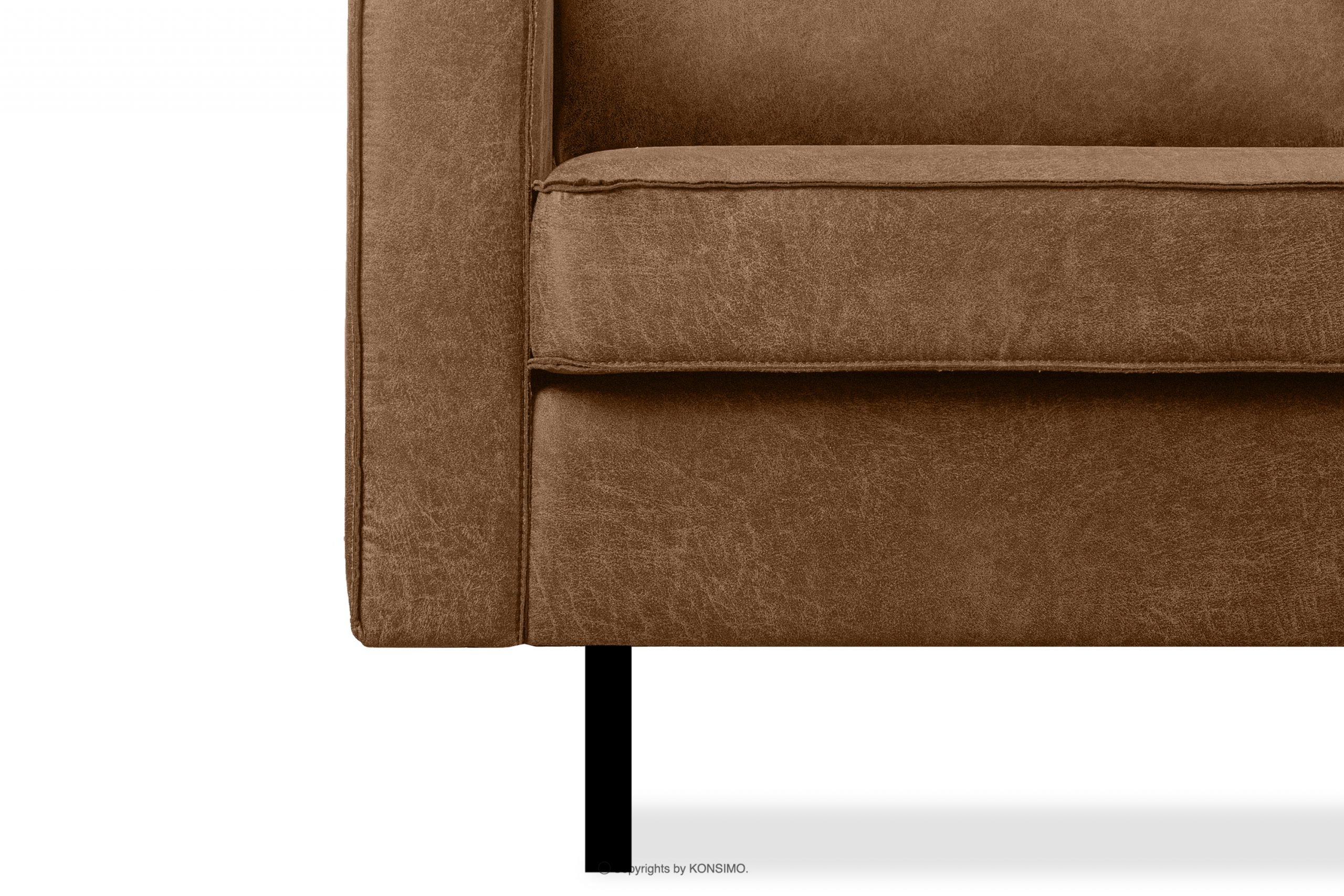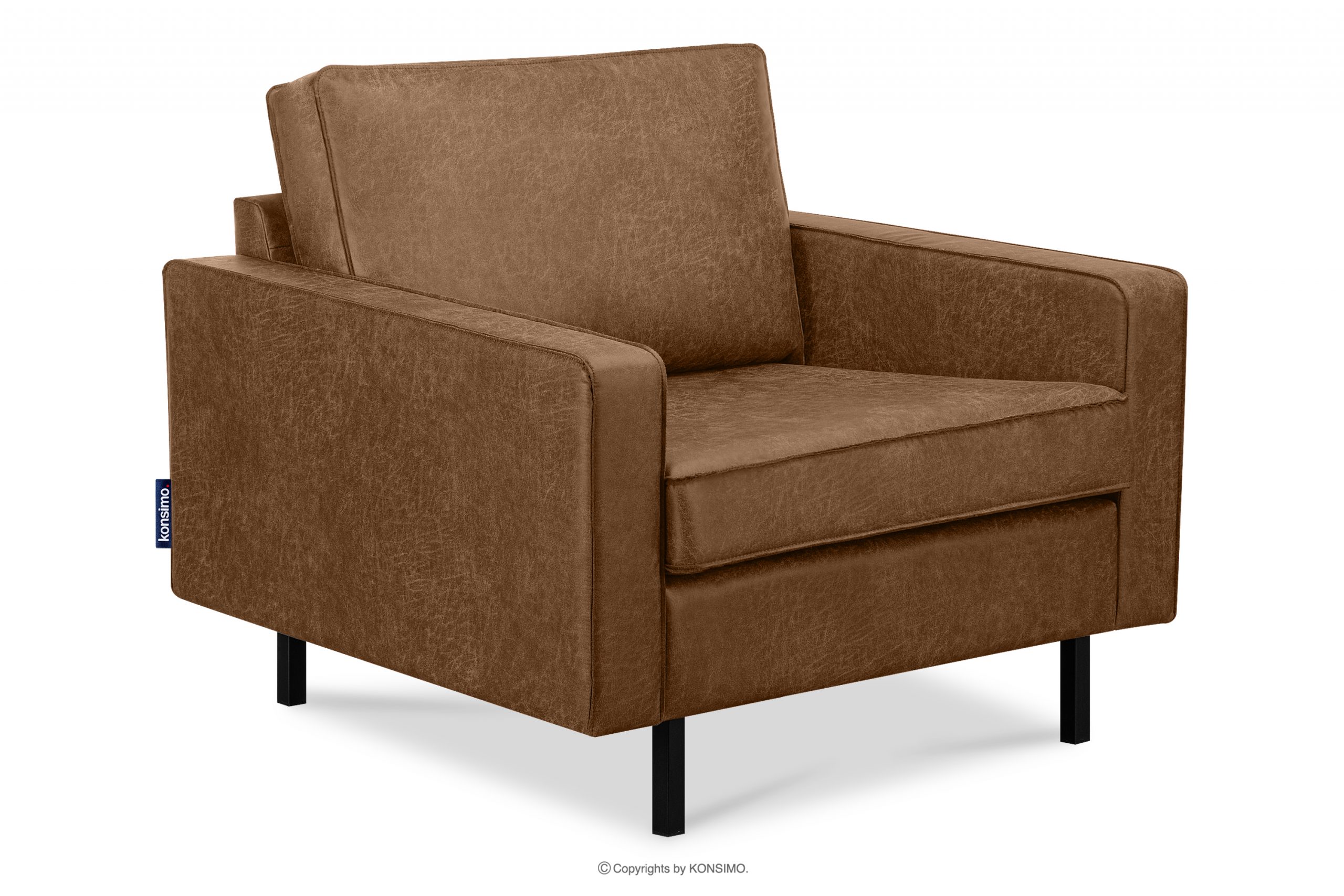Hnedé kreslo Loft je ideálnym riešením pre priestranné obývacie izby a menšie priestory. Vďaka svojmu jedinečnému dizajnu a starostlivému spracovaniu tento kus nábytku zaujme nielen svojím vzhľadom, ale zaručuje aj pohodlie a komfort. Kovové nohy v čiernej farbe dokonale ladia s estetikou loftu a vintage a dodávajú kreslu charakter. Bez ohľadu na veľkosť vášho interiéru sa toto kreslo stane mimoriadne dôležitým prvkom zariadenia vďaka svojej funkčnosti, pohodliu a originálnemu dizajnu.