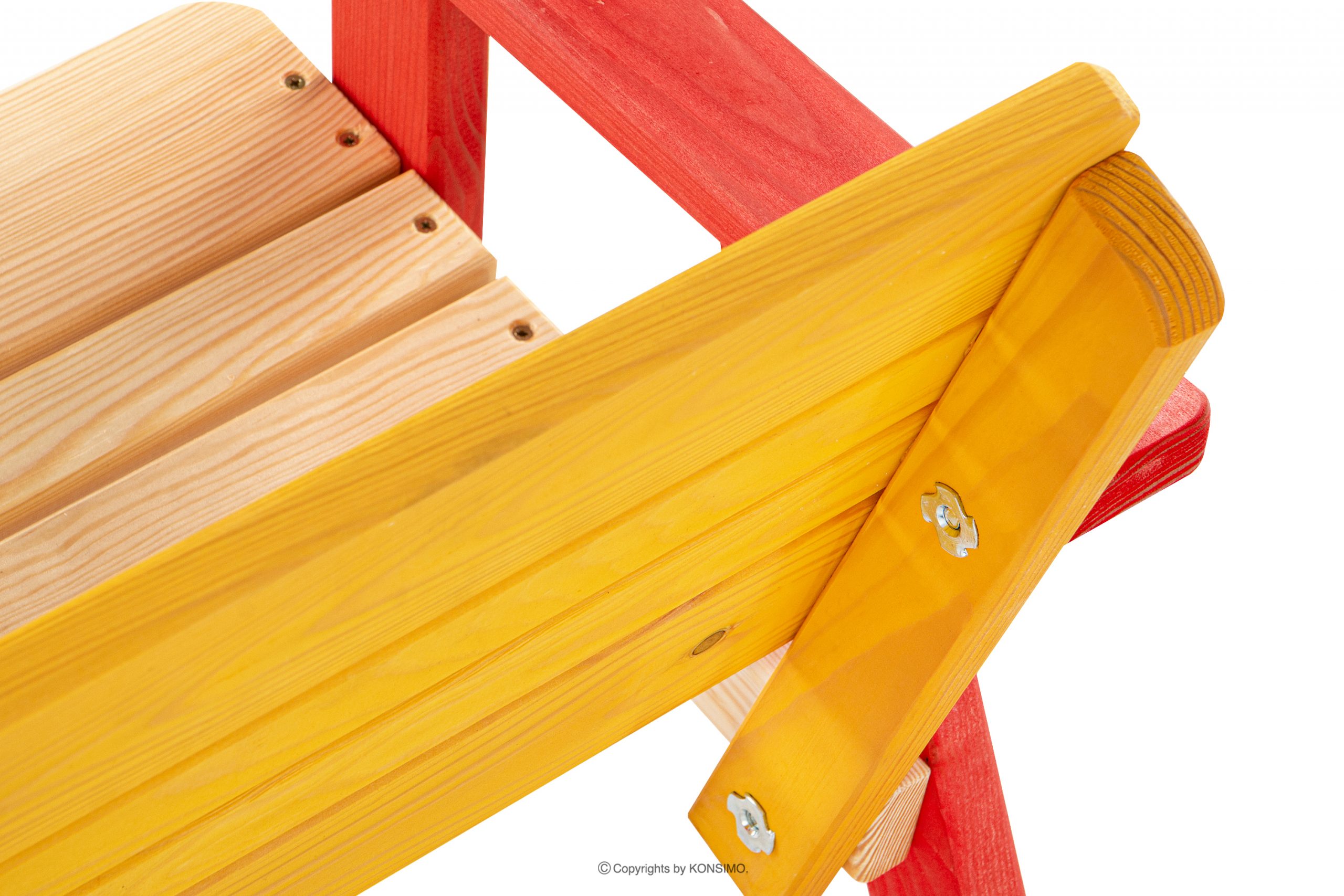 Objavte našu pestrofarebnú detskú záhradnú súpravu, ktorá úžasne spája funkčnosť, odolnosť a jedinečné farby! Tento nábytok je vyrobený z kvalitného borovicového dreva a vďaka starostlivému procesu impregnácie má vynikajúcu odolnosť voči poveternostným vplyvom. To znamená, že vaše deti sa z nich môžu tešiť dlhé roky, a to aj pri intenzívnom používaní vonku.