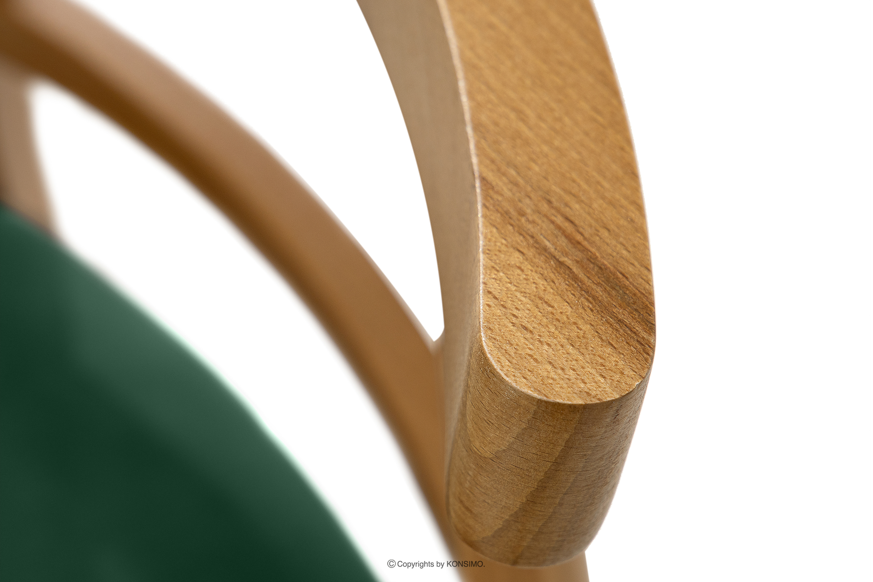 Kreslo v štýle vintage tmavozelený velúr svetlý dub nielenže vyžaruje jedinečný štýl, ale spĺňa aj najvyššie štandardy pohodlia a funkčnosti. Nohy kresla sú vyrobené z masívneho bukového dreva, čo mu dodáva pevnosť a jemný šarm. Drevo sa dokonale spája s klasickým vintage štýlom a vytvára výrobok, ktorý sa stane praktickým kusom nábytku.