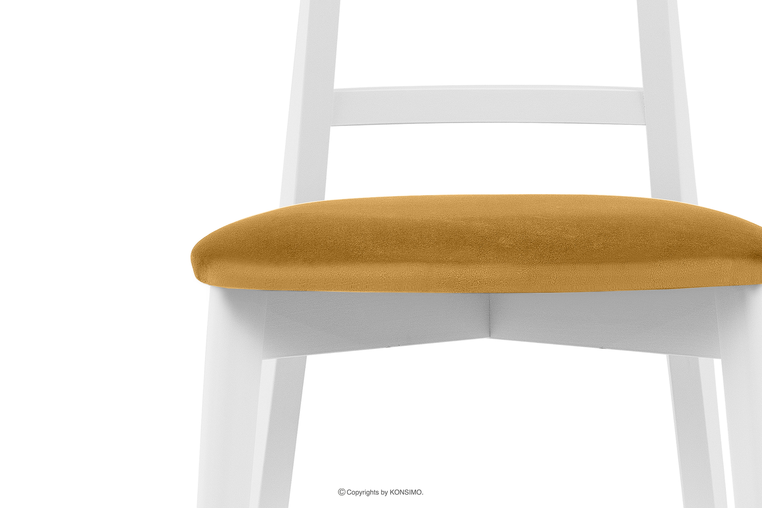 Biele vintage žlté velúrové kreslo nielenže vyžaruje jedinečný štýl, ale spĺňa aj najvyššie štandardy pohodlia a funkčnosti. Nohy kresla sú vyrobené z masívneho bukového dreva, čo mu dodáva pevnosť a jemný šarm. Drevo sa dokonale spája s klasickým vintage štýlom a vytvára výrobok, ktorý sa stane praktickým kusom nábytku. Kreslo má sedák s povrchovou úpravou z mäkkého velúru, ktorý mu dodáva nielen mäkkosť, ale aj luxusný vzhľad.