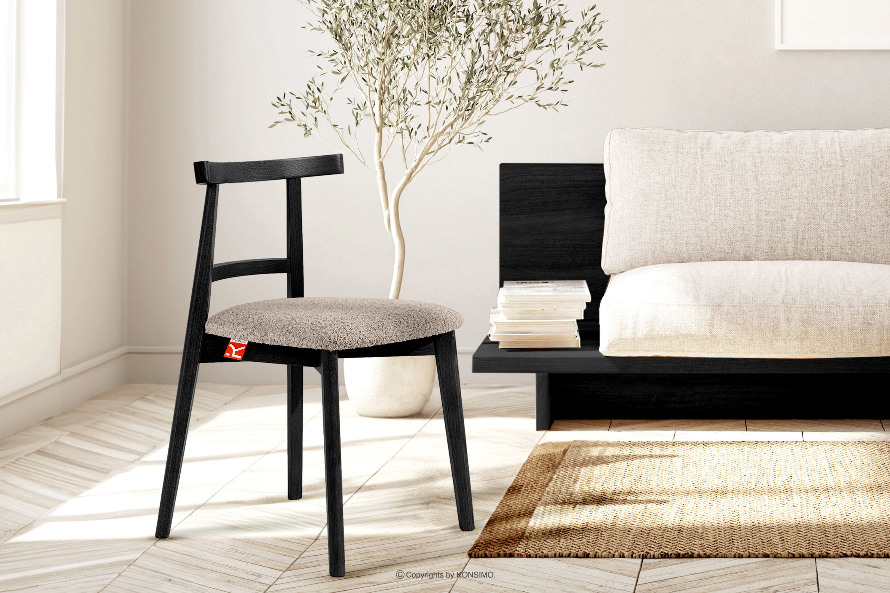 LILIO Objav celú kolekciu Vintage boucle stolička tmavá béžová/čierna- farba tmavá béžová/čierna
