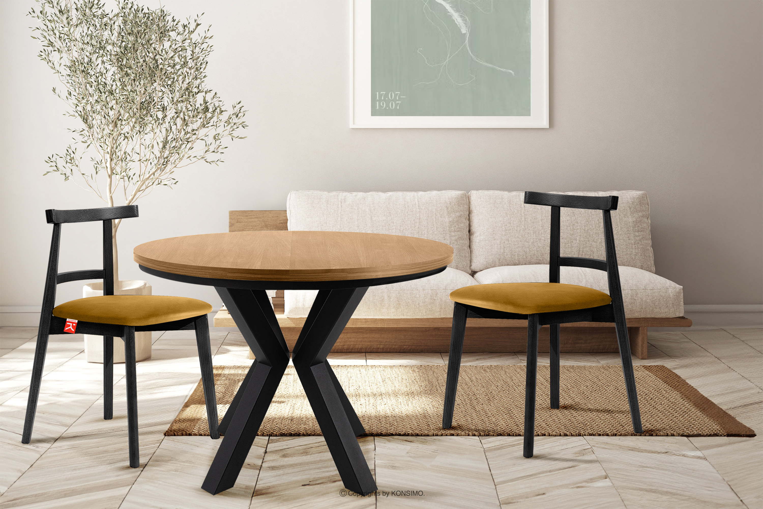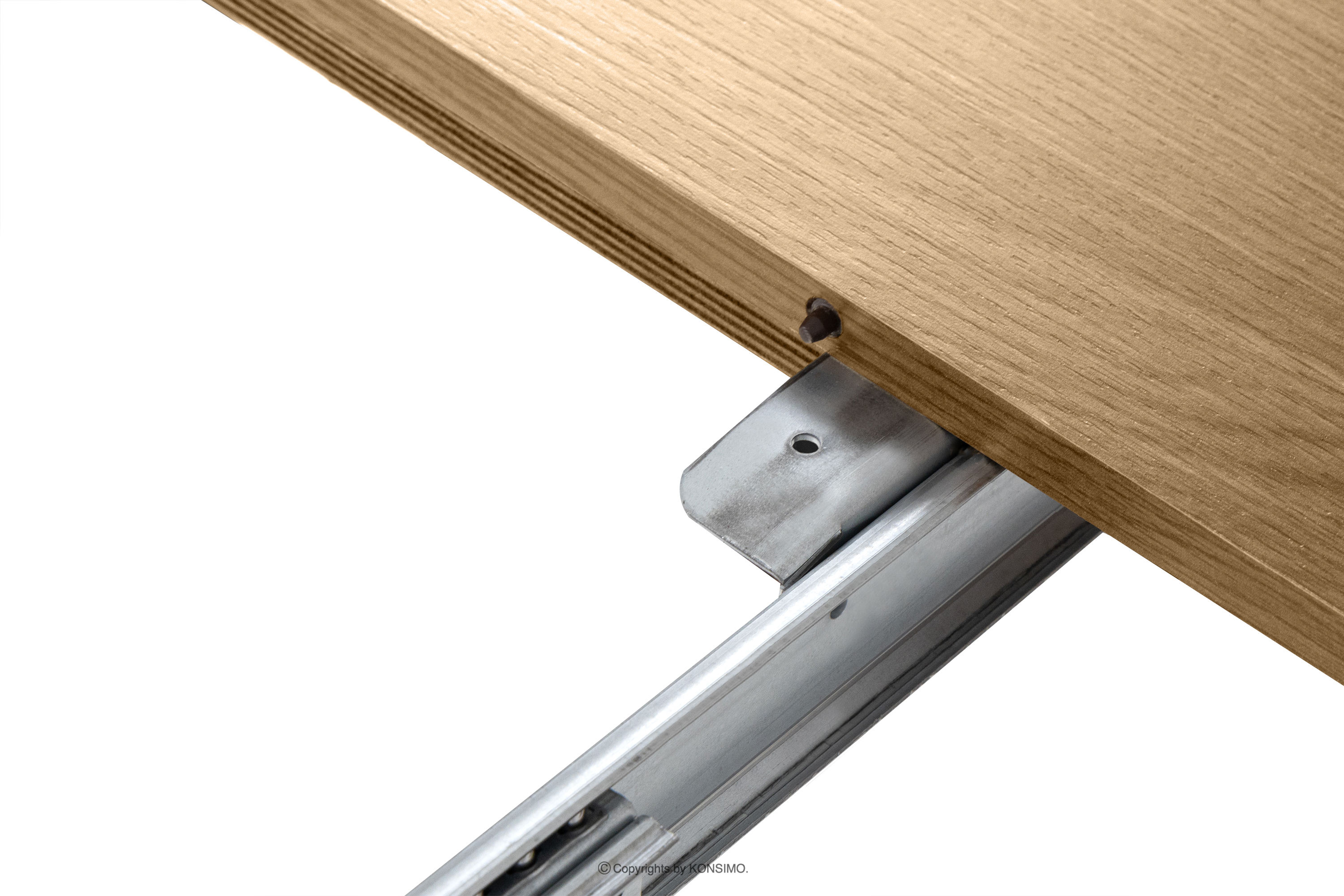 Okrúhly rozťahovací stôl 100-140 zlatý dub poteší svojím minimalistickým dizajnom, ale zároveň zabezpečí funkčnosť na najvyššej úrovni. Nohy stola vyrobené z pevného kovu s čiernou práškovou farbou mu dodávajú nielen industriálny dojem, ale zabezpečujú aj odolnosť a stabilitu. Doska stola, vyrobená z laminovanej dosky najvyššej kvality, podčiarkuje estetiku a zároveň zaručuje jednoduché čistenie.