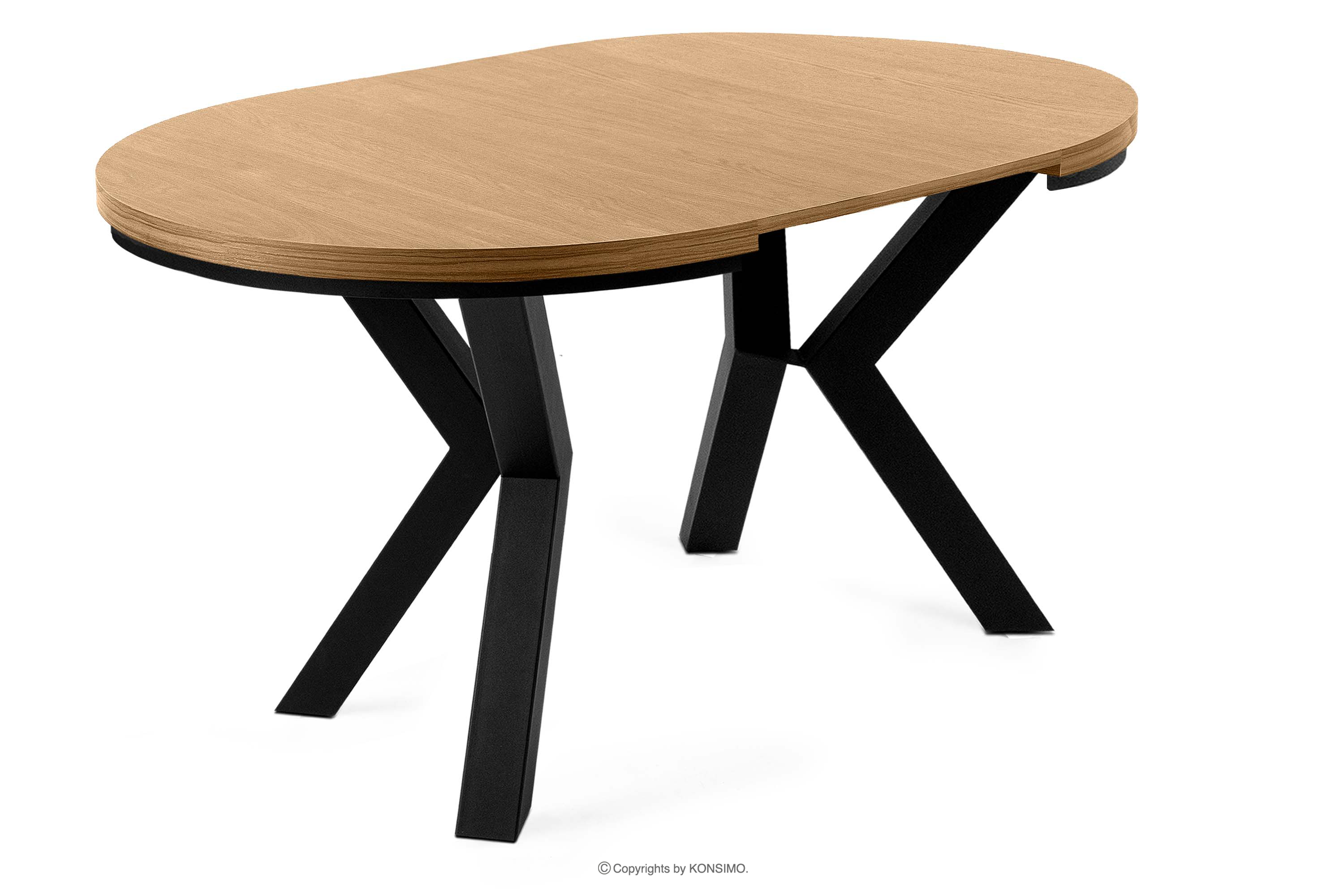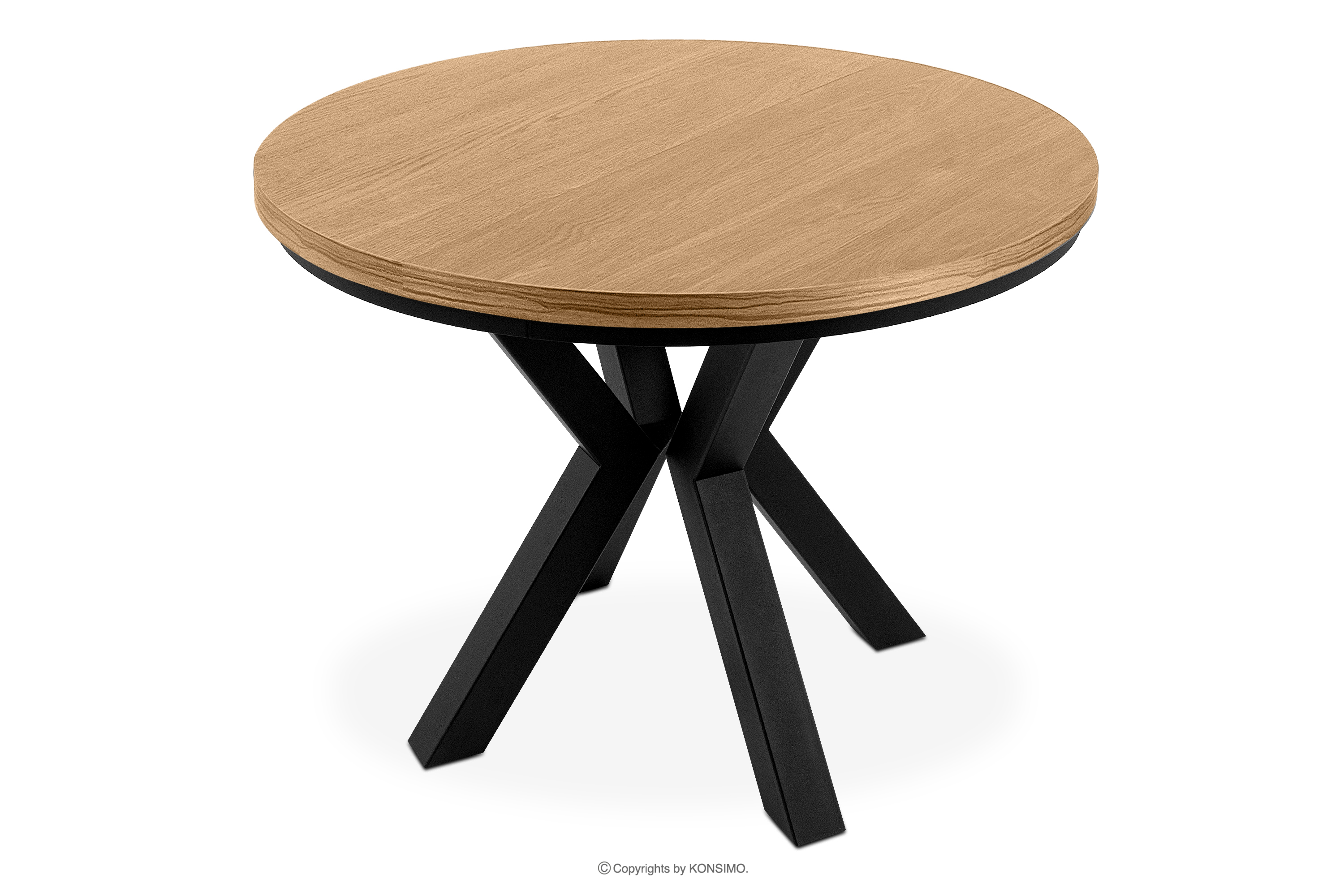 Okrúhly rozťahovací stôl 100-180 zlatý dub poteší svojím minimalistickým dizajnom, ale zároveň zabezpečí funkčnosť na najvyššej úrovni. Nohy stola vyrobené z pevného kovu s čiernou práškovou farbou mu dodávajú nielen industriálny dojem, ale zabezpečujú aj odolnosť a stabilitu. Doska stola, vyrobená z laminovanej dosky najvyššej kvality, podčiarkuje estetiku a zároveň zaručuje jednoduché čistenie.