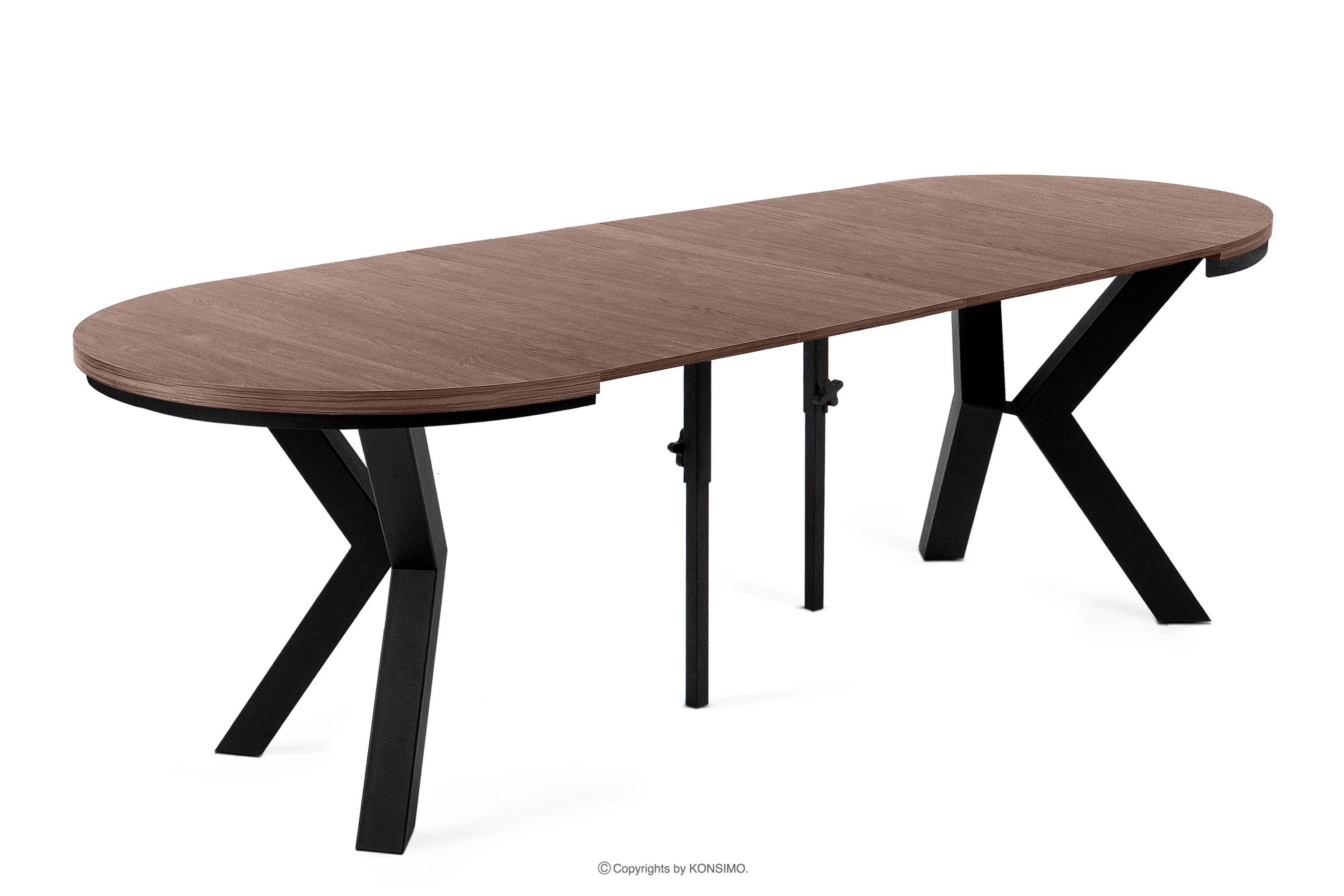 Okrúhly rozkladací stôl 100-260 medium z orechového dreva poteší svojím minimalistickým dizajnom, ale zároveň zabezpečí funkčnosť na najvyššej úrovni. Nohy stola vyrobené z pevného kovu s čiernou práškovou povrchovou úpravou mu dodávajú nielen industriálny dojem, ale zabezpečujú aj odolnosť a stabilitu. Doska stola, vyrobená z laminovanej dosky najvyššej kvality, podčiarkuje estetiku a zároveň zaručuje jednoduché čistenie.
