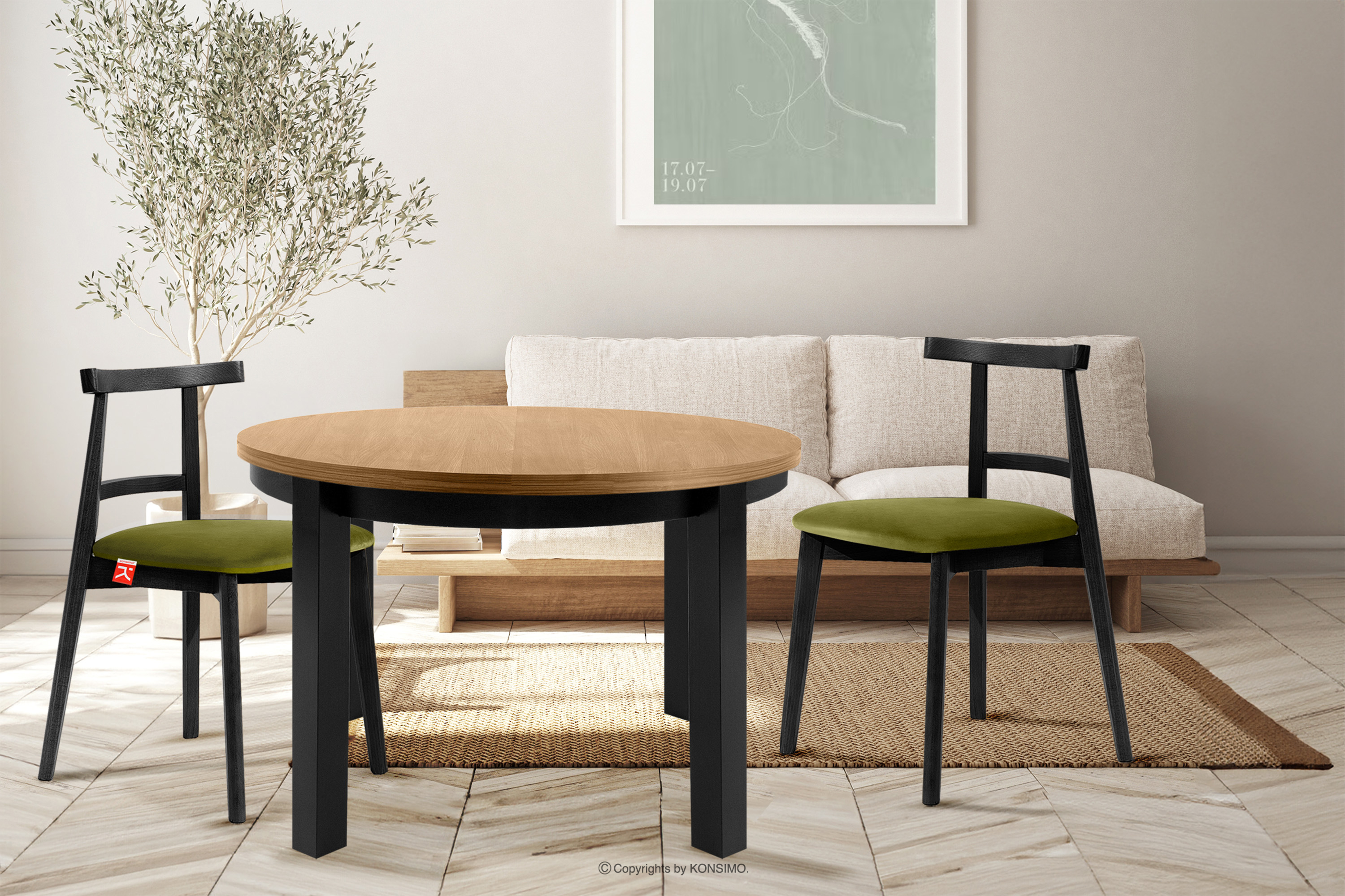 Rozkladací okrúhly stôl 100-180 dub zlatý z bukového dreva sa určite stane ústredným bodom vašej jedálne alebo obývačky. Jeho jedinečný dizajn a funkčnosť robia z tohto elegantného kusu nábytku skutočný skvost pre milovníkov moderného dizajnu a praktických riešení. Masívne nohy stola boli precízne vyrobené z odolného bukového dreva, ktoré mu nielenže dodáva jedinečný charakter, ale zaručuje aj odolnosť a stabilitu konštrukcie.
