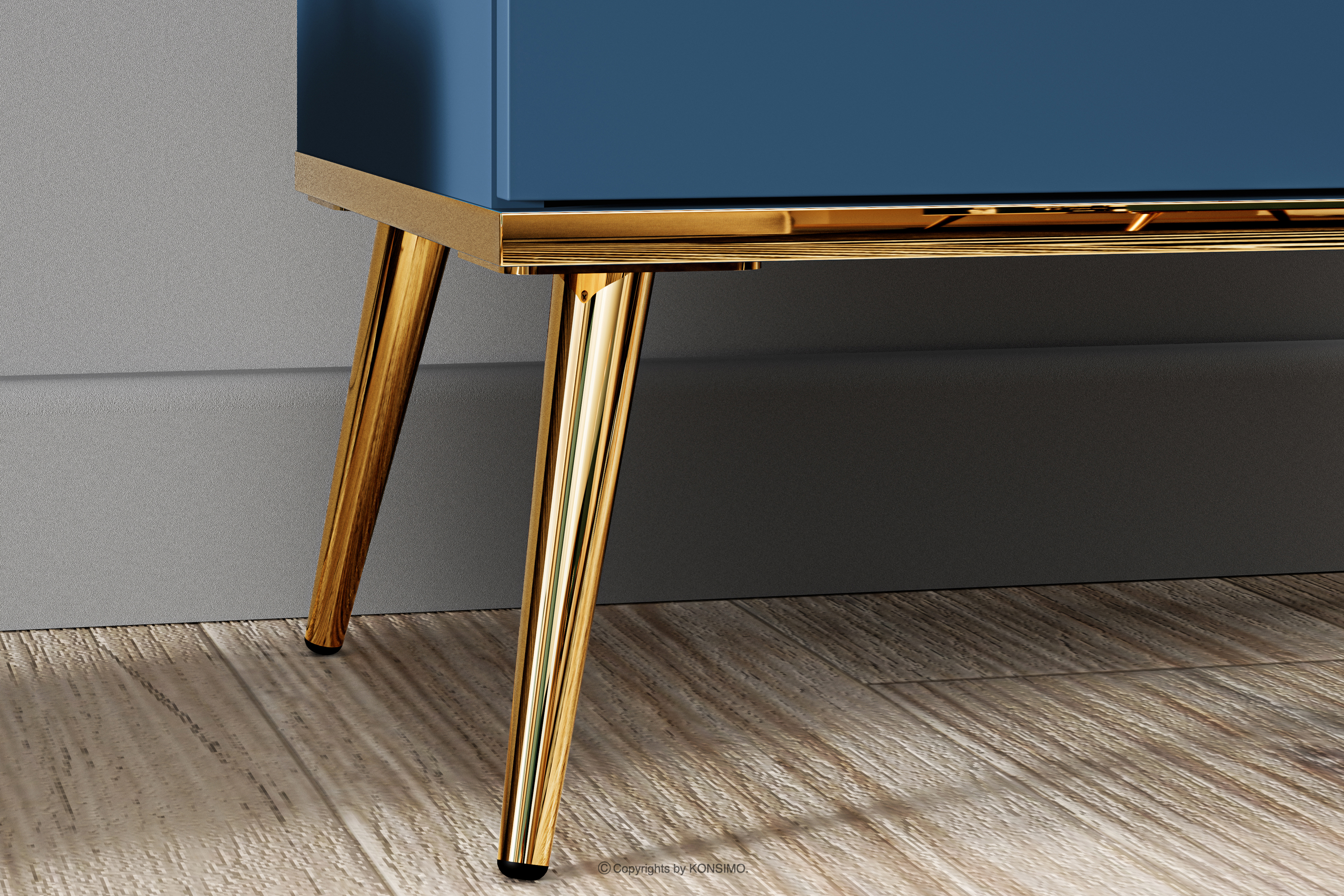 Námornícka modrá skrinka na zlatých nohách