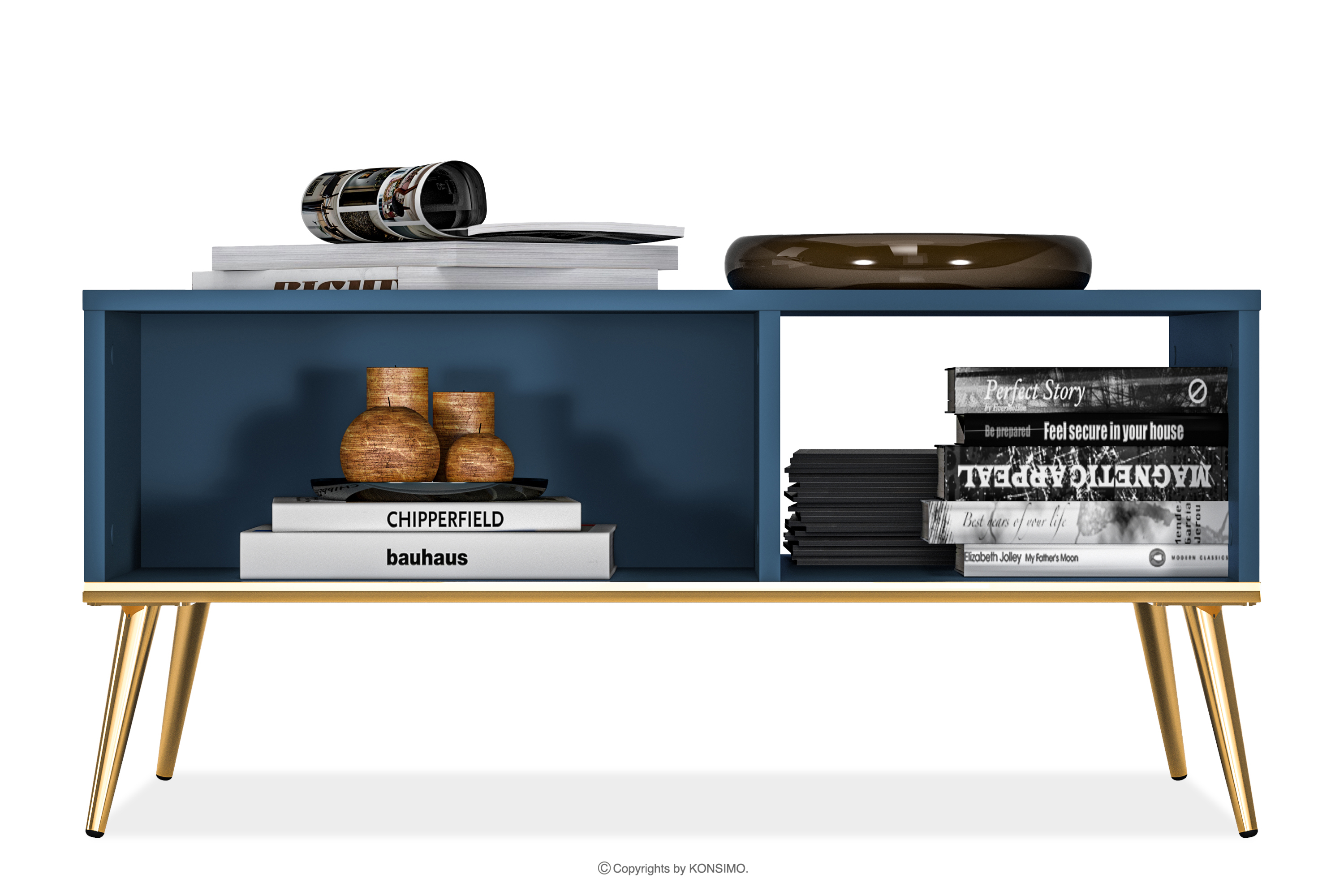 ARICIA Objav celú kolekciu Námornícky modrý konferenčný stolík na vysokých zlatých nohách- farba námornícka modrá