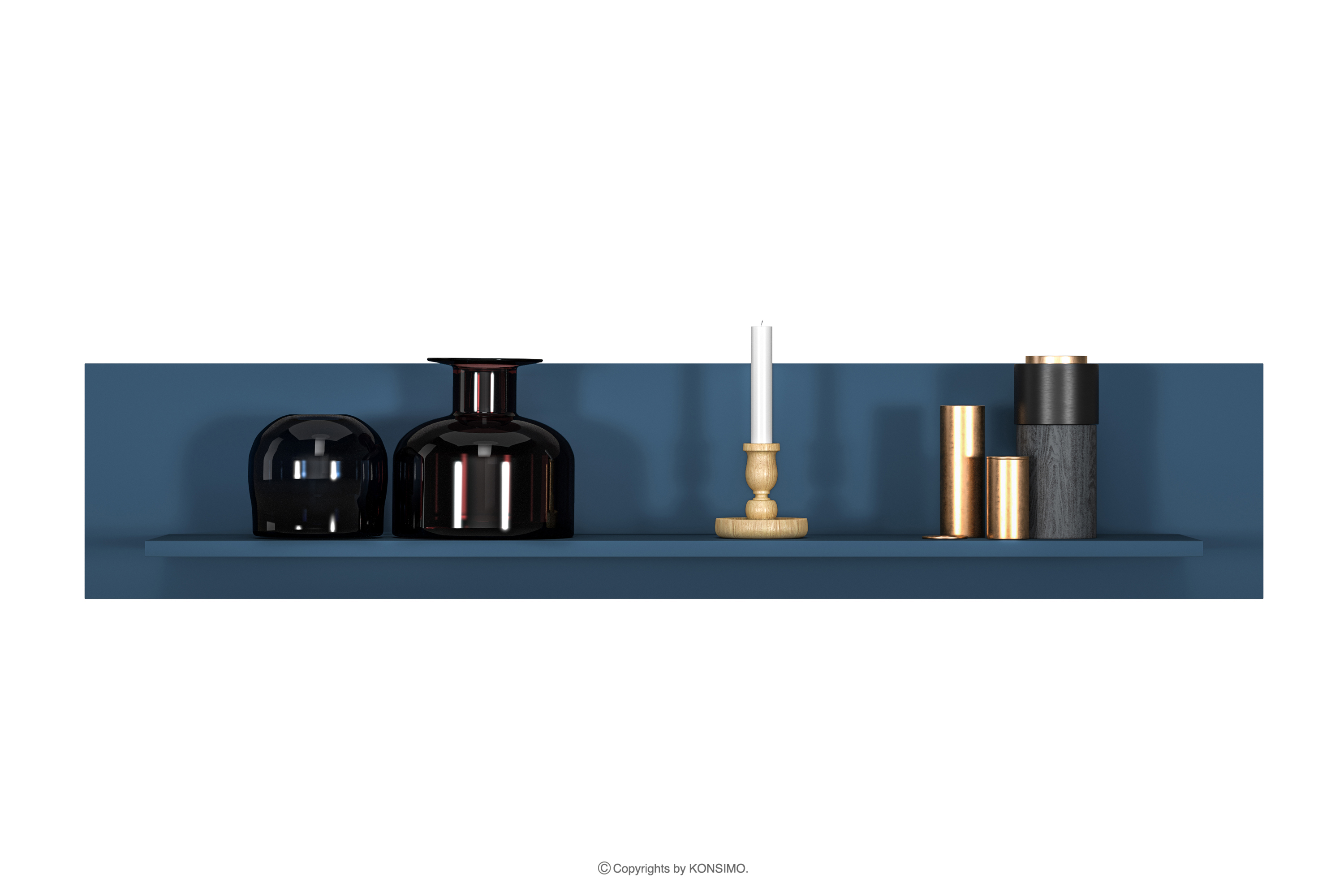 Závesná polica v námorníckej modrej farbe vnesie do vášho interiéru nádych elegancie. Korpus z laminovaných dosiek je určený pre milovníkov elegantného štýlu aj robustnosti a poskytuje pevný základ pre každú miestnosť. A to nie je všetko! Hrana z ABS je nielen elegantným detailom, ale zaručuje aj odolnosť voči poškodeniu a vlhkosti, vďaka čomu je nábytok nielen efektný, ale aj ľahko sa čistí.