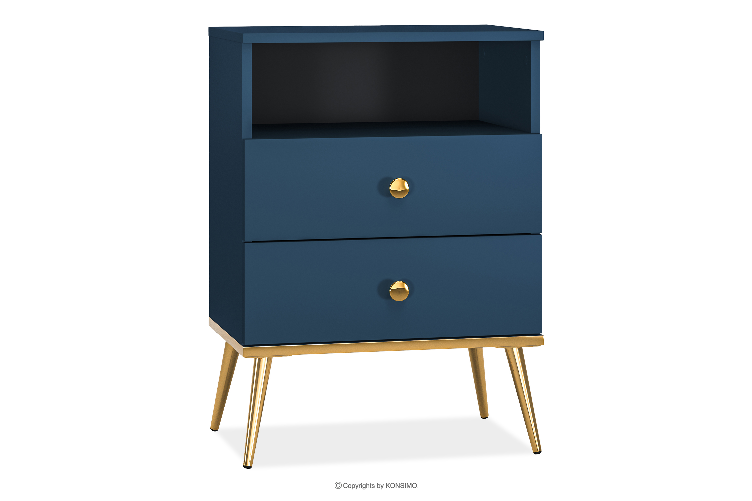 Nočný stolík v námorníckej modrej farbe na vysokých nohách ARICIA - farba námornícka modrá