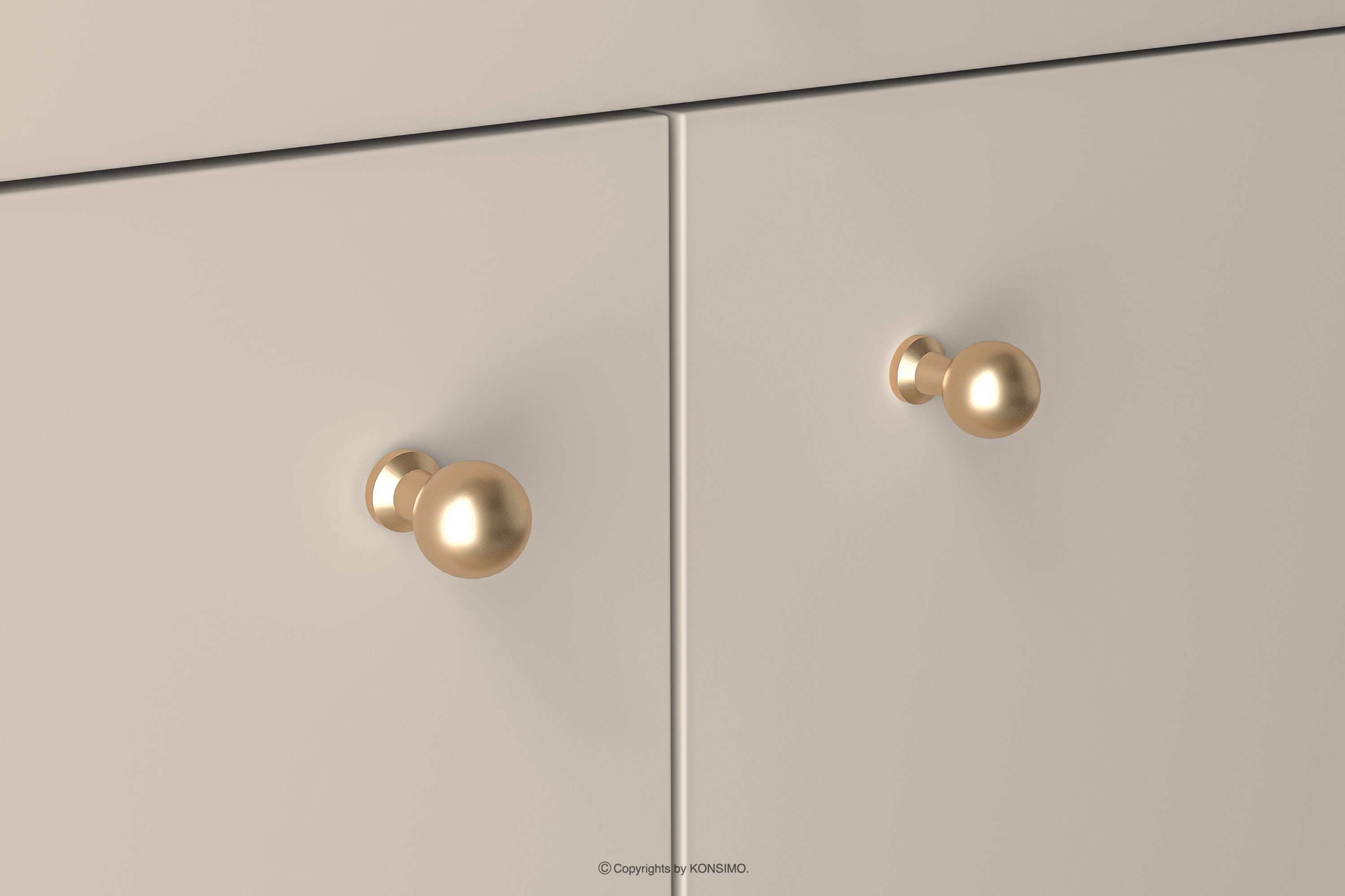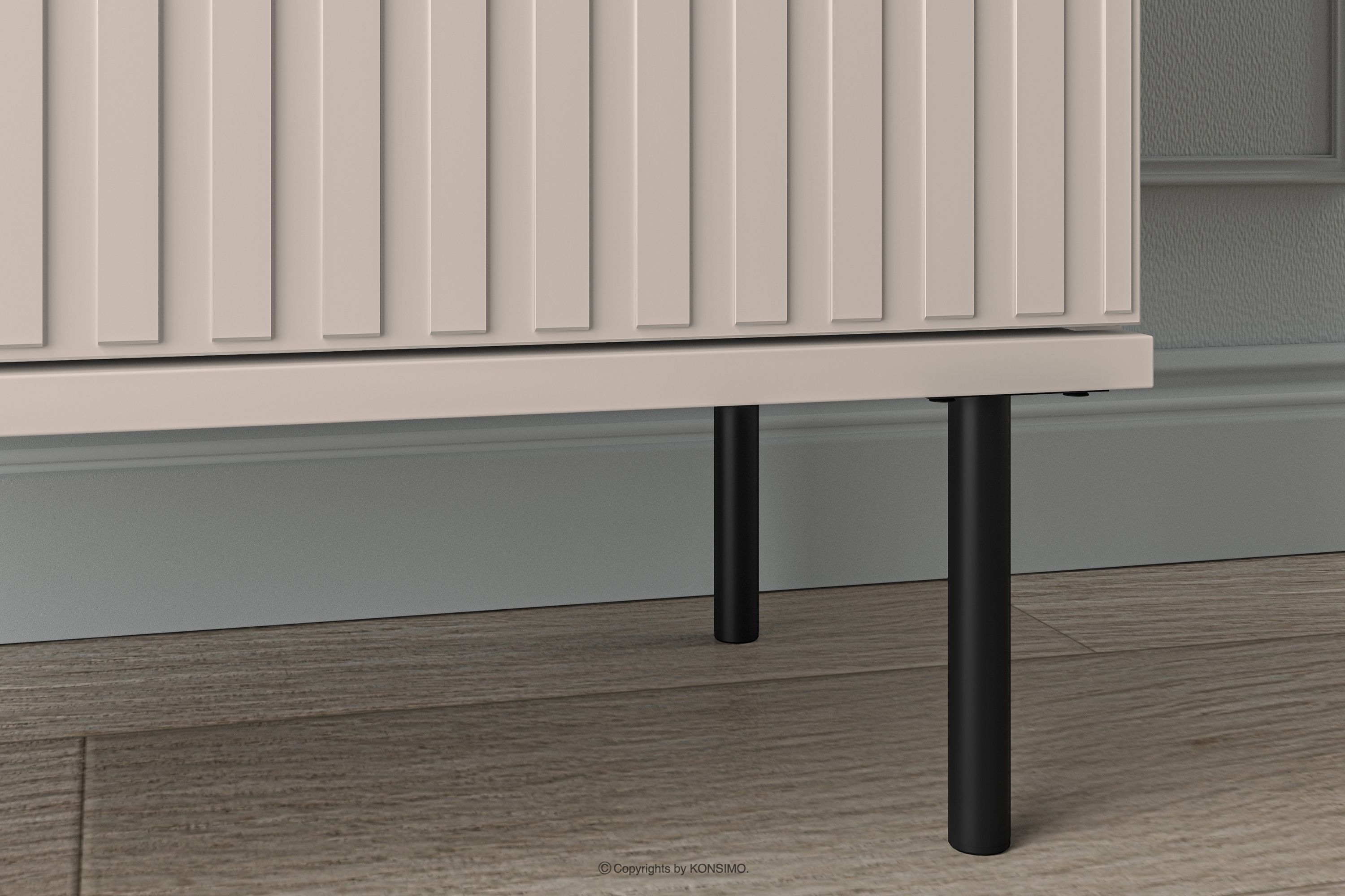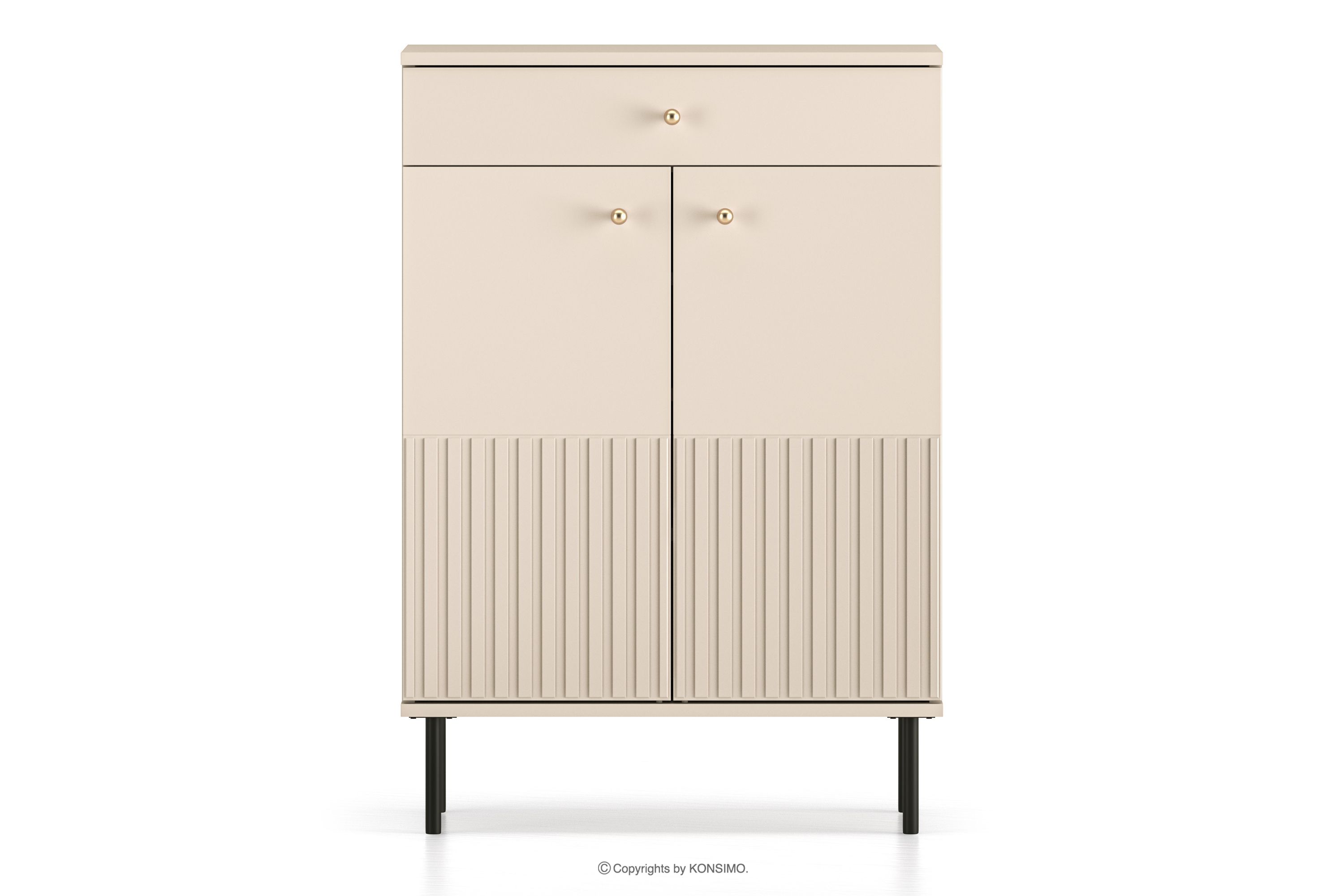Rýhovaný botník v krémovej farbe vnesie do vášho interiéru jemný nádych elegancie. Korpus z laminovanej dosky/MDF, ktorý je určený pre milovníkov elegantného štýlu a funkčnosti, poskytuje pevný základ nábytku. Čierne kovové nožičky a zlaté úchyty dodávajú nábytku jemnú eleganciu. To však nie je všetko! ABS hrany sú nielen elegantným detailom, ale aj zárukou odolnosti voči poškodeniu a vlhkosti, vďaka čomu nábytok nielen zaujme vzhľadom, ale sa aj ľahko udržiava v čistote.