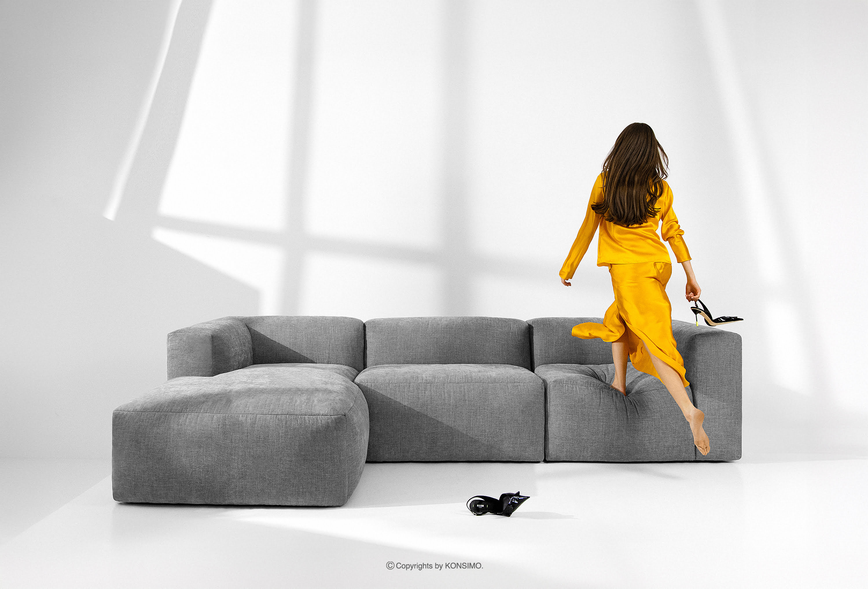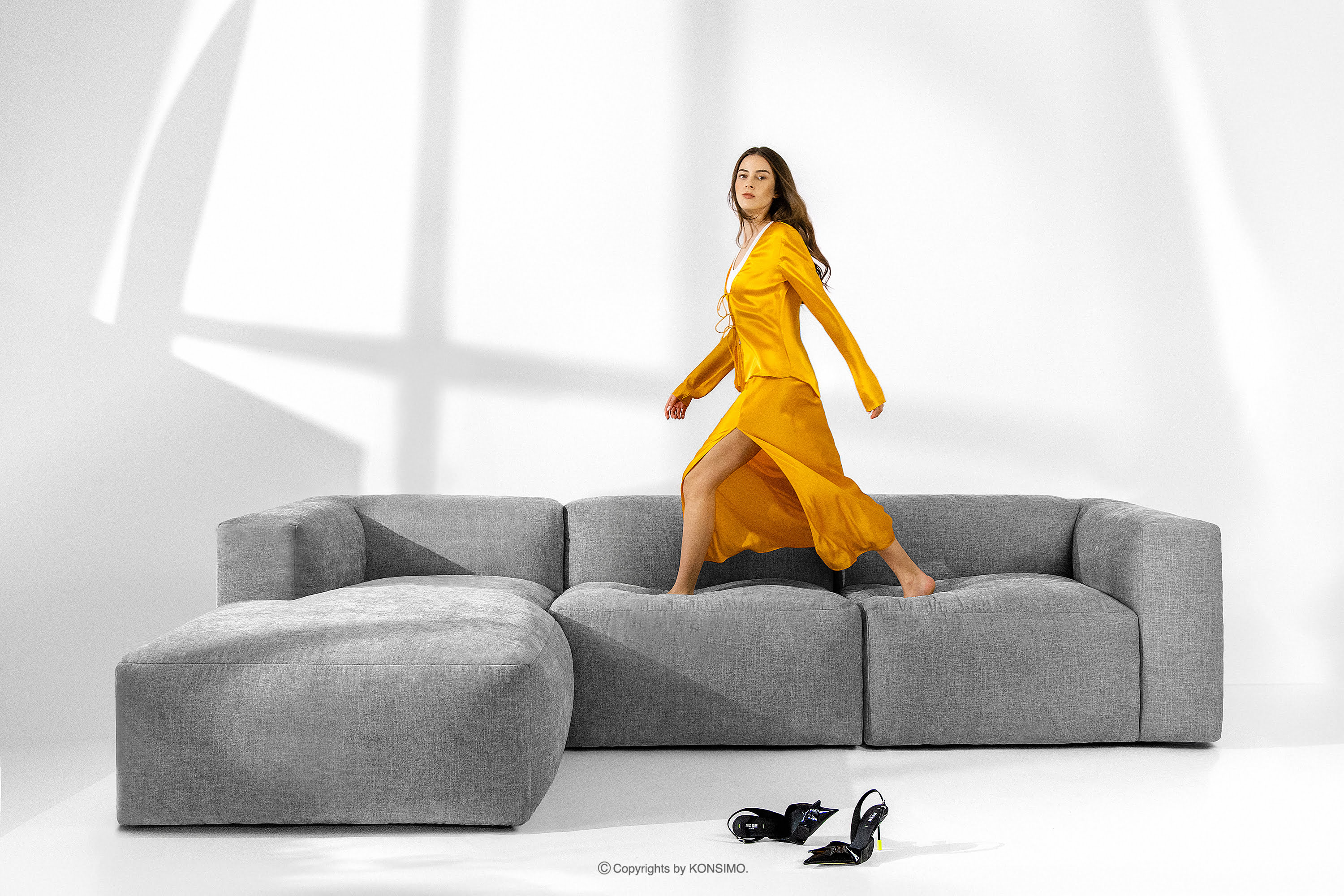BUFFO Objav celú kolekciu Dvojmiestna modulárna boho pohovka z tkanej látky svetlosivá- farba svetlo popolavá