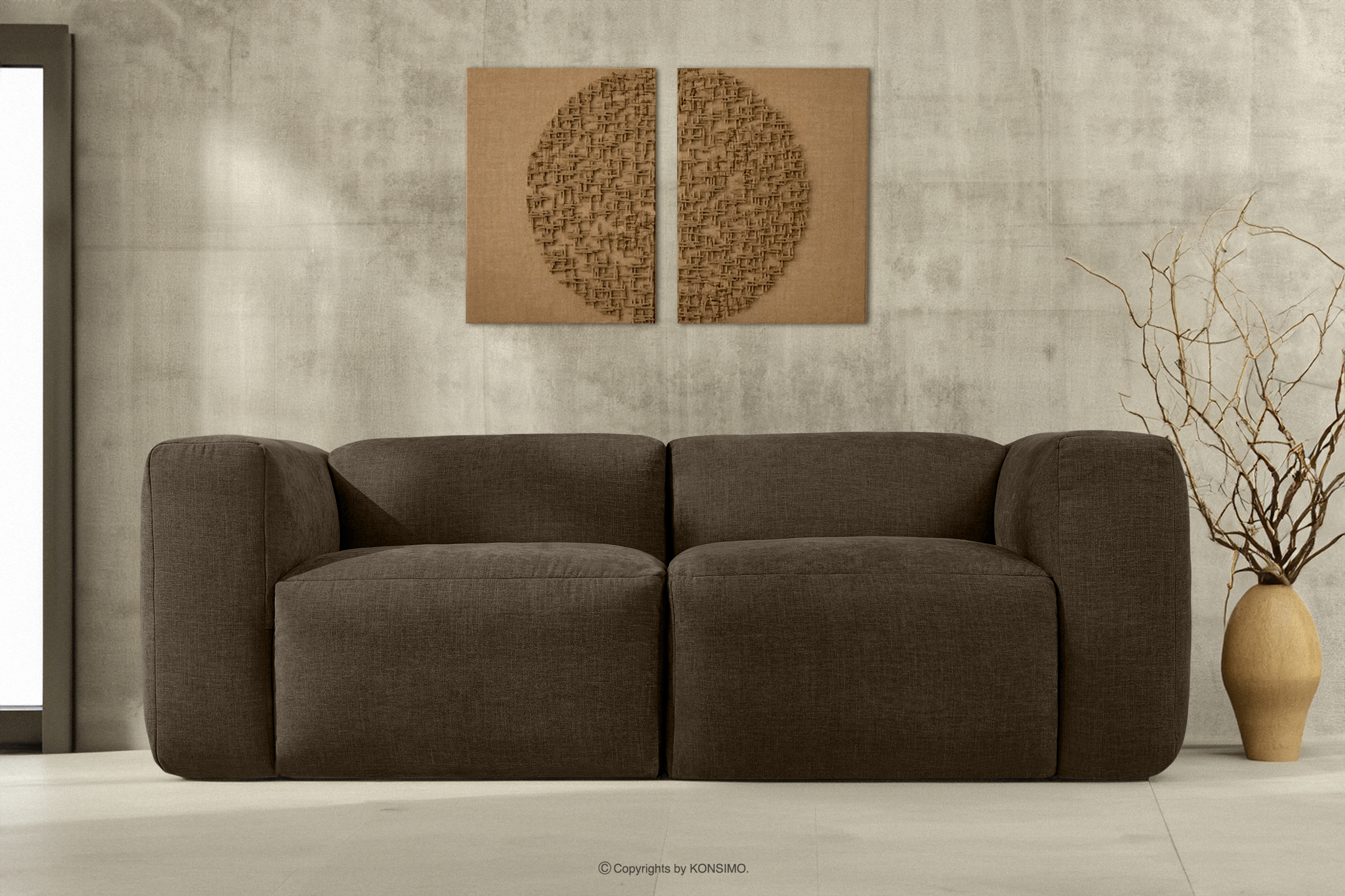 BUFFO Objav celú kolekciu Dvojmiestna modulárna boho pohovka z pletenej látky hnedej farby- farba hnedá