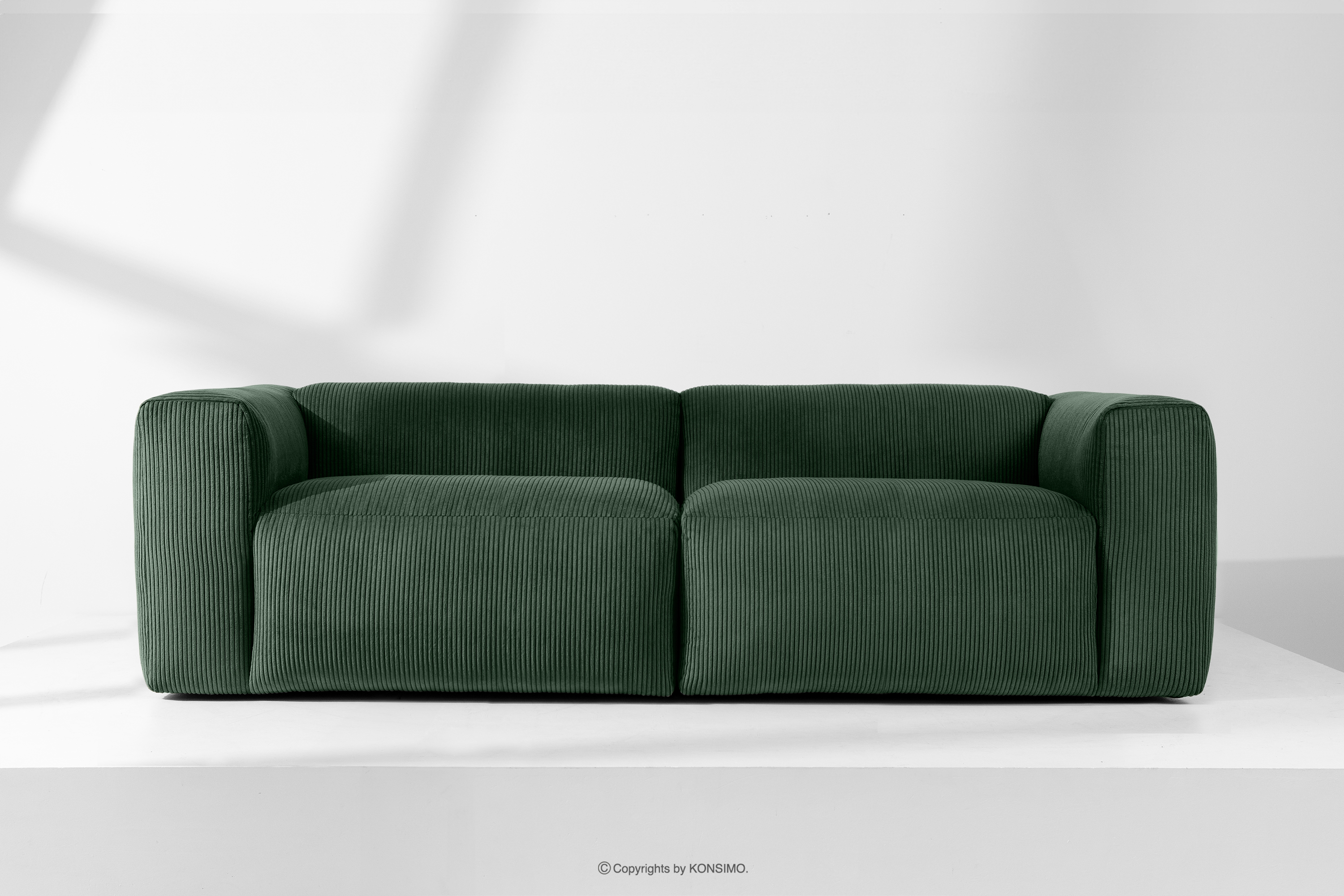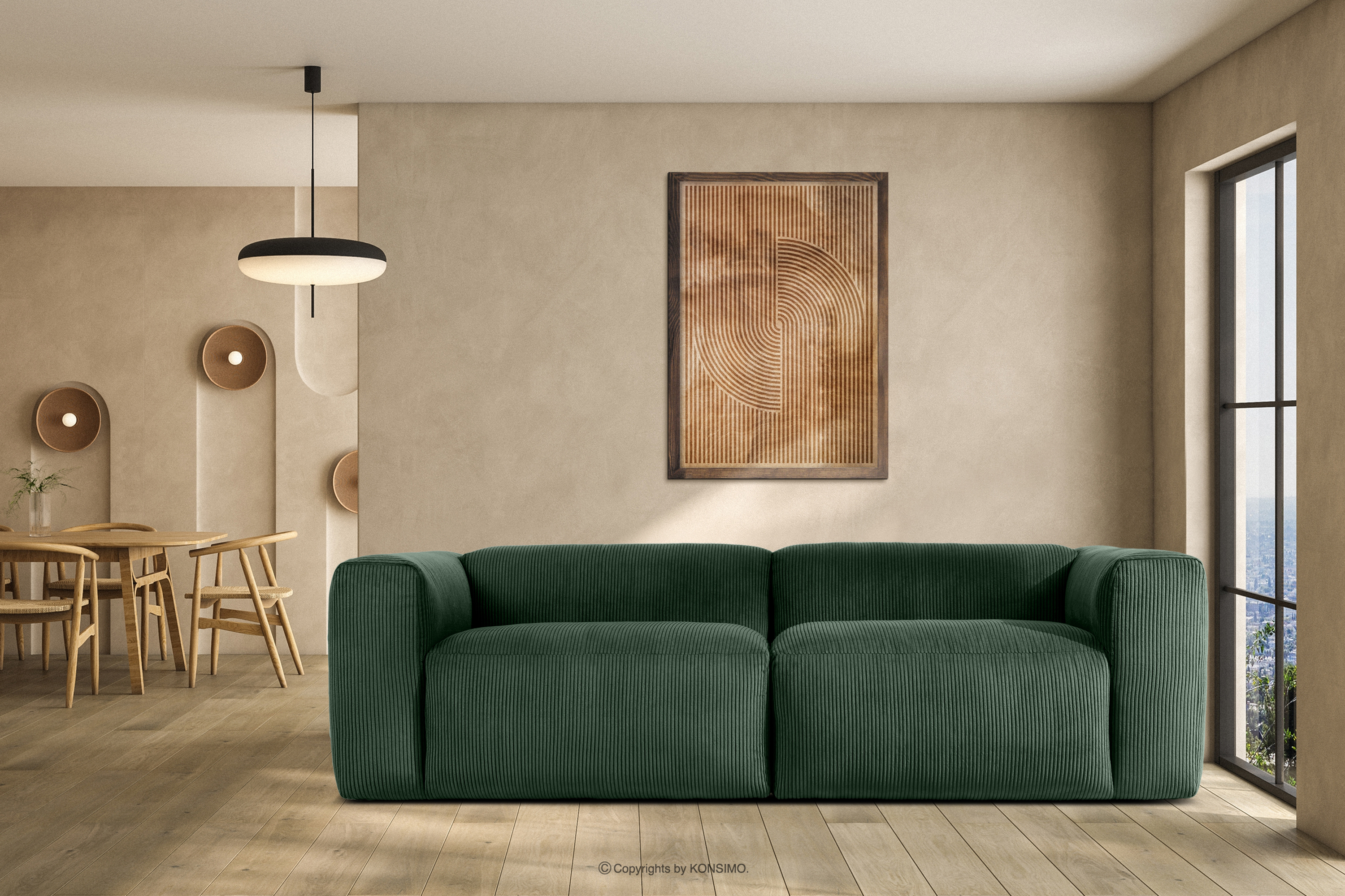 Pohovka Cloud do obývačky manšestrová tmavozelená sa určite stane ozdobou každej obývačky. Rám je vyrobený z odolného borovicového a bukového dreva, čo zaručuje nielen pevnosť, ale aj estetiku. Okrem toho použitie odolných drevotrieskových a drevovláknitých dosiek zvyšuje úroveň stability a odolnosti nábytku. Vďaka tomu si zachováva svoju formu aj pri intenzívnom používaní, takže je mimoriadne odolný voči všetkým nástrahám každodenného života.