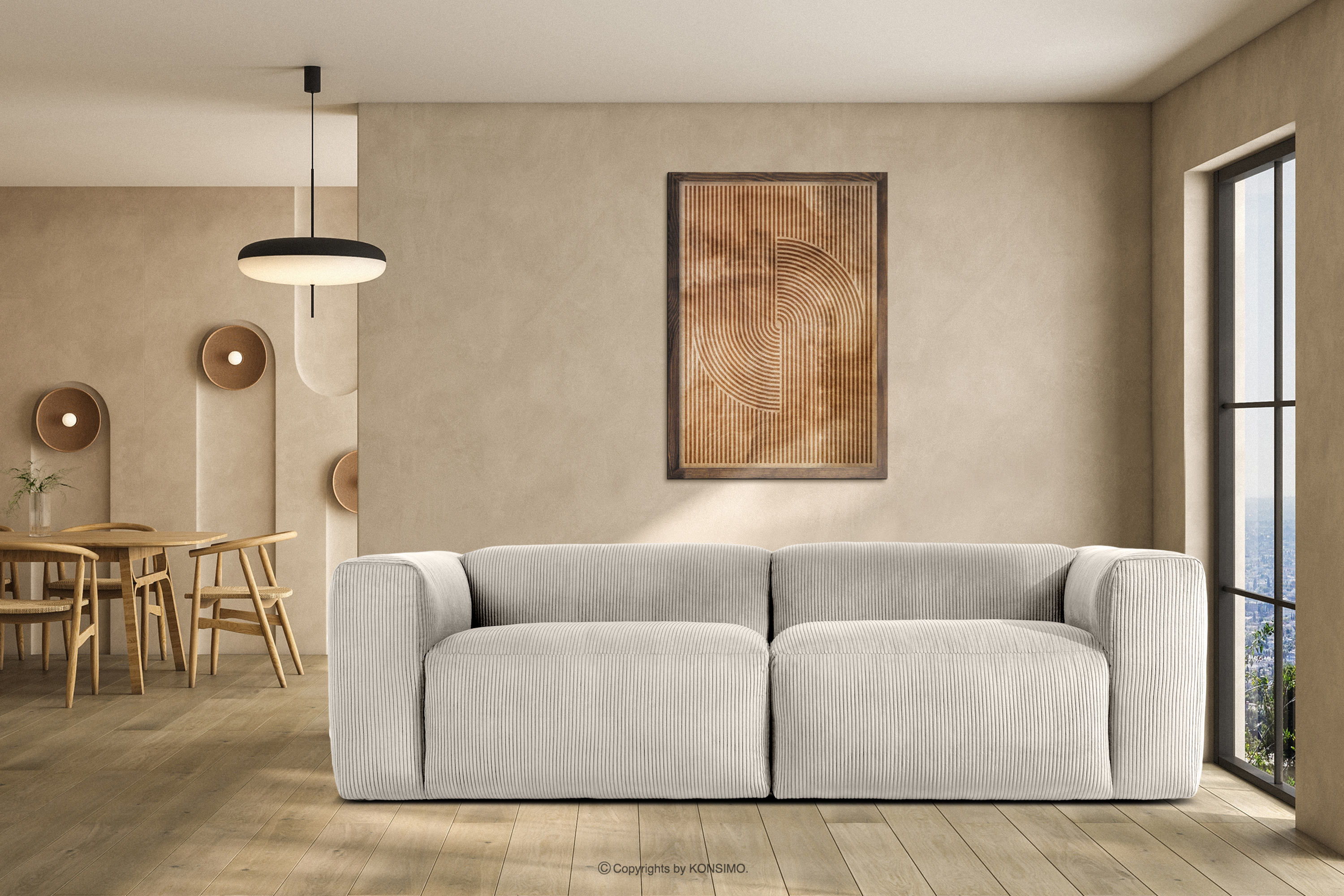 Pohovka Cloud do obývačky manšestrová krémová sa určite stane ozdobou každej obývačky. Rám je vyrobený z odolného borovicového a bukového dreva, čo zaručuje nielen pevnosť, ale aj estetiku. Okrem toho použitie odolných drevotrieskových a drevovláknitých dosiek zvyšuje úroveň stability a trvanlivosti nábytku. Vďaka tomu si zachováva svoju formu aj pri intenzívnom používaní, takže je mimoriadne odolný voči všetkým nástrahám každodenného života.