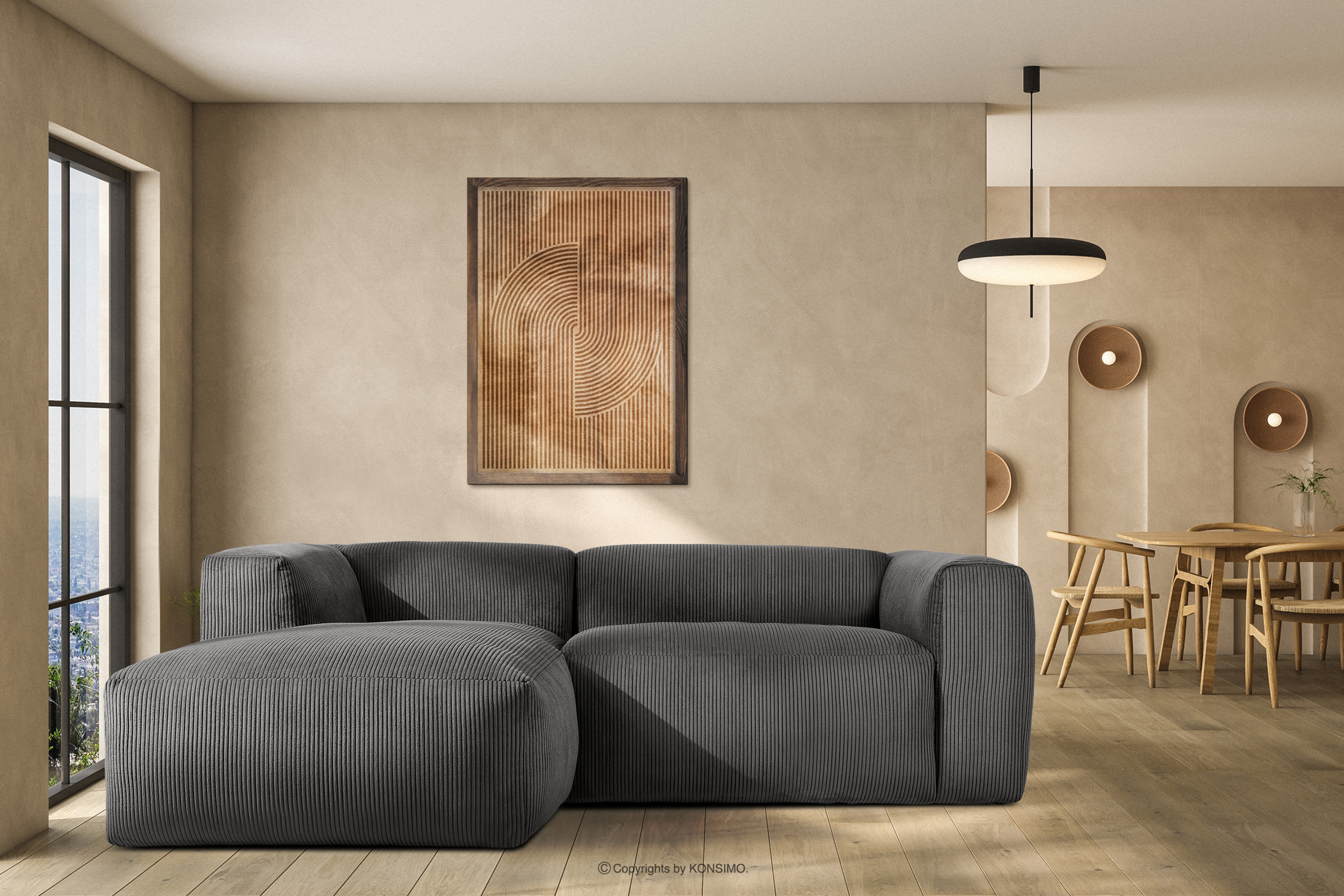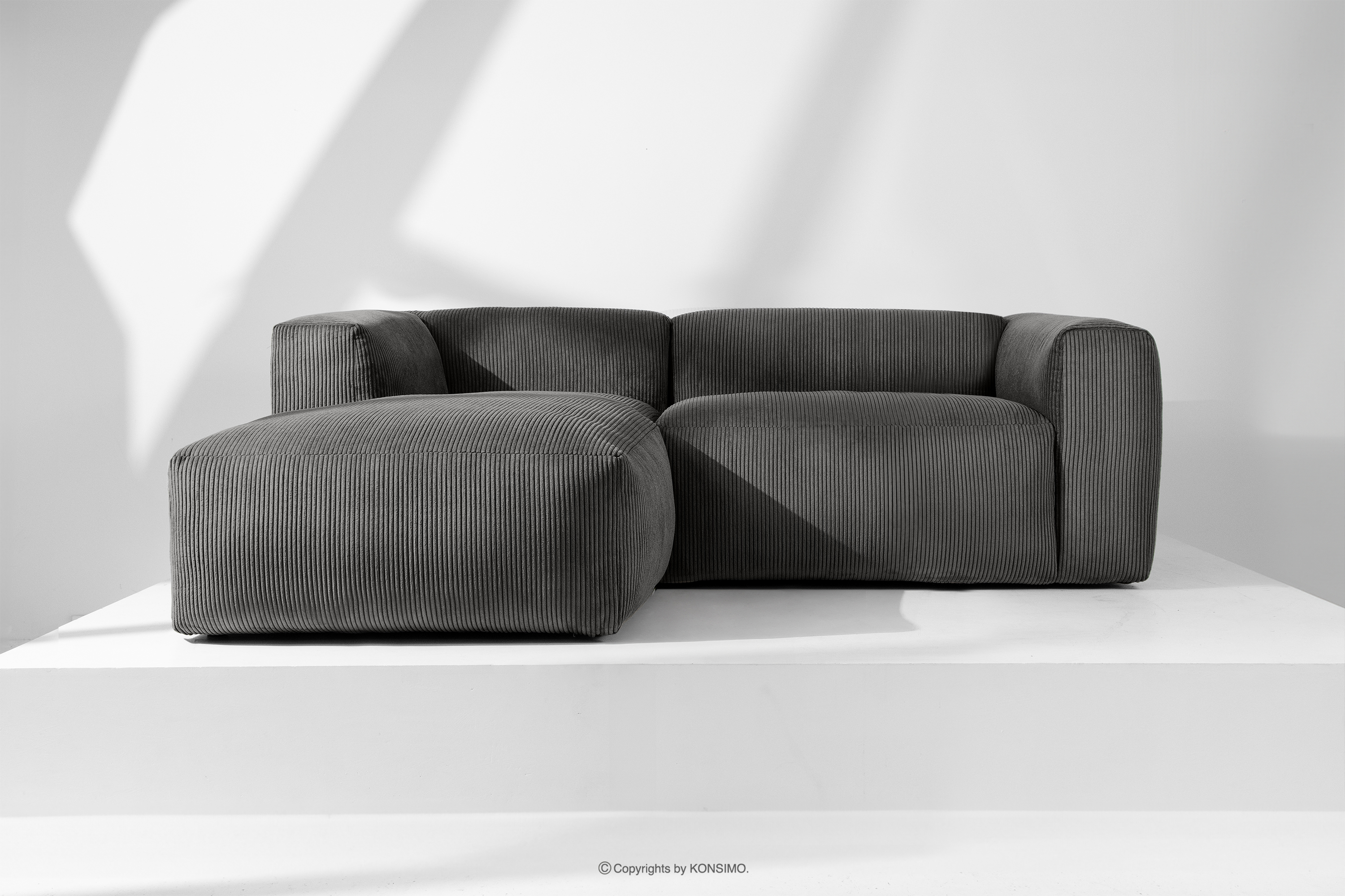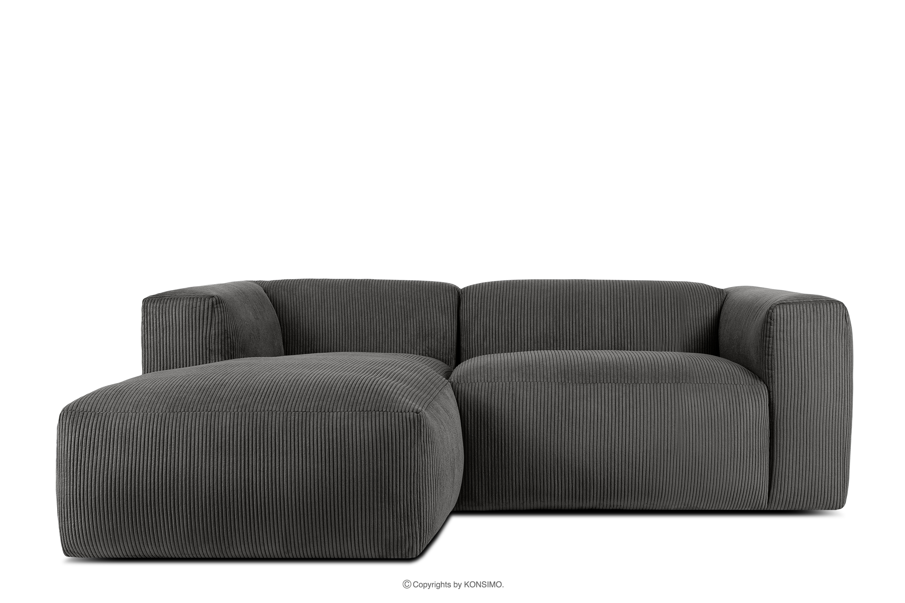 BUFFO Objav celú kolekciu Modulárna rohová pohovka do obývačky z manšestrovej látky sivej farby vľavo- farba sivá