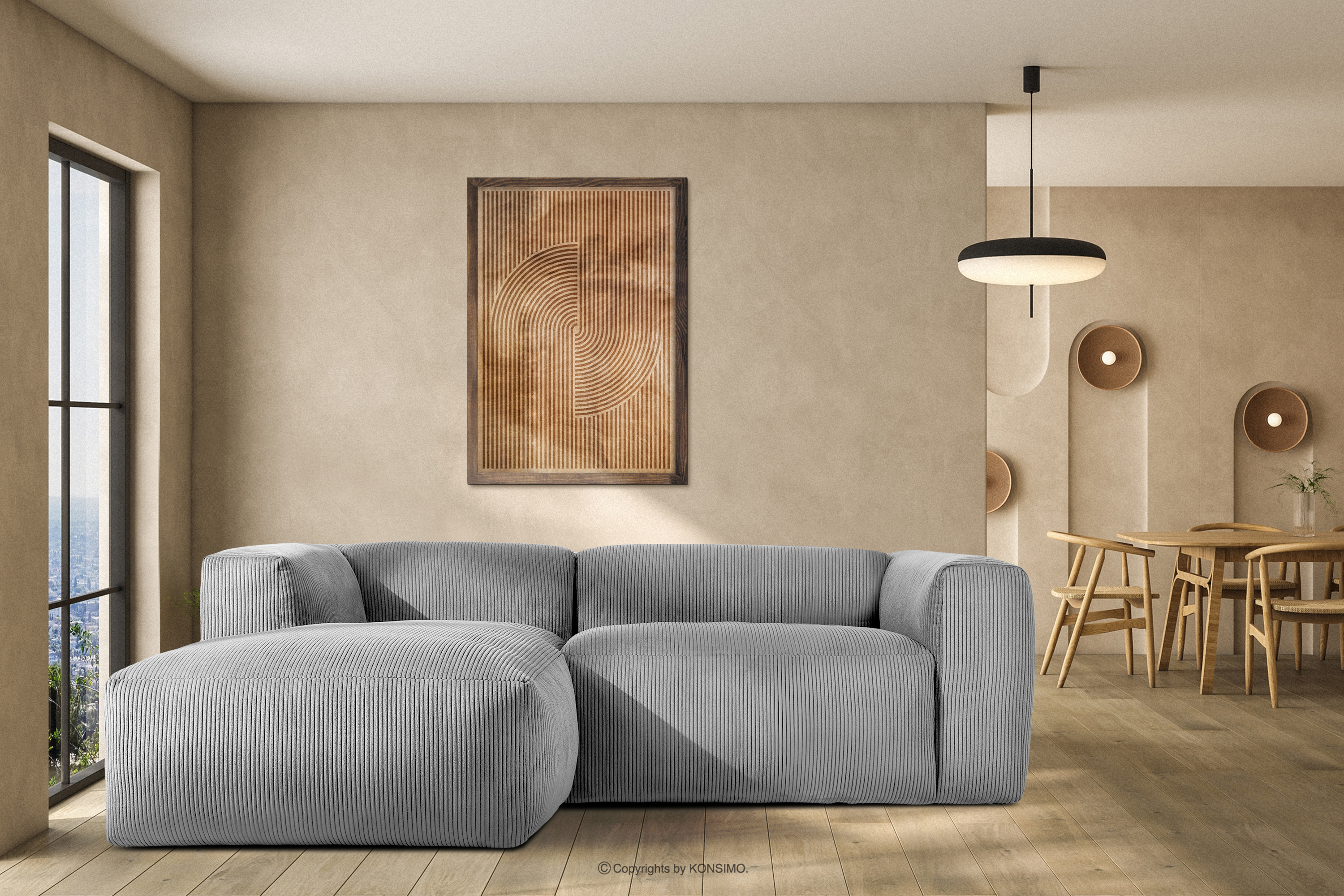 BUFFO Modulárna rohová pohovka do obývačky z manšestrovej tkaniny svetlosivej vľavo