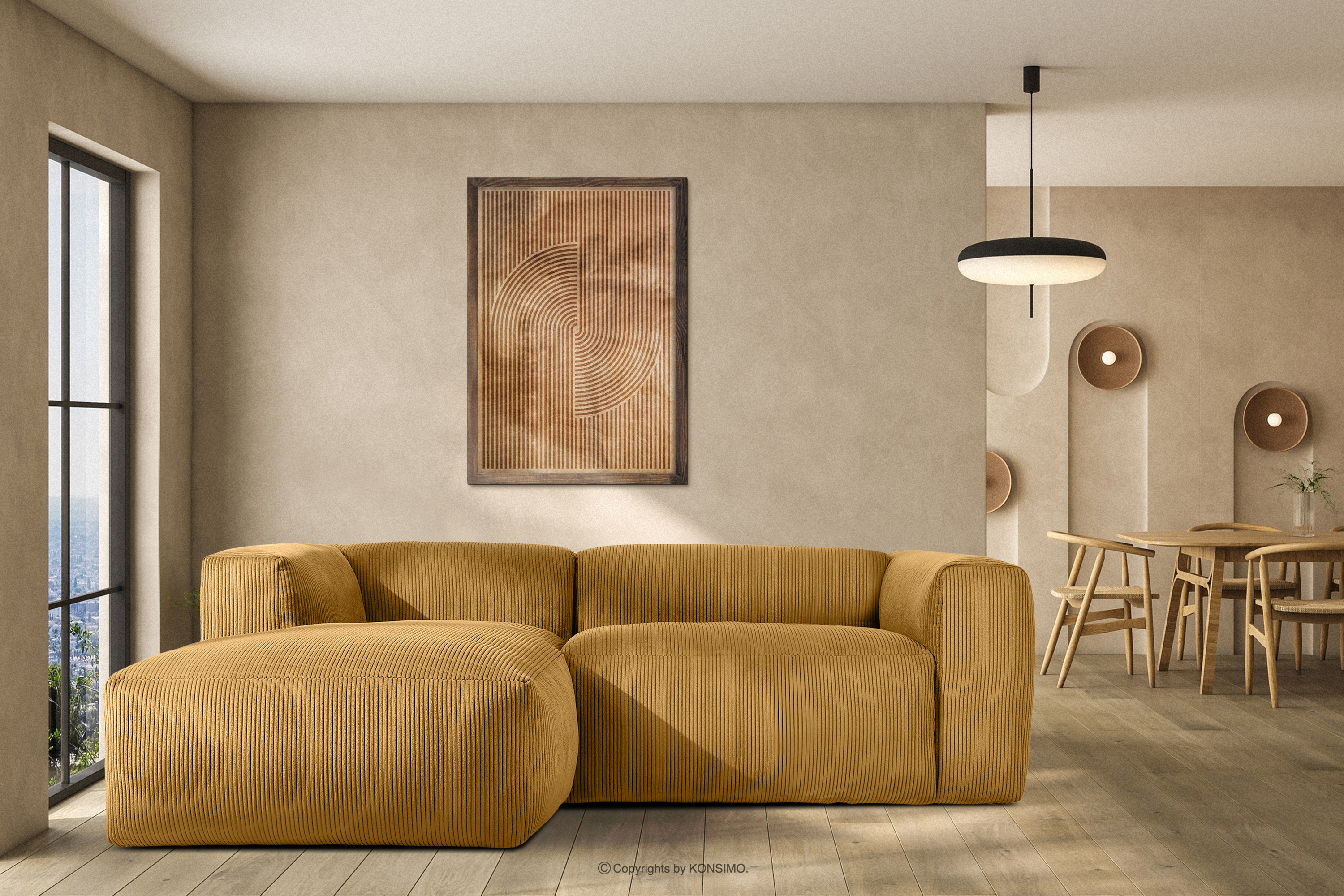 BUFFO Modulárna rohová pohovka do obývačky z manšestrovej látky žltej farby vľavo