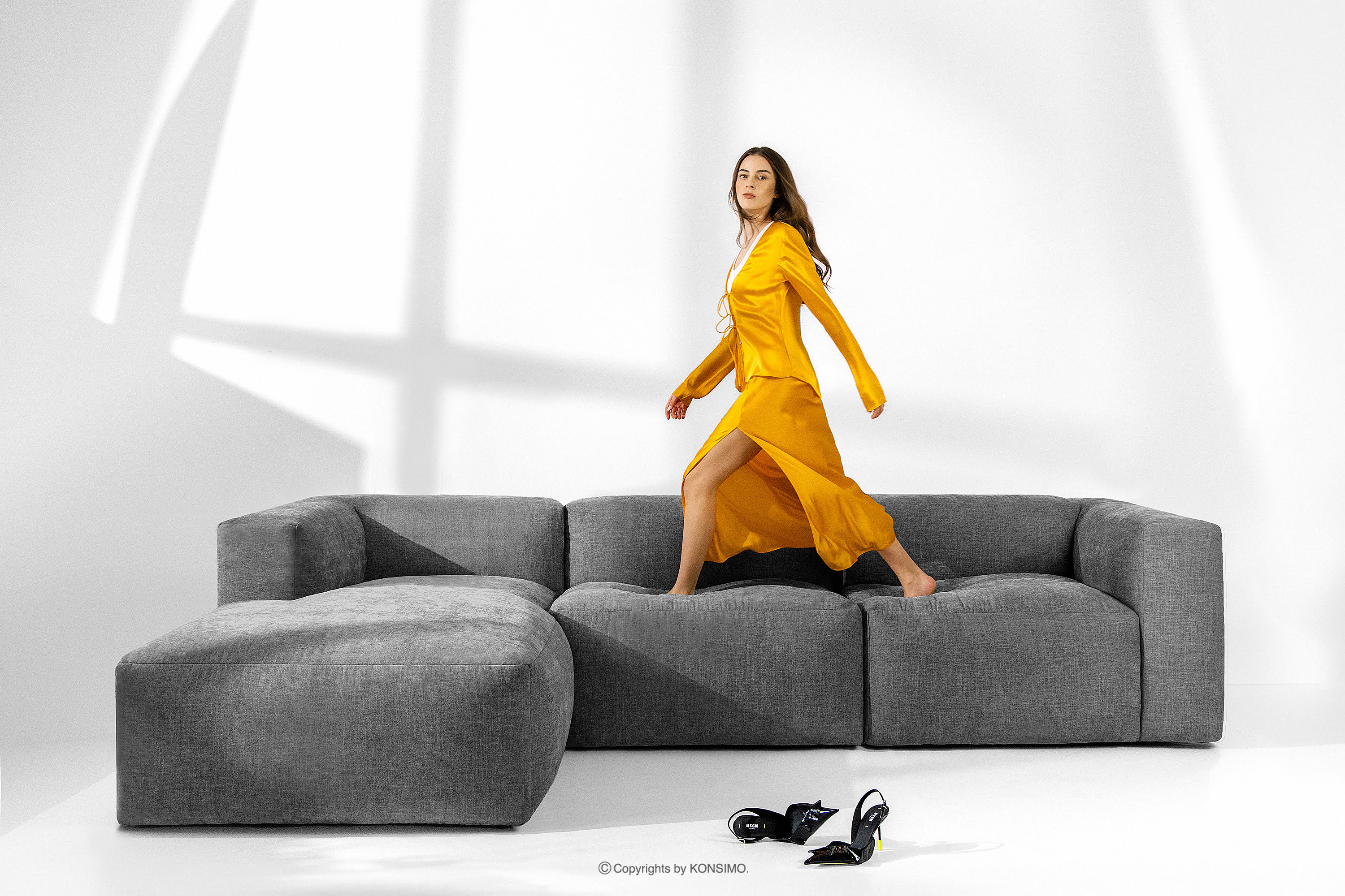 BUFFO Objav celú kolekciu Modulárna rohová pohovka do obývačky z tkanej látky popolavo sivá- farba popolavá