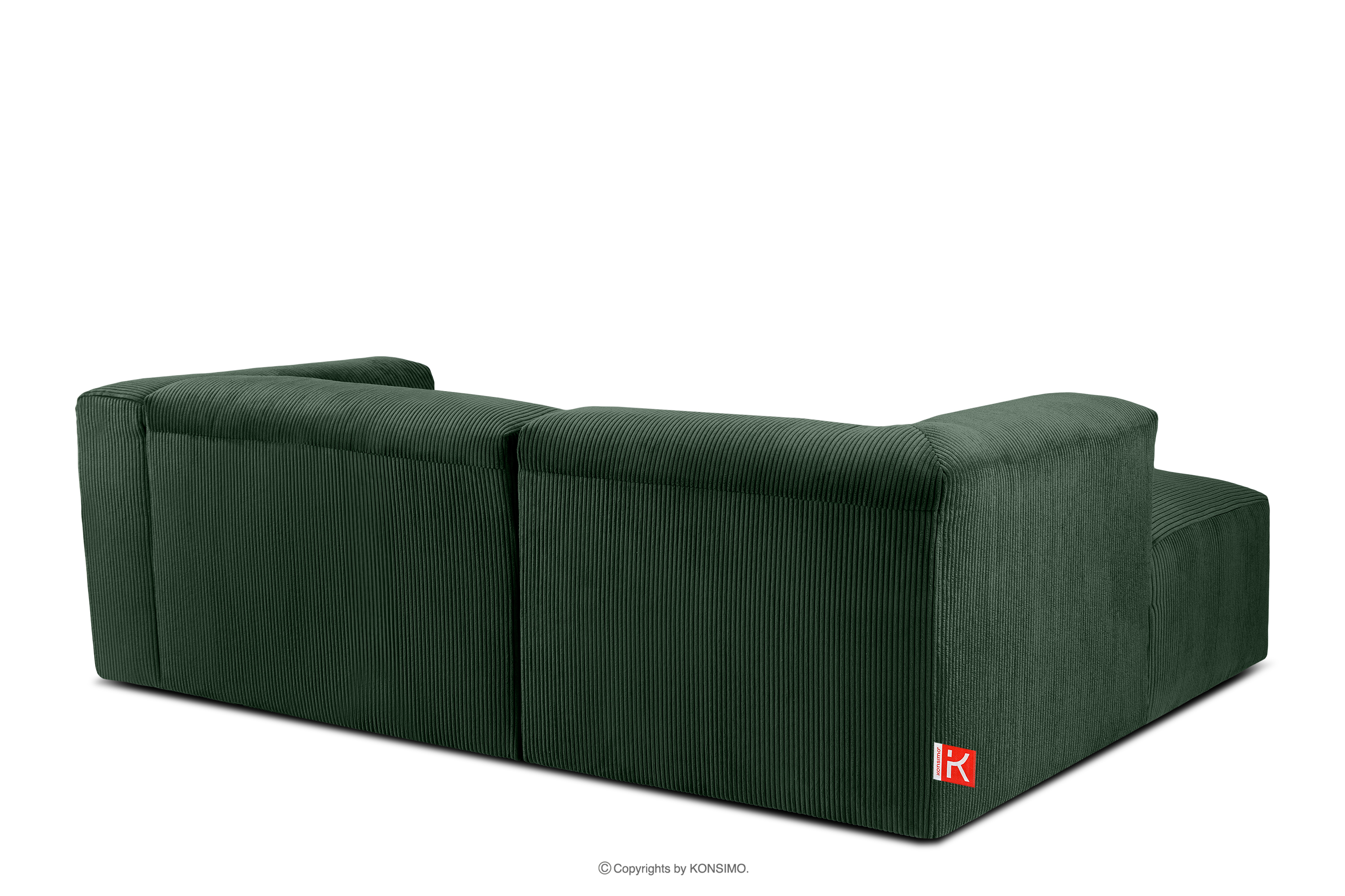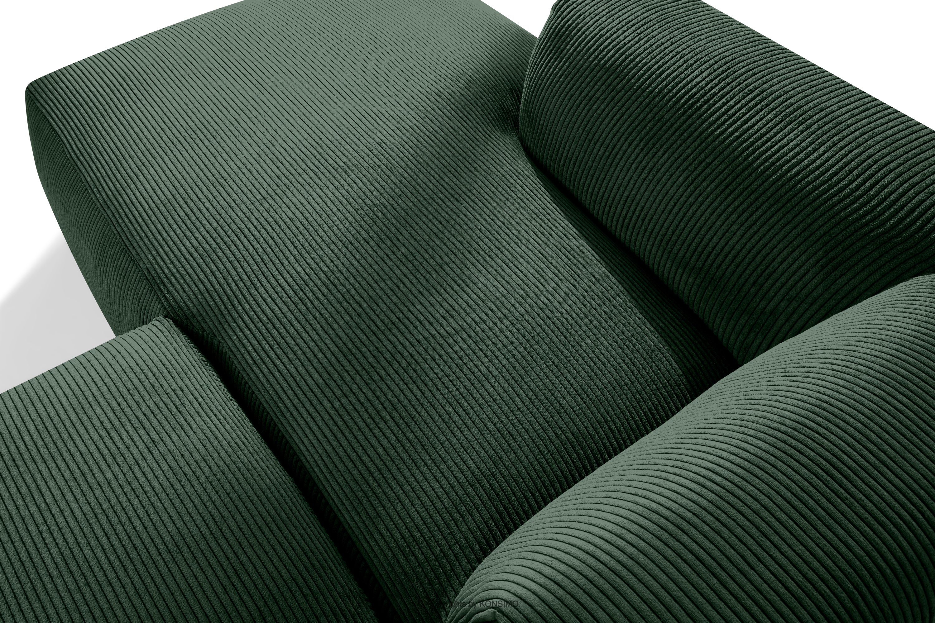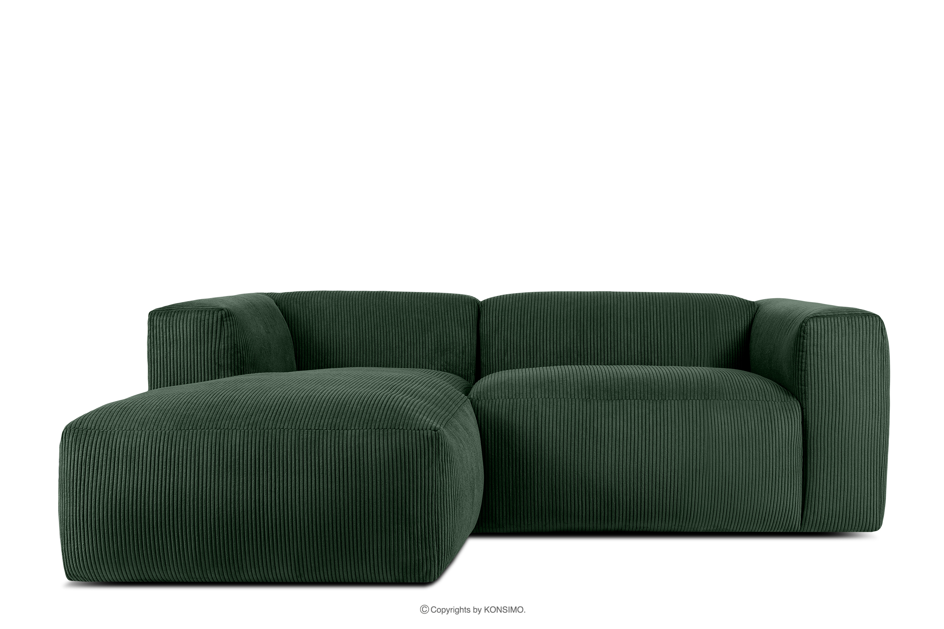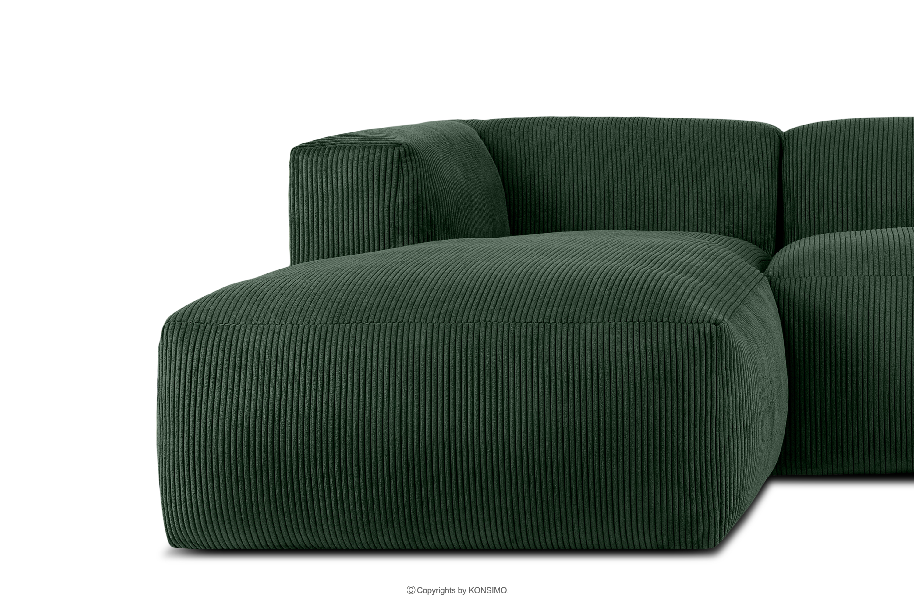 BUFFO Objav celú kolekciu Modulárna rohová pohovka do obývačky z manšestrovej tkaniny tmavozelenej farby vľavo- farba tmavozelená