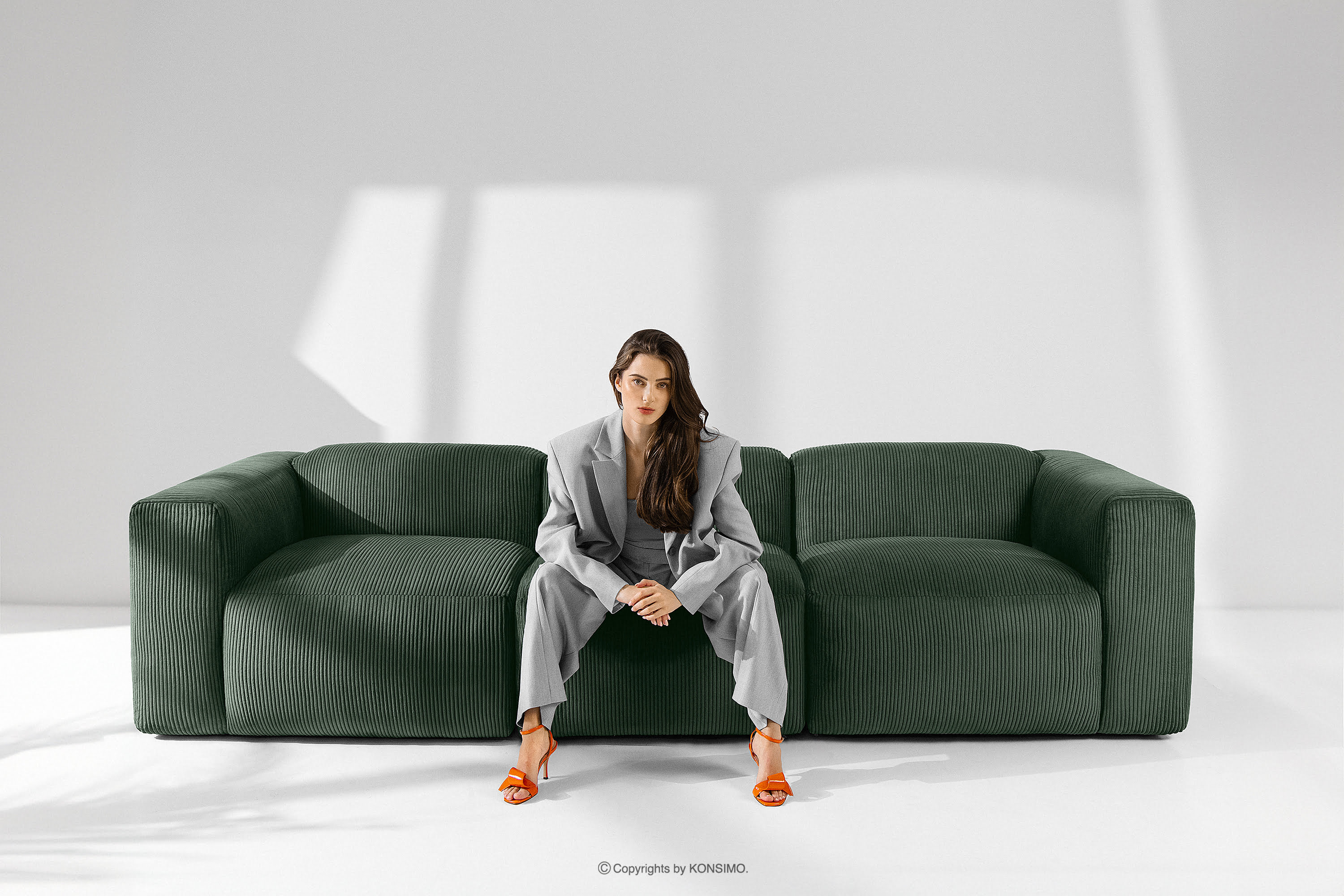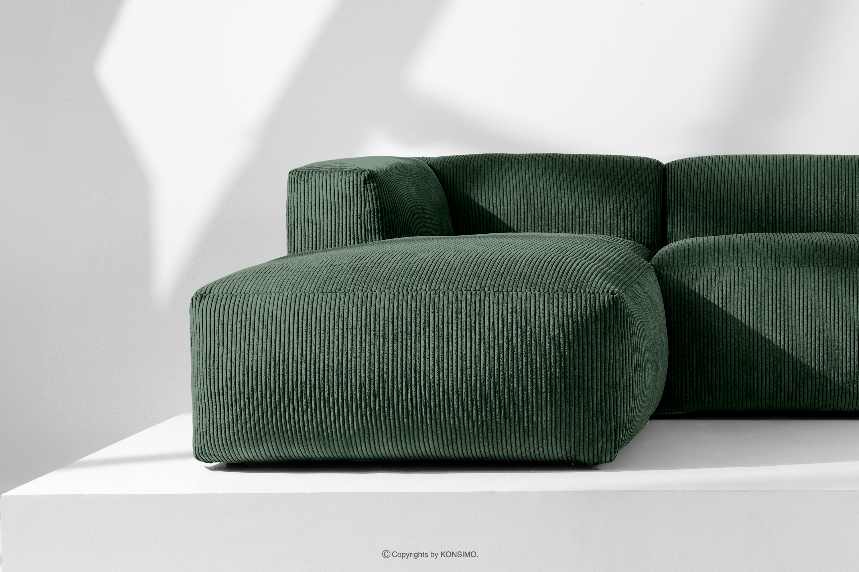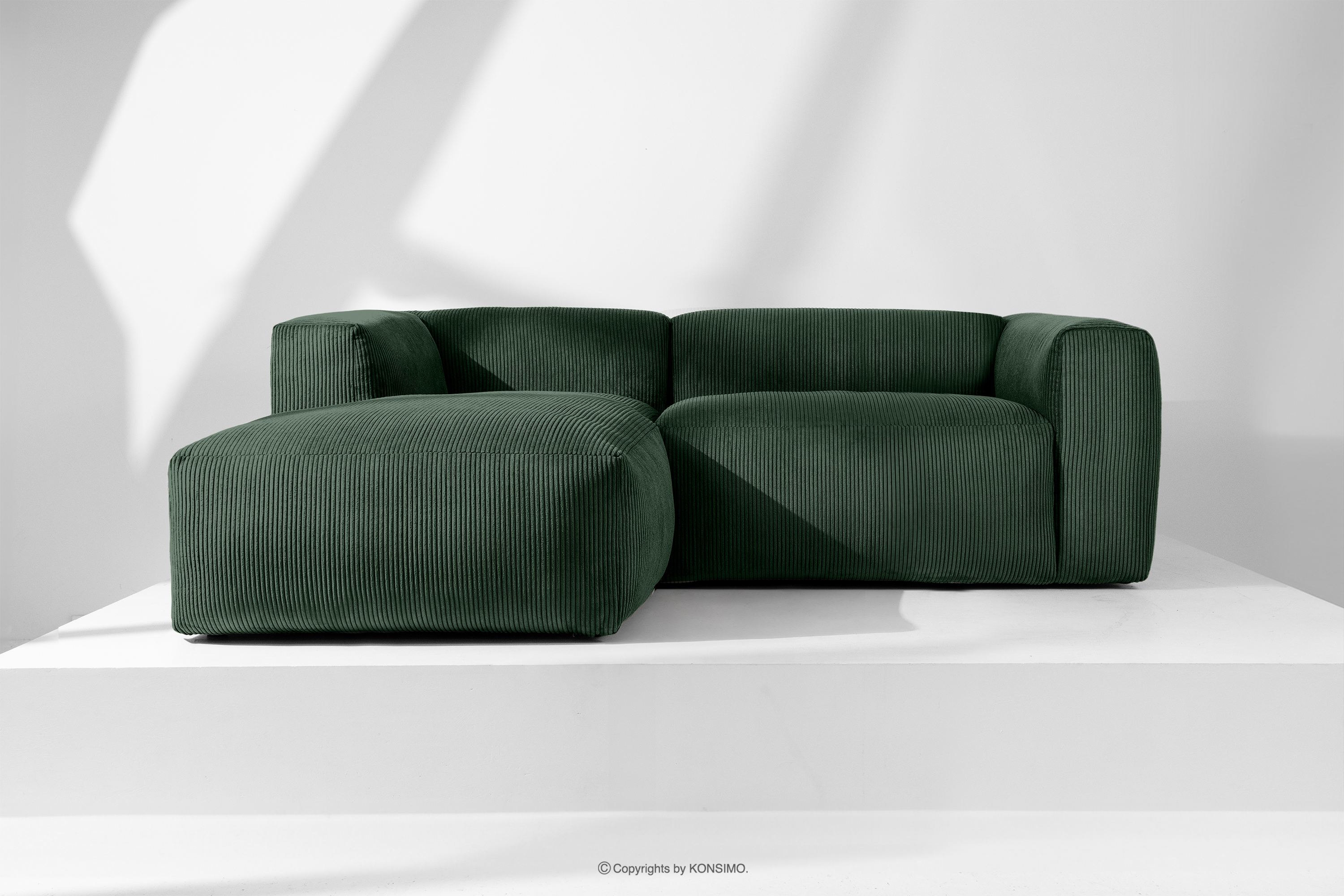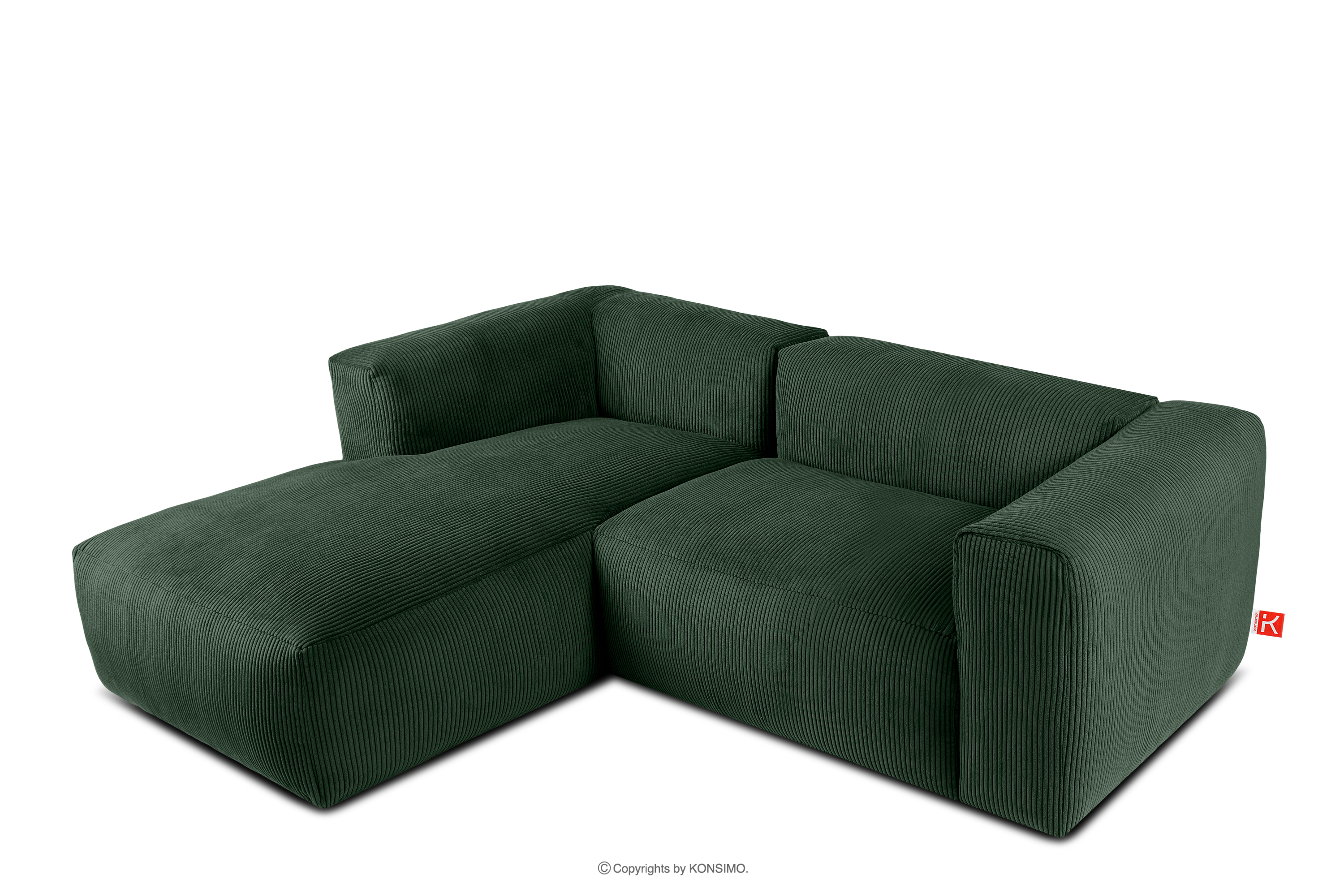 BUFFO Objav celú kolekciu Modulárna rohová pohovka do obývačky z manšestrovej tkaniny tmavozelenej farby vľavo- farba tmavozelená