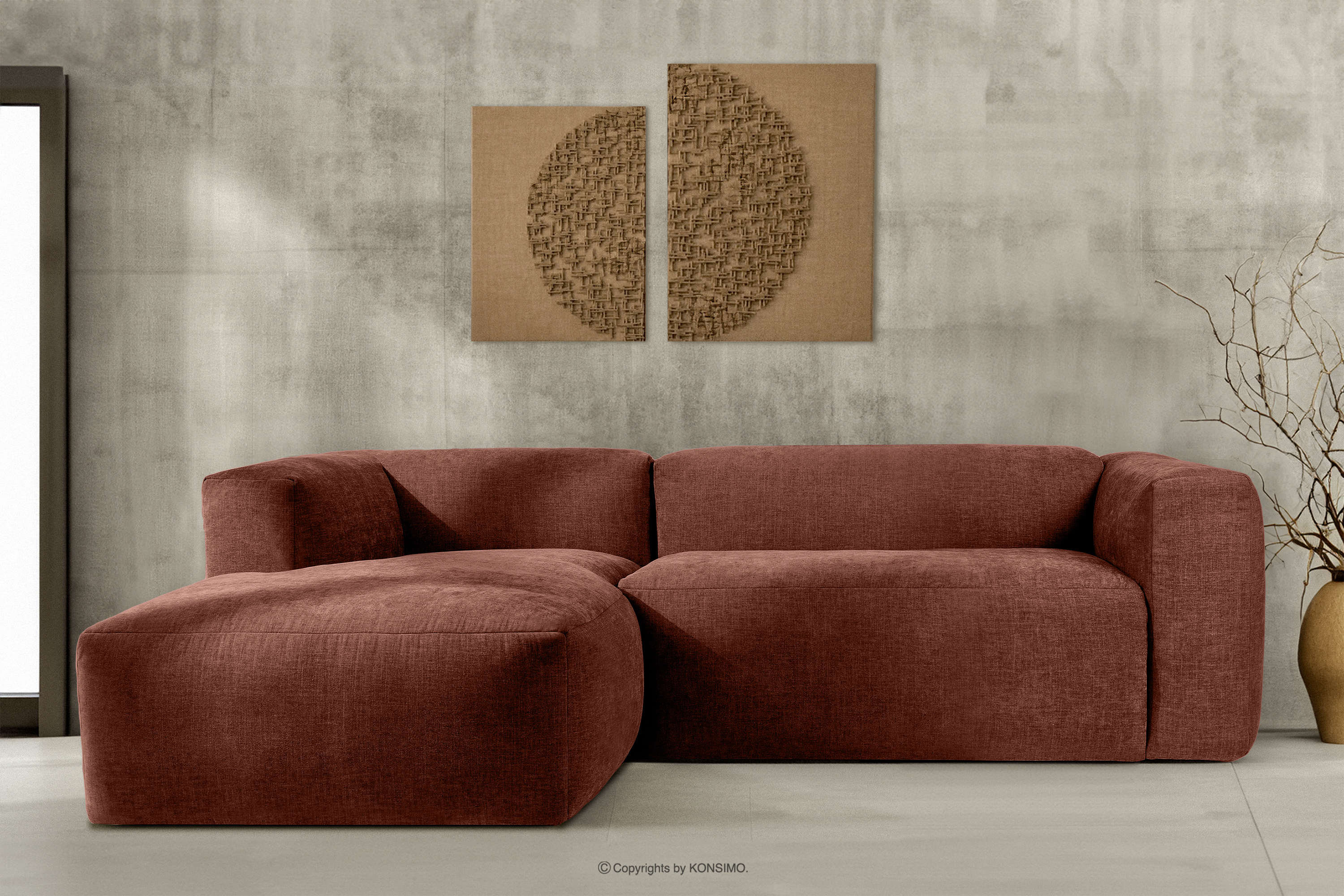 BUFFO Modulárna rohová pohovka do obývačky z tkanej látky oranžovej farby vľavo