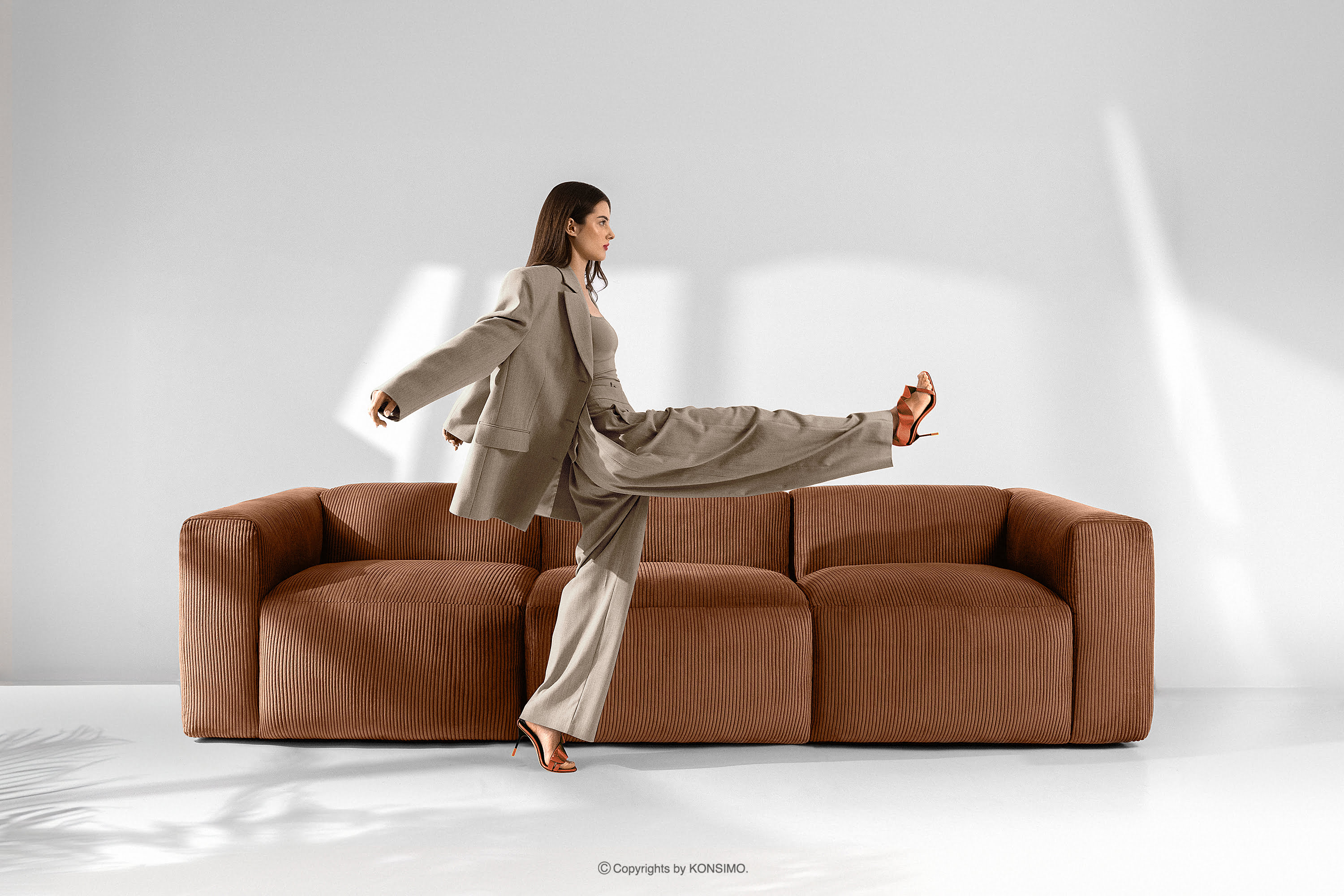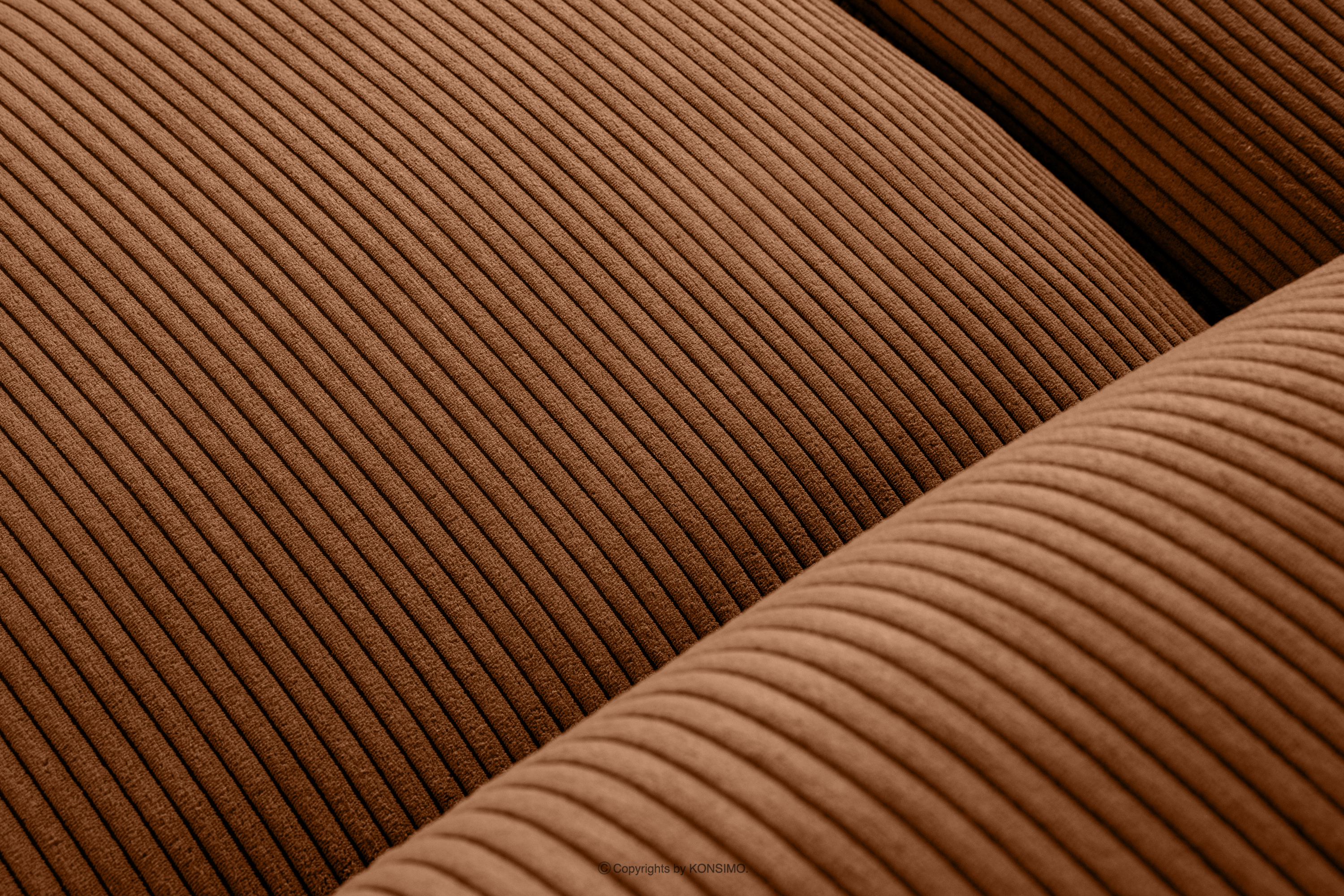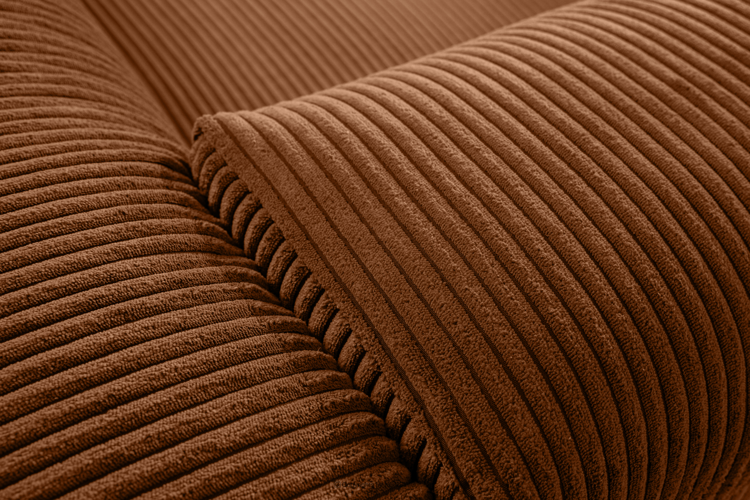 Modulárna rohová sedacia súprava do obývačky v manšestrovej látke ore left sa určite stane ústredným bodom každej obývačky. Rám je vyrobený z odolného borovicového a bukového dreva, čo zaručuje nielen robustnosť, ale aj estetiku. Okrem toho použitie odolných drevotrieskových a drevovláknitých dosiek zvyšuje úroveň stability a odolnosti nábytku. Vďaka tomu si zachováva svoju formu aj pri intenzívnom používaní, takže je mimoriadne odolný voči všetkým nástrahám každodenného života.