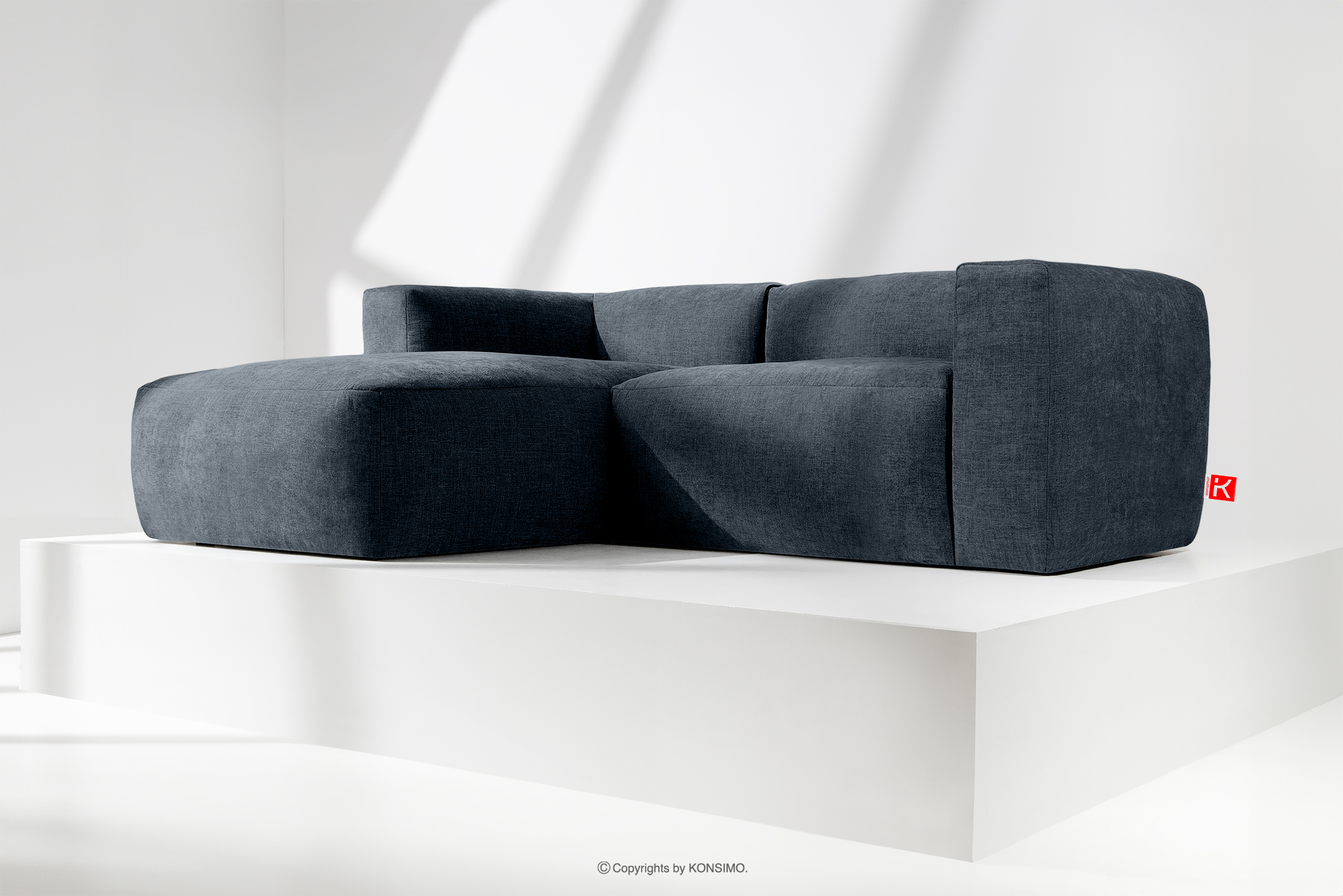 BUFFO Objav celú kolekciu Modulárna rohová pohovka do obývačky z tkanej látky tmavomodrej farby vľavo- farba tmavomodrá
