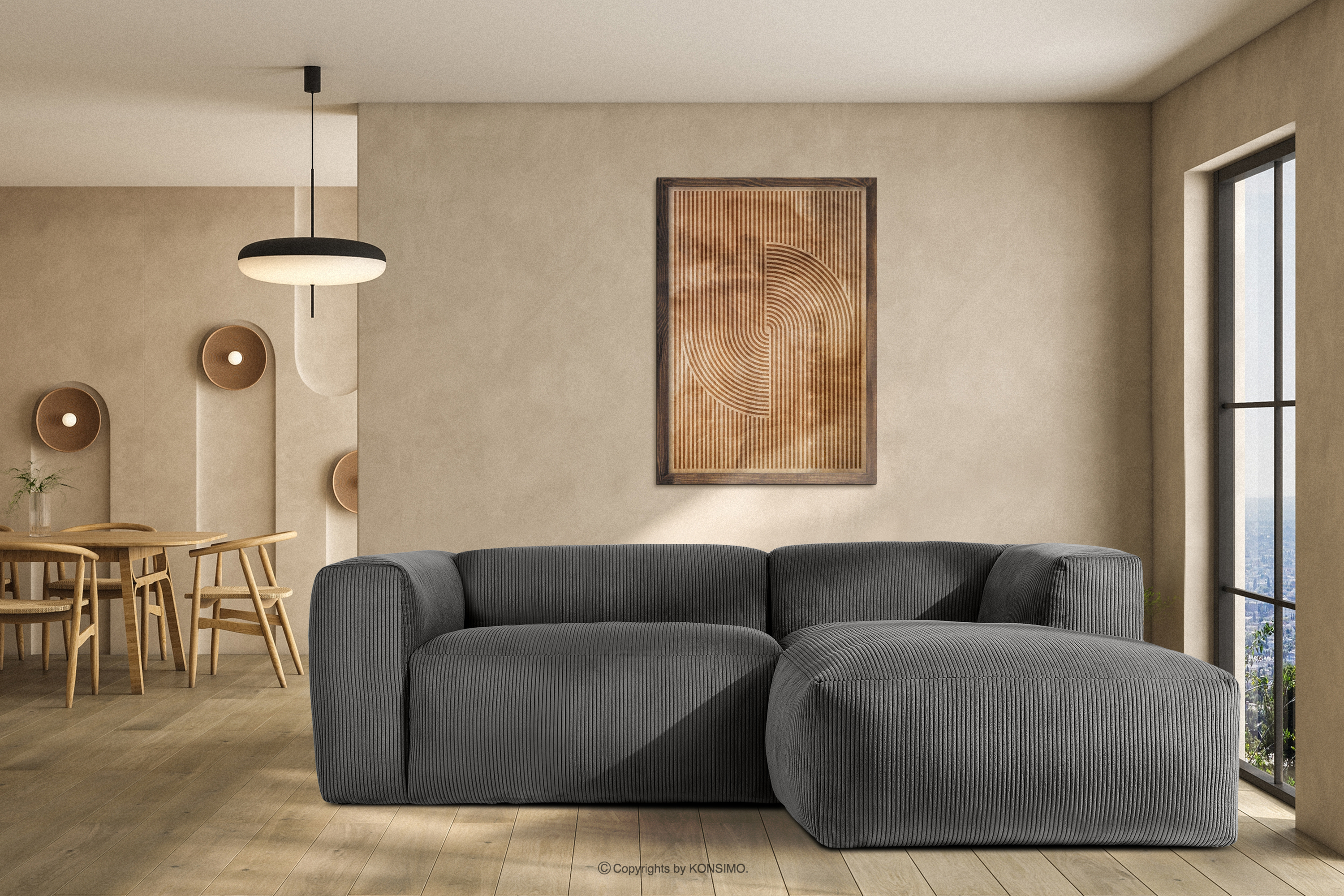 BUFFO Modulárna rohová pohovka do obývačky z manšestrovej látky sivej farby vpravo