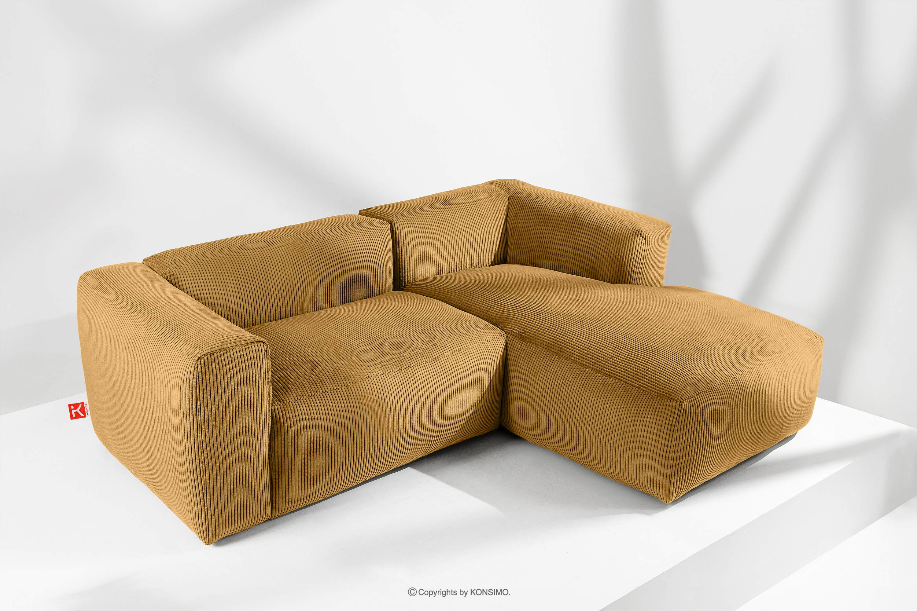 BUFFO Objav celú kolekciu Modulárna rohová pohovka do obývačky z manšestrovej látky žltej farby vpravo- farba žltá