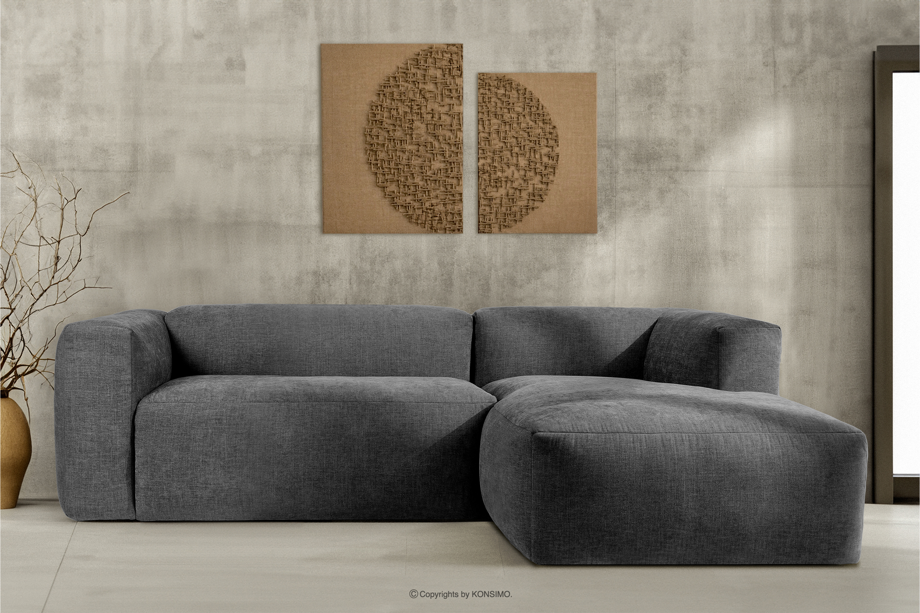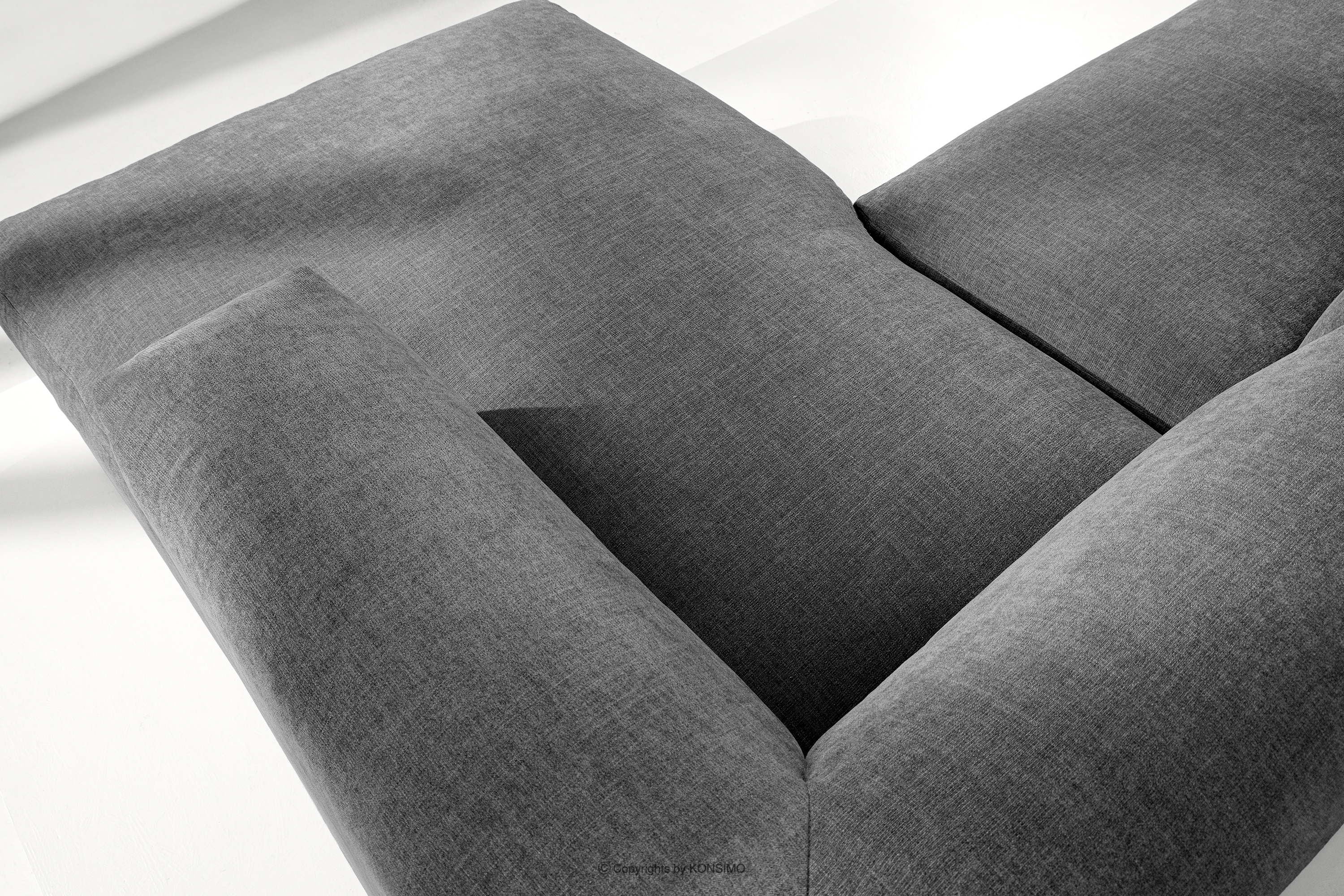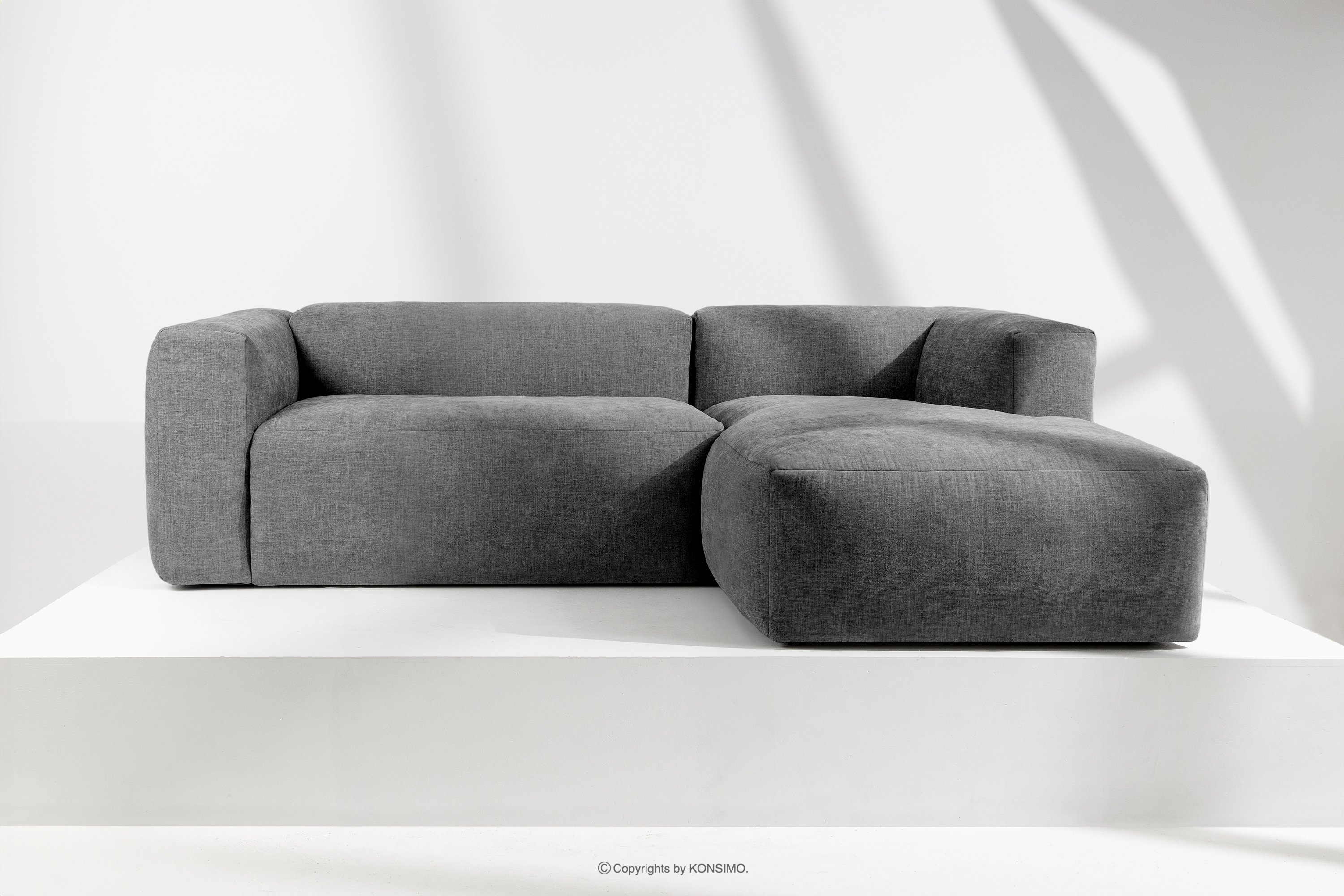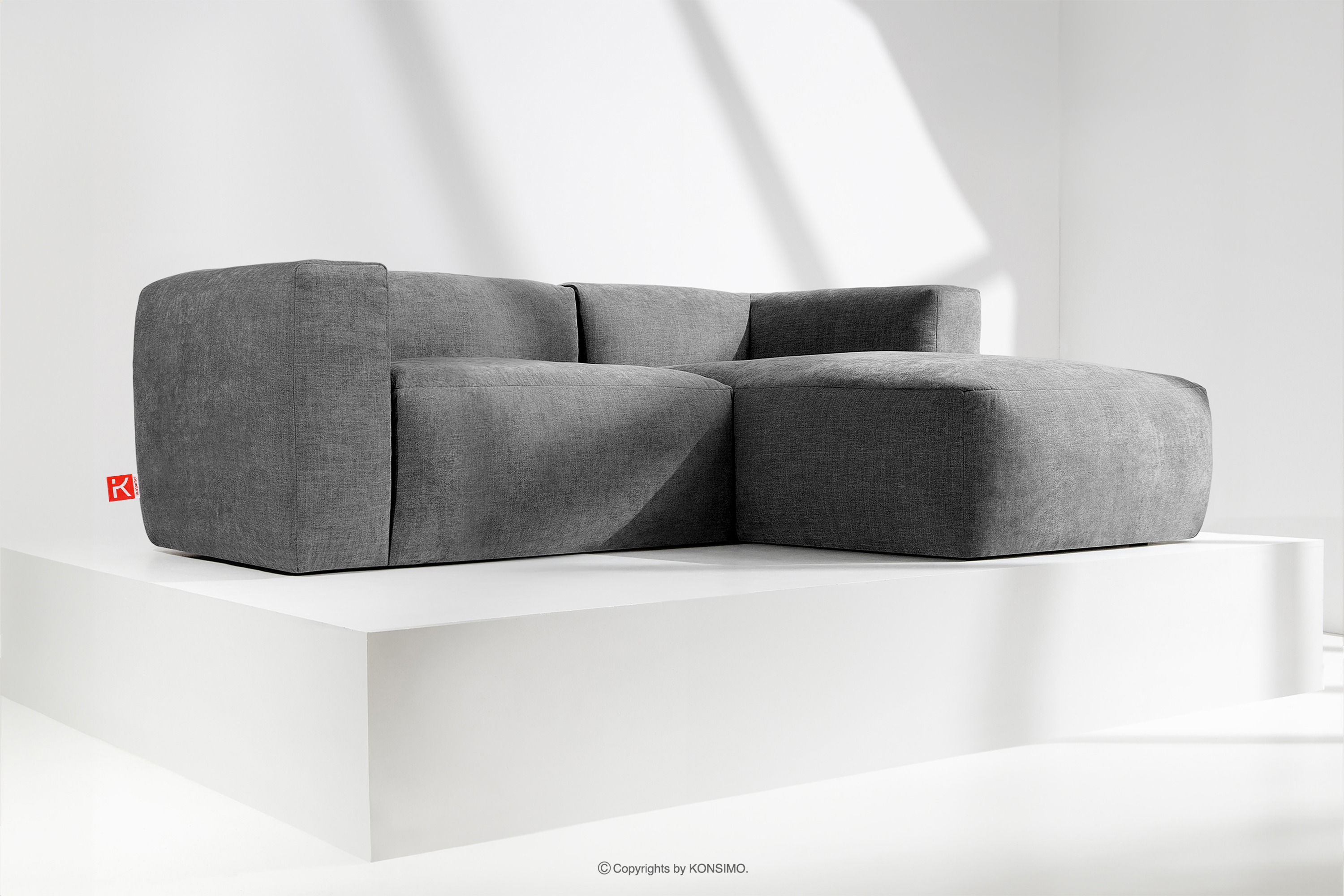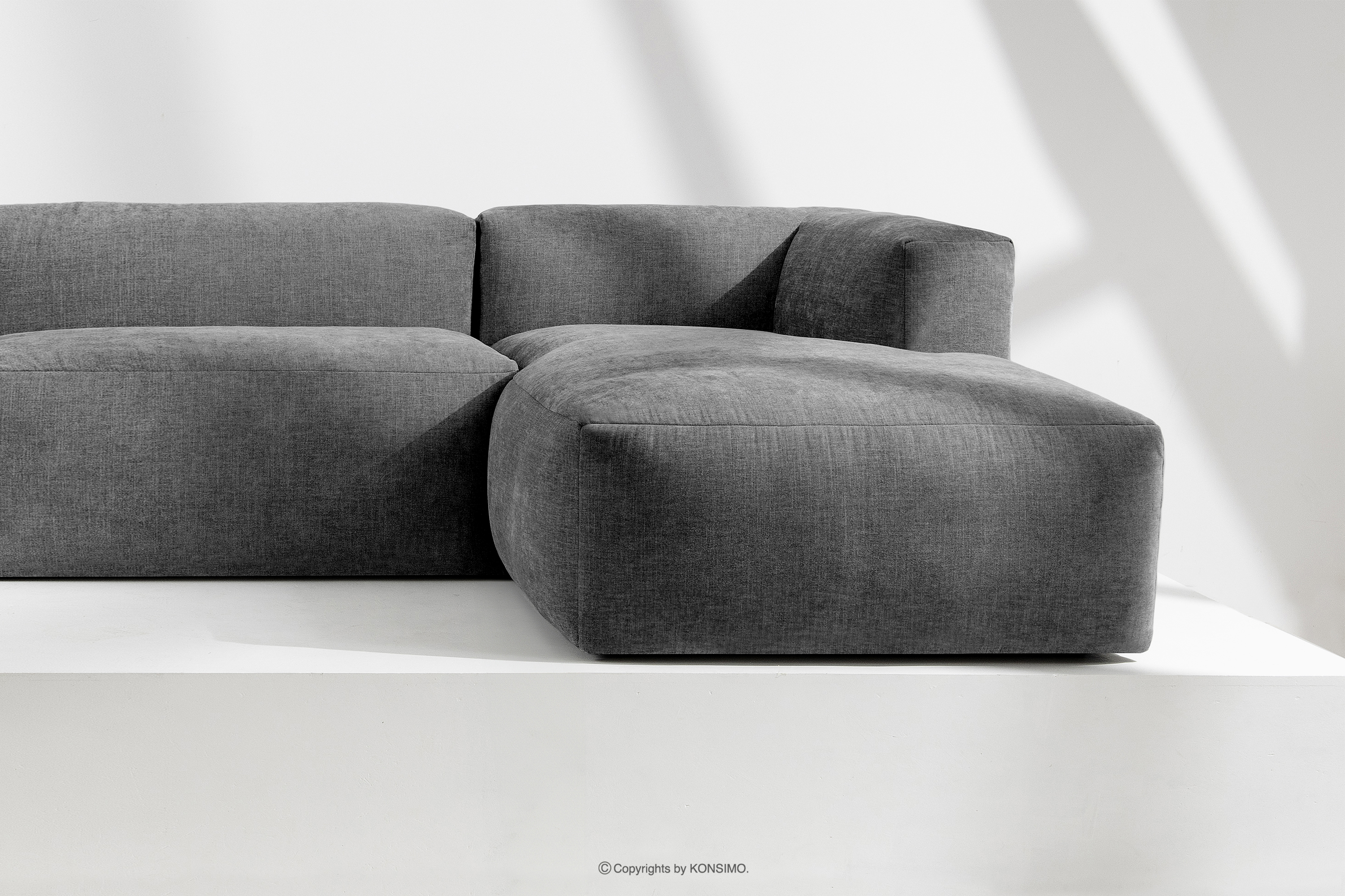 BUFFO Objav celú kolekciu Modulárna rohová pohovka do obývačky z tkanej látky popolavo sivej farby vpravo- farba popolavá