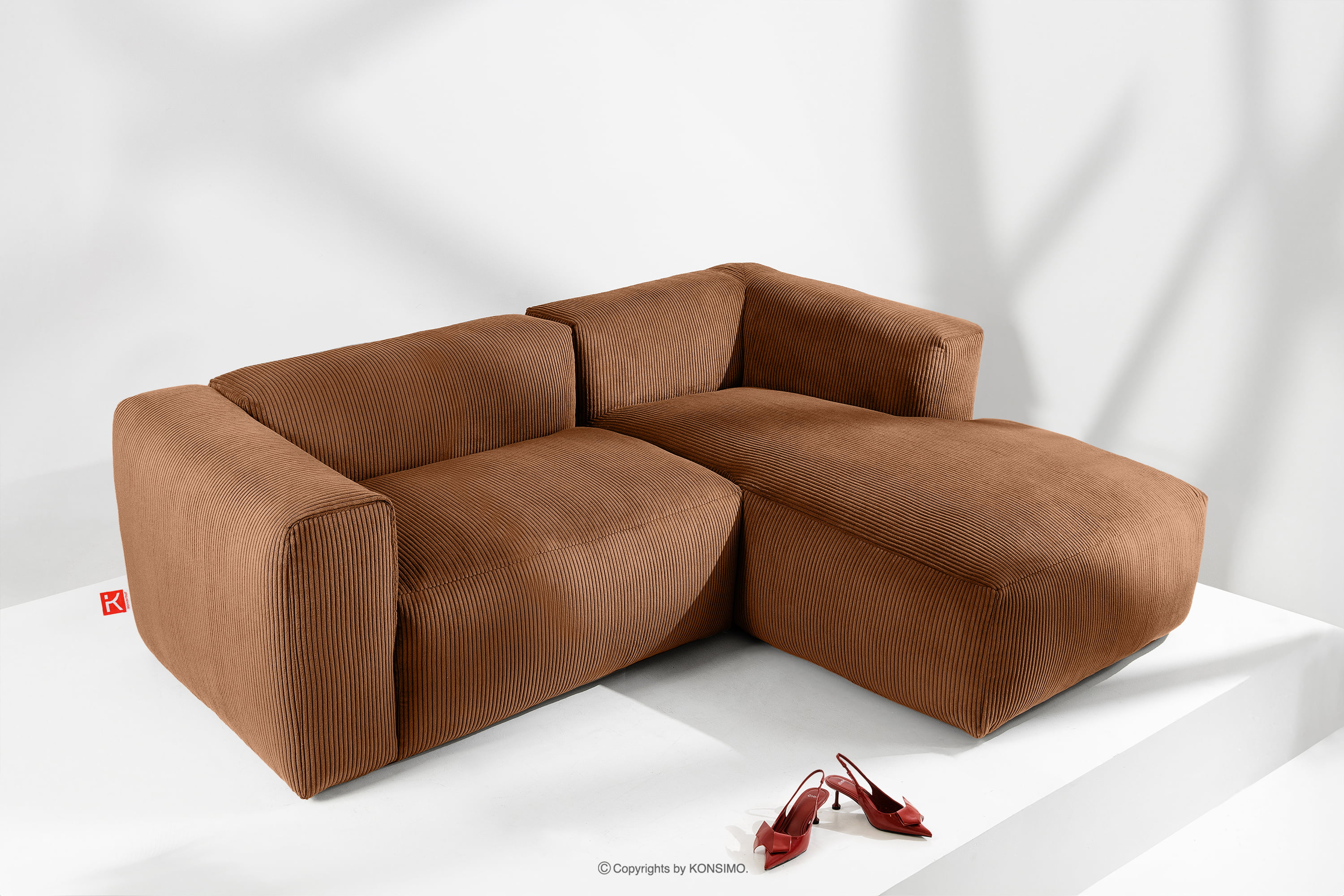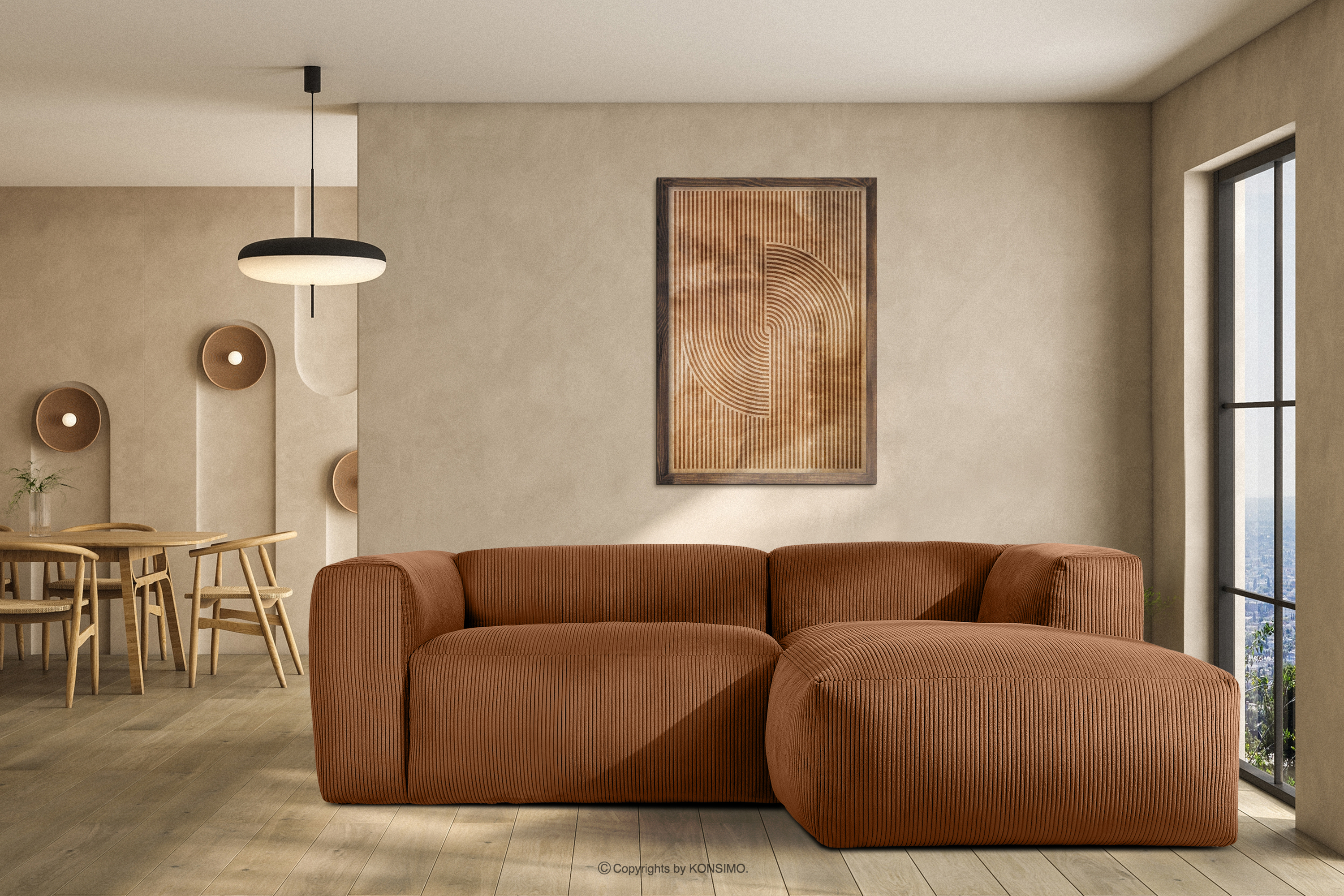 Modulárna rohová sedacia súprava do obývačky v manšestrovej látke vpravo sa určite stane ústredným bodom každej obývačky. Rám je vyrobený z odolného borovicového a bukového dreva, čo zaručuje nielen robustnosť, ale aj estetiku. Okrem toho použitie odolných drevotrieskových a drevovláknitých dosiek zvyšuje úroveň stability a odolnosti nábytku. Vďaka tomu si zachováva svoju formu aj pri intenzívnom používaní, takže je mimoriadne odolný voči všetkým nástrahám každodenného života.